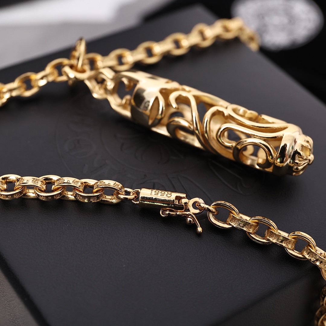 这款首饰是AAAAA 1:1 质量 (非常棒). 使用了和原版一模一样的材料. 商标部分也保持了和克罗心/Chrome Hearts一样. 图片拍摄是实物首饰拍摄, 您所收到的实物保证和我们图片一模一样.