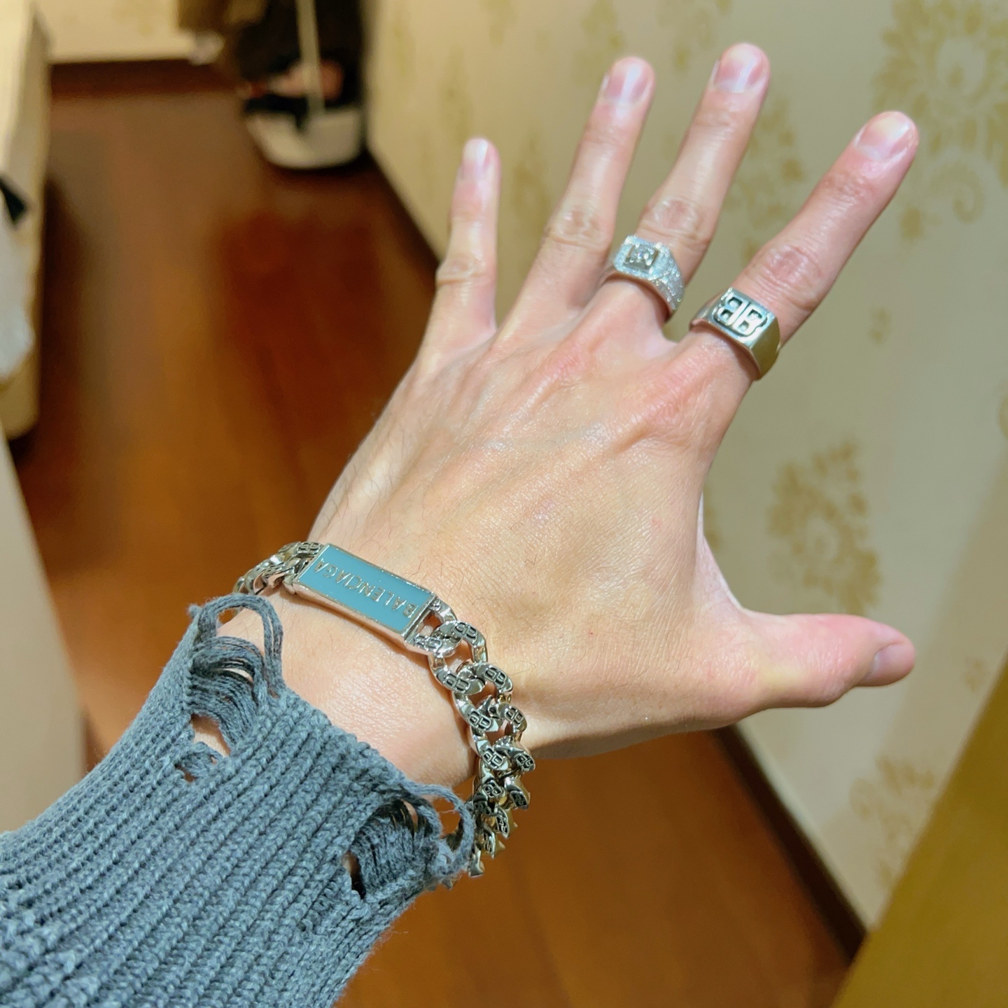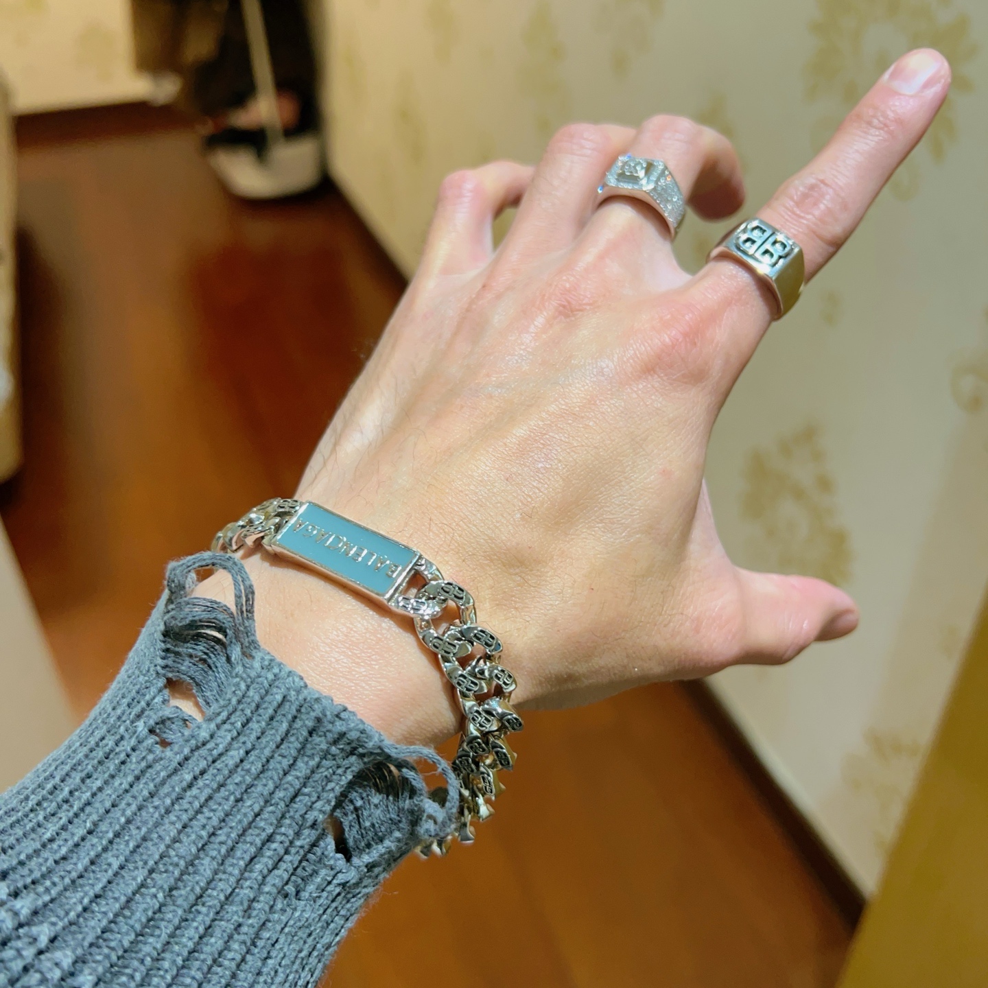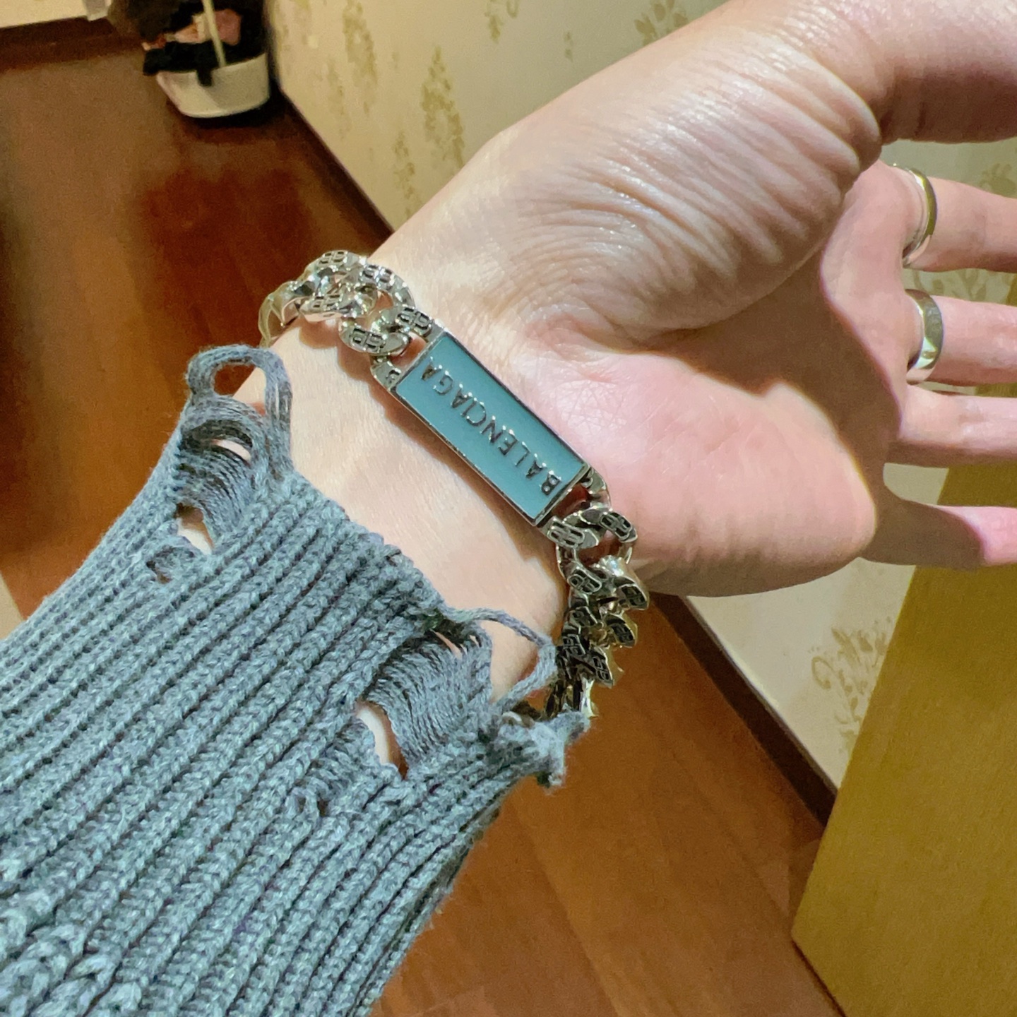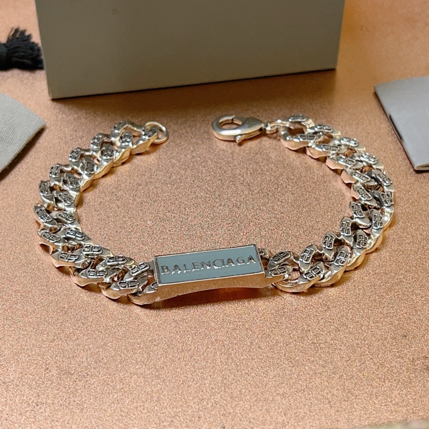 这款首饰是AAAAA 1:1 质量 (非常棒). 使用了和原版一模一样的材料. 商标部分也保持了和巴黎世家/Balenciaga一样. 图片拍摄是实物首饰拍摄, 您所收到的实物保证和我们图片一模一样.