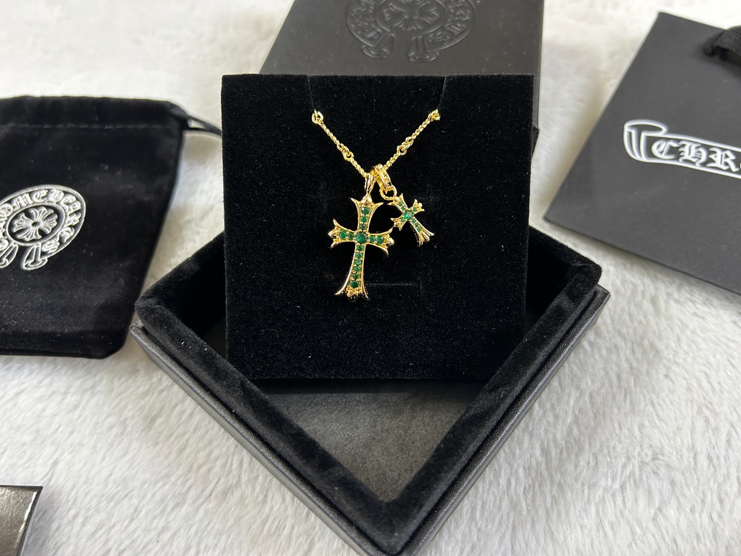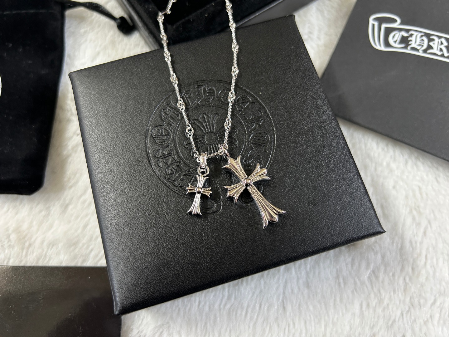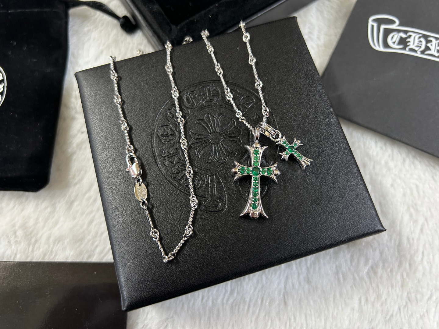 这款首饰是AAAAA 1:1 质量 (非常棒). 使用了和原版一模一样的材料. 商标部分也保持了和克罗心/Chrome Hearts一样. 图片拍摄是实物首饰拍摄, 您所收到的实物保证和我们图片一模一样.