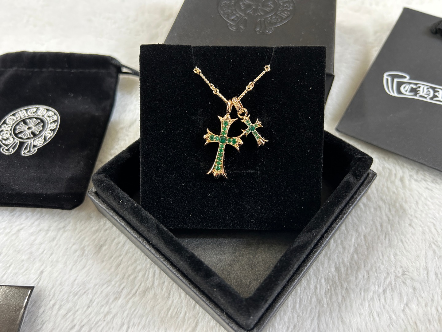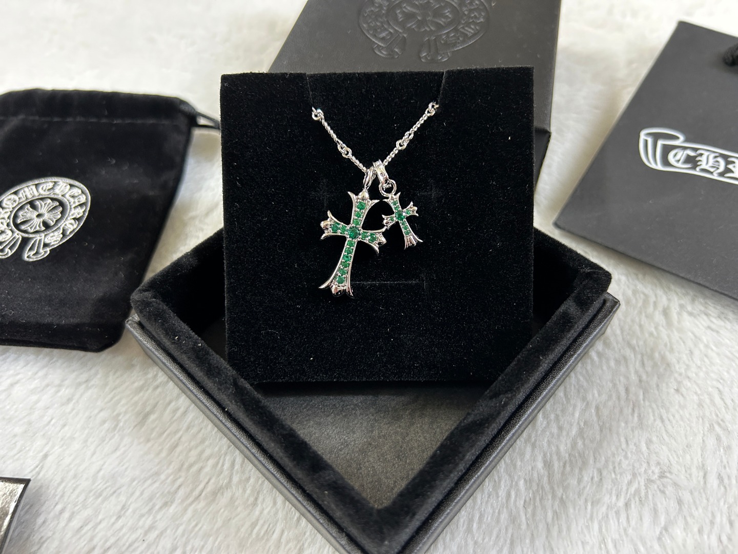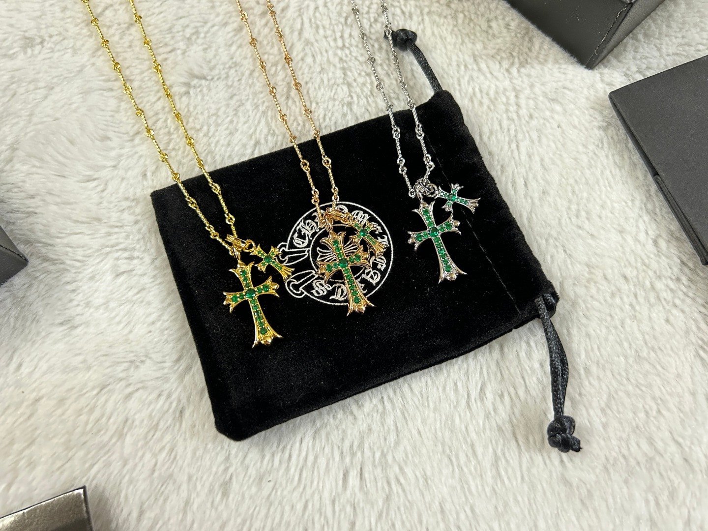 这款首饰是AAAAA 1:1 质量 (非常棒). 使用了和原版一模一样的材料. 商标部分也保持了和克罗心/Chrome Hearts一样. 图片拍摄是实物首饰拍摄, 您所收到的实物保证和我们图片一模一样.