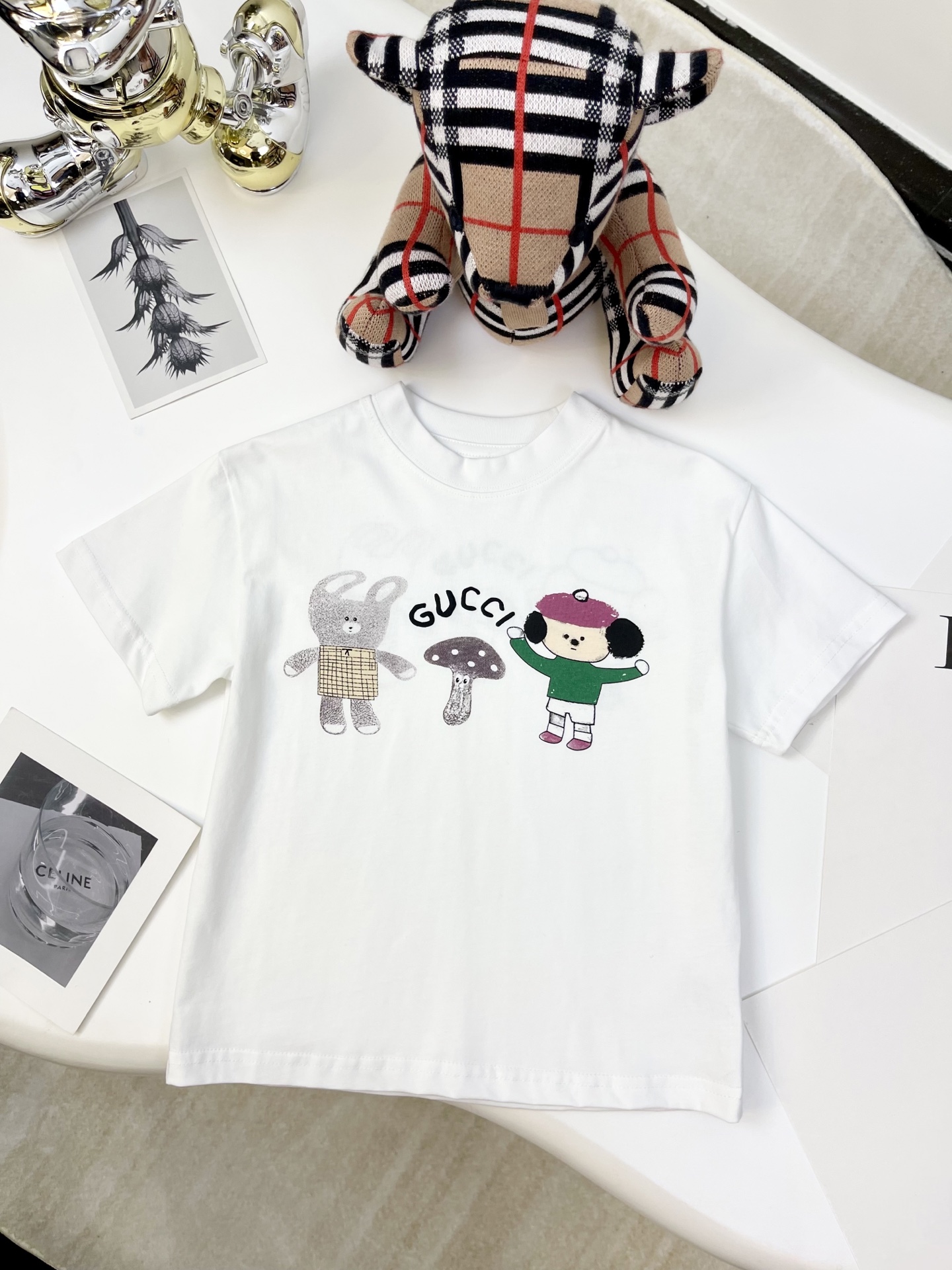 这款children's clothes是AAAAA 1:1 质量 (非常棒). 使用了和原版一模一样的材料. 商标部分也保持了和古奇/Gucci一样. 图片拍摄是实物children's clothes拍摄, 您所收到的实物保证和我们图片一模一样.
