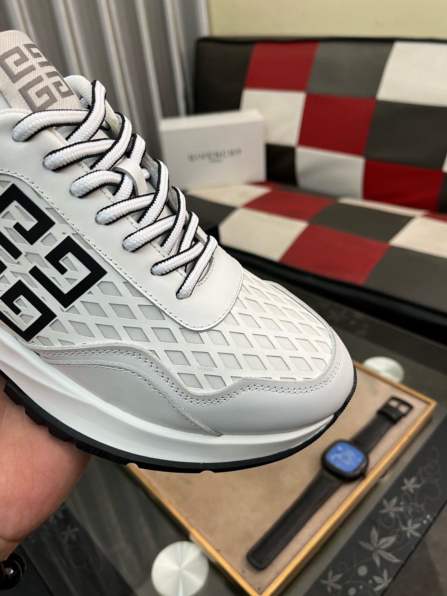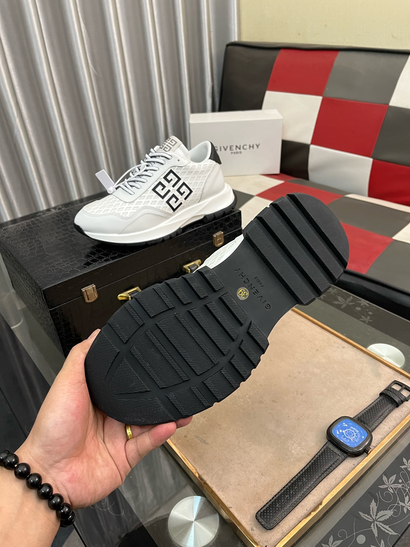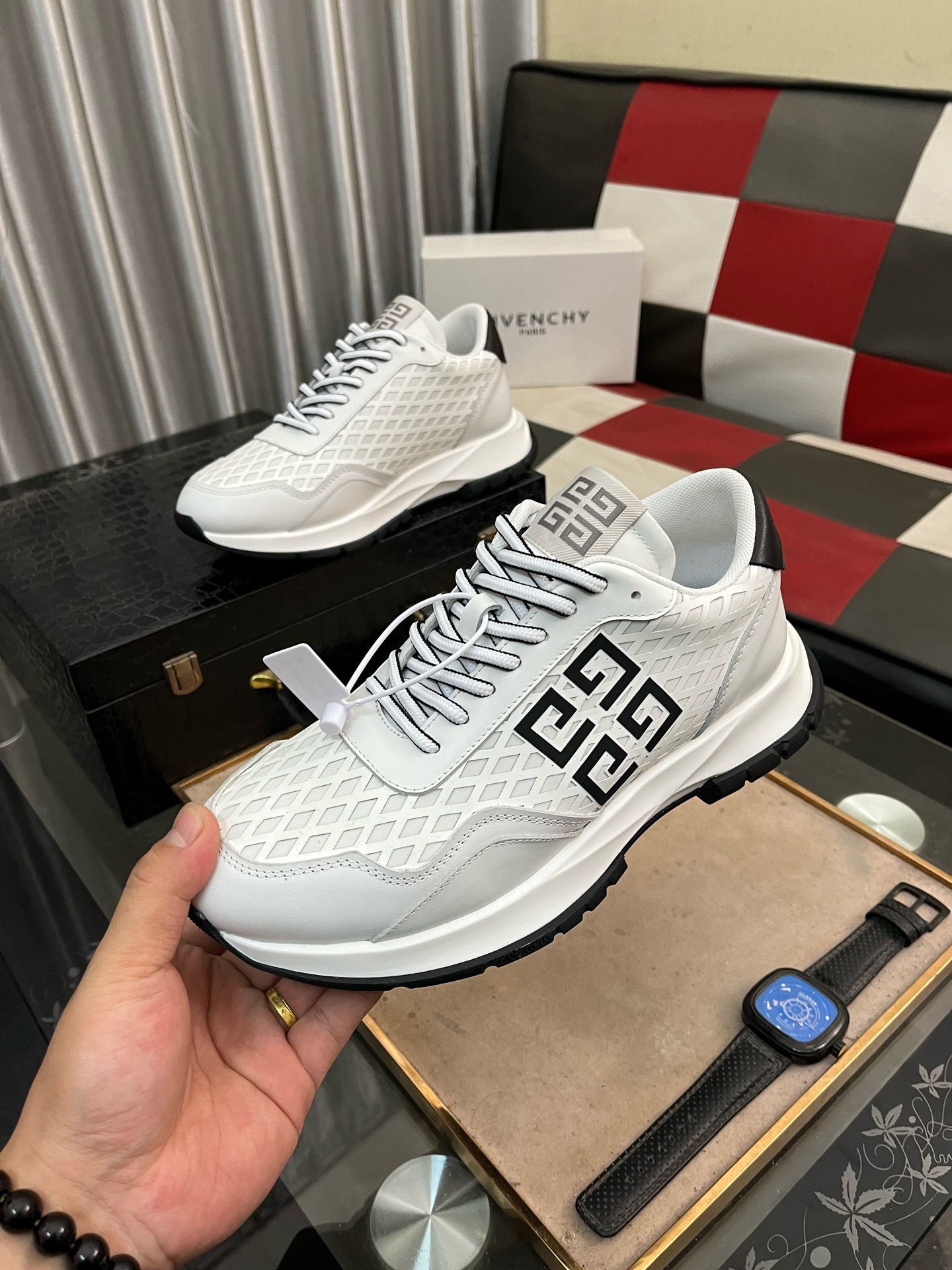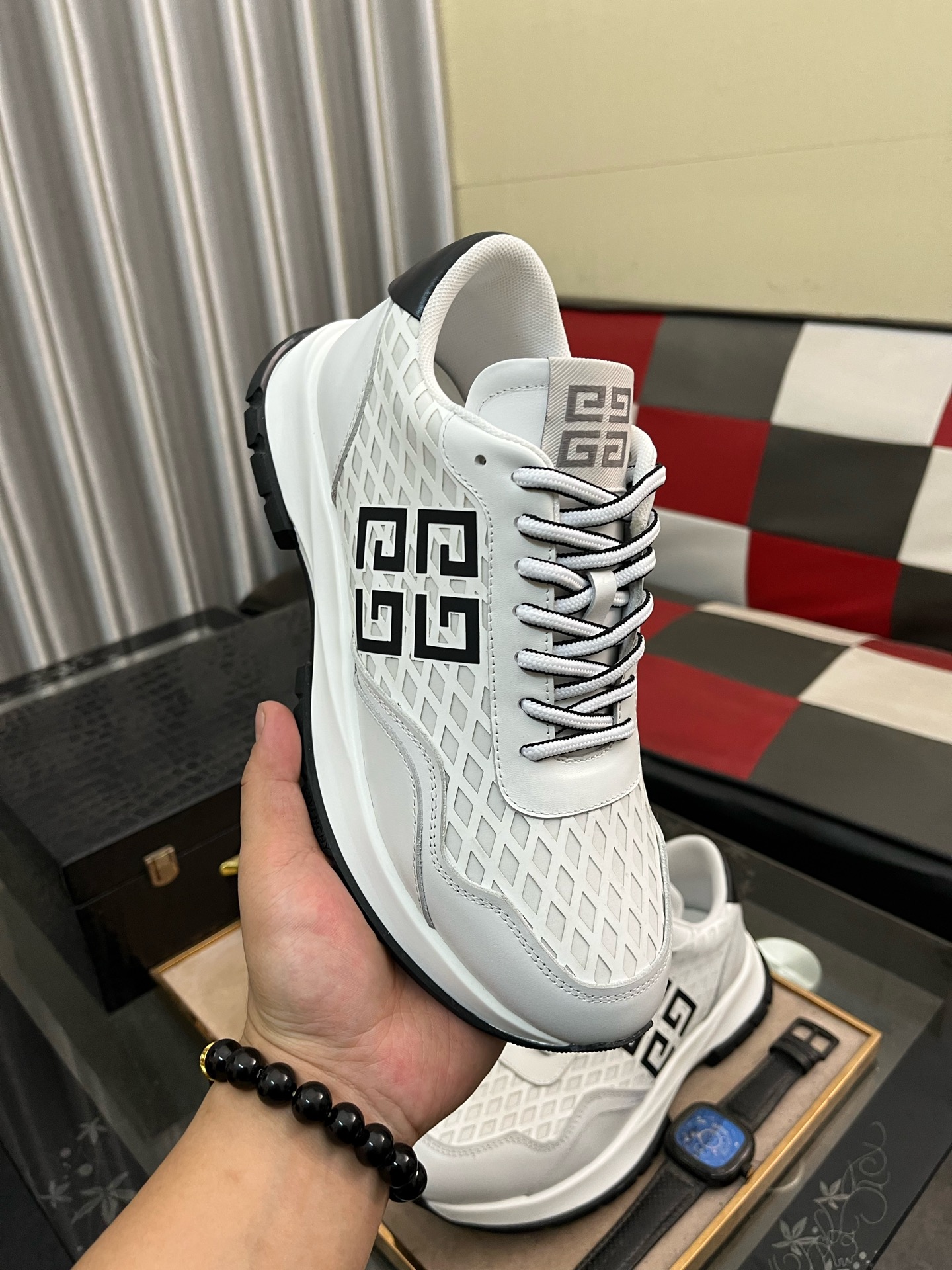 这款鞋子是AAAAA 1:1 质量 (非常棒). 使用了和原版一模一样的材料. 商标部分也保持了和纪梵希/Givenchy一样. 图片拍摄是实物鞋子拍摄, 您所收到的实物保证和我们图片一模一样.