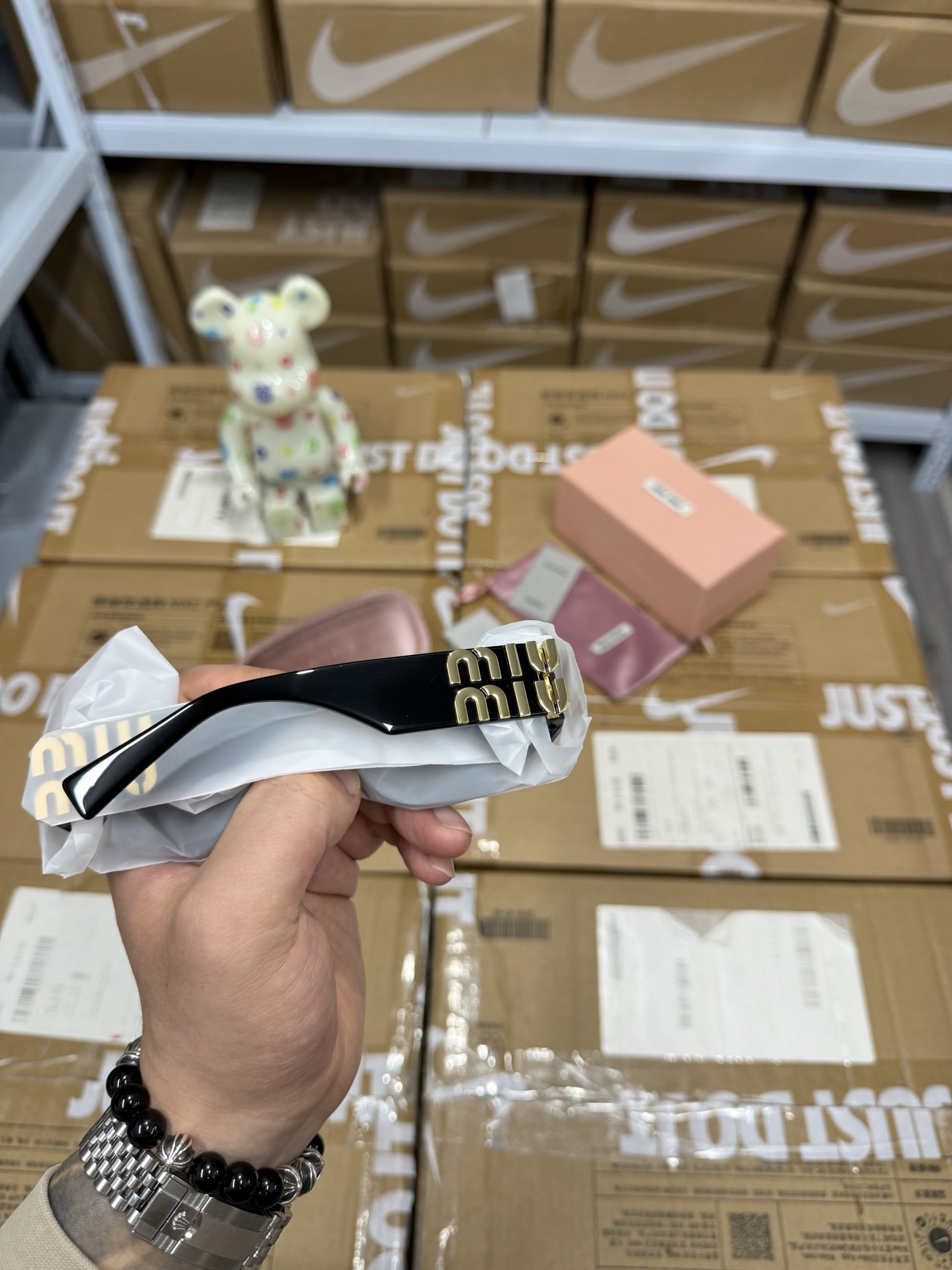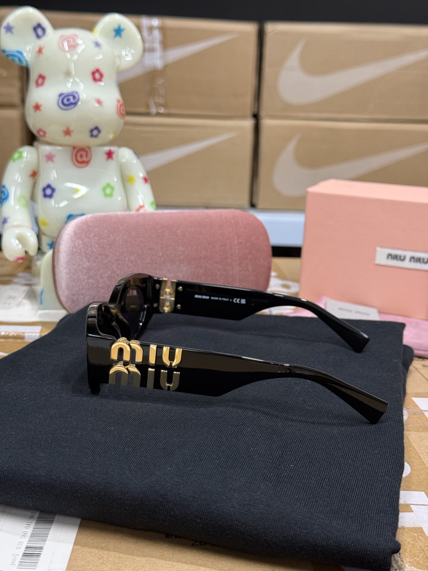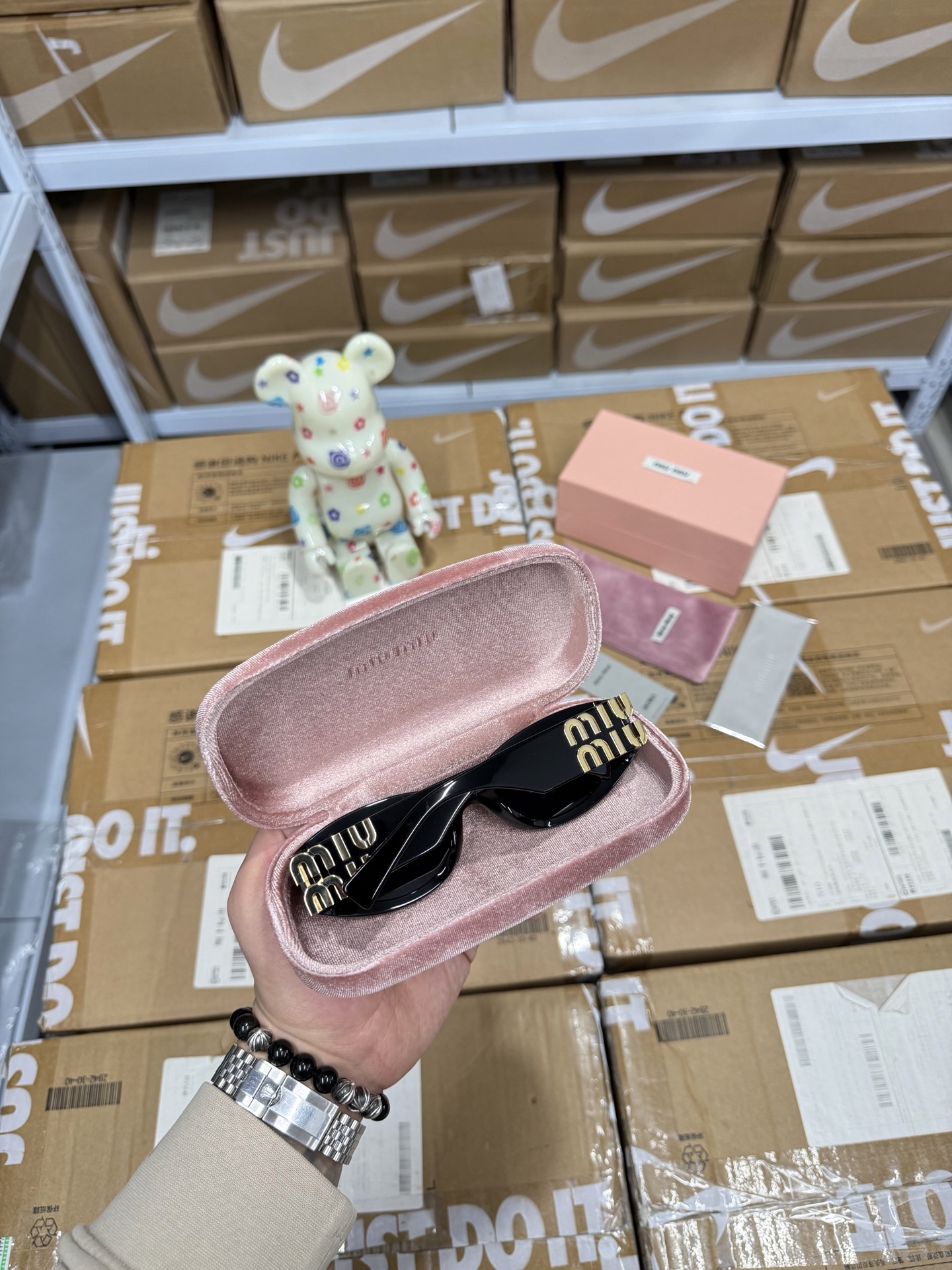 这款太阳眼镜是AAAAA 1:1 质量 (非常棒). 使用了和原版一模一样的材料. 商标部分也保持了和缪缪/Miu Miu一样. 图片拍摄是实物太阳眼镜拍摄, 您所收到的实物保证和我们图片一模一样.