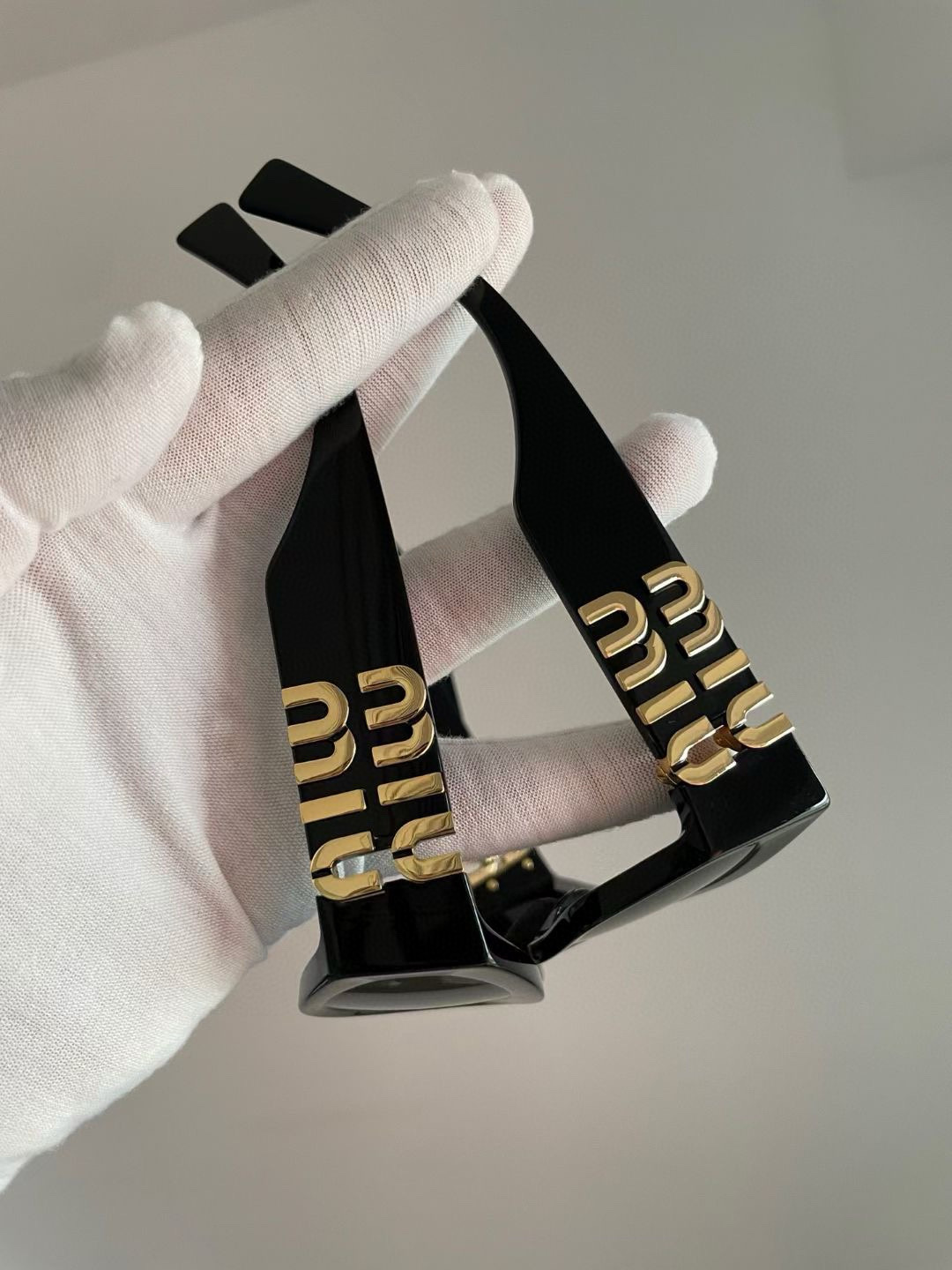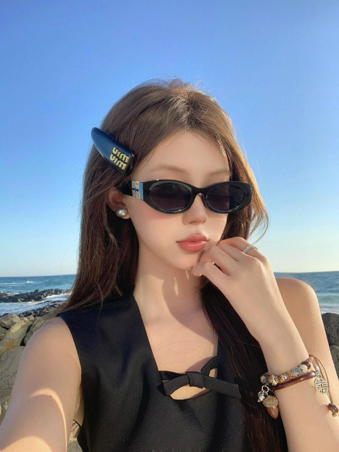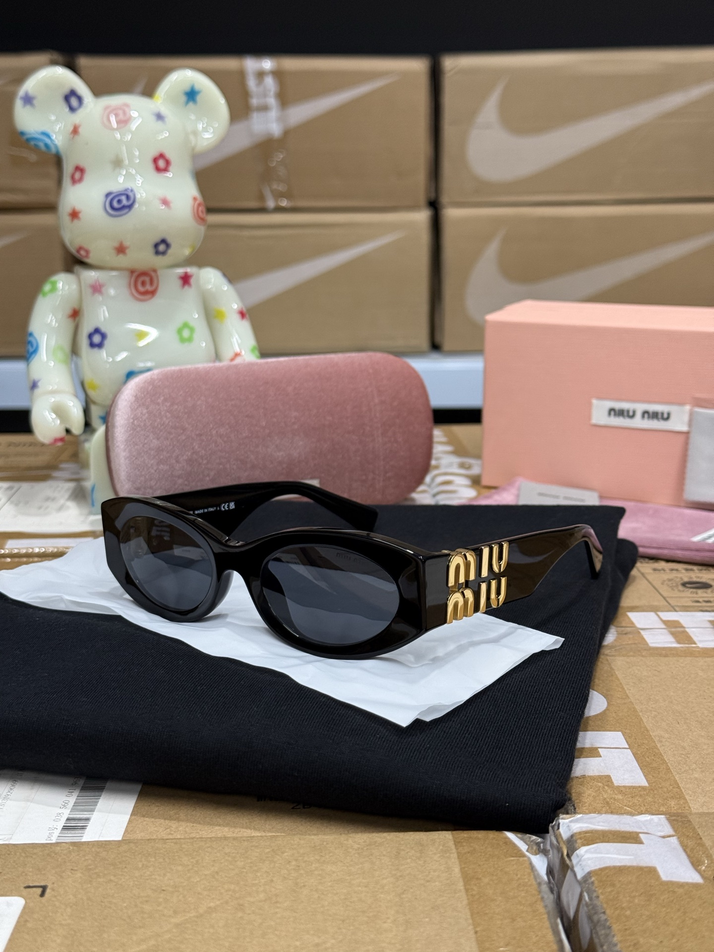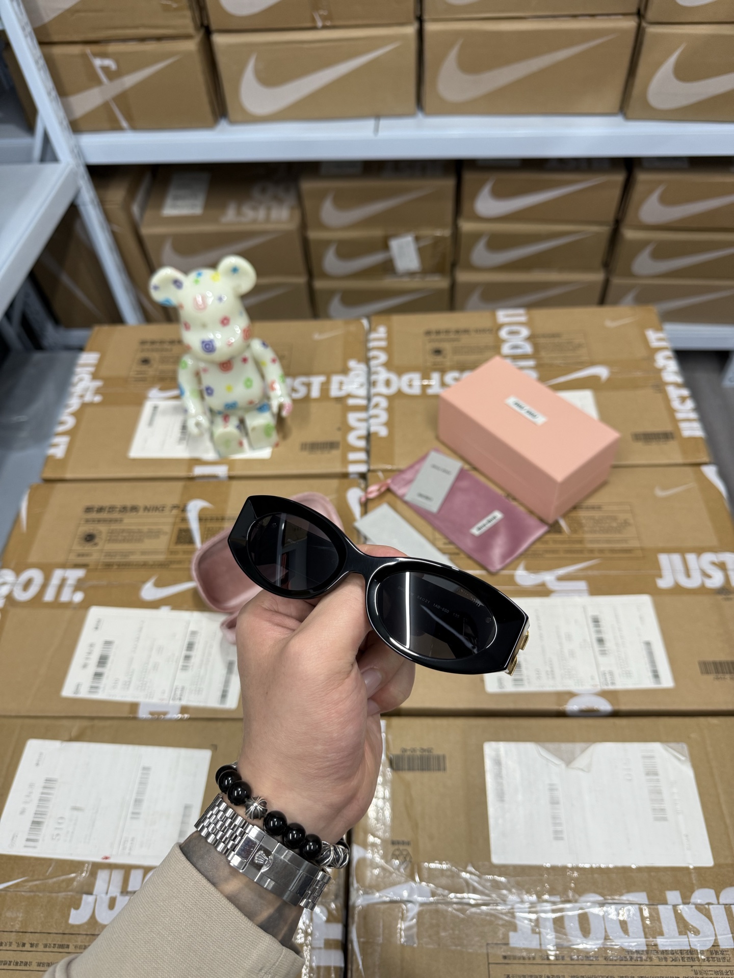 这款太阳眼镜是AAAAA 1:1 质量 (非常棒). 使用了和原版一模一样的材料. 商标部分也保持了和缪缪/Miu Miu一样. 图片拍摄是实物太阳眼镜拍摄, 您所收到的实物保证和我们图片一模一样.