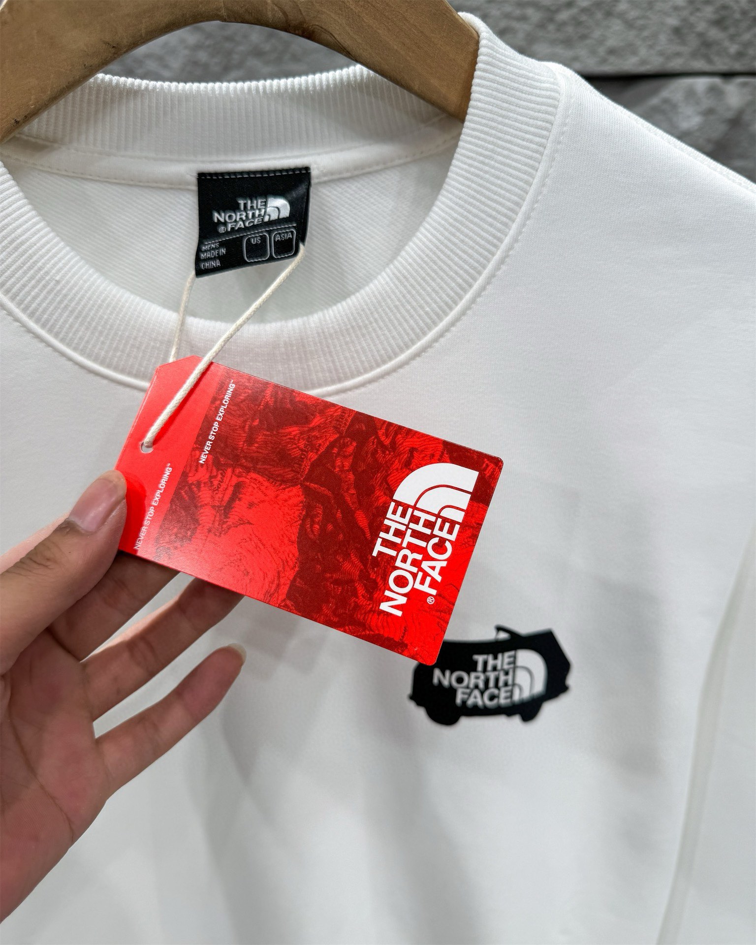 这款衣服是AAAAA 1:1 质量 (非常棒). 使用了和原版一模一样的材料. 商标部分也保持了和The North Face一样. 图片拍摄是实物衣服拍摄, 您所收到的实物保证和我们图片一模一样.