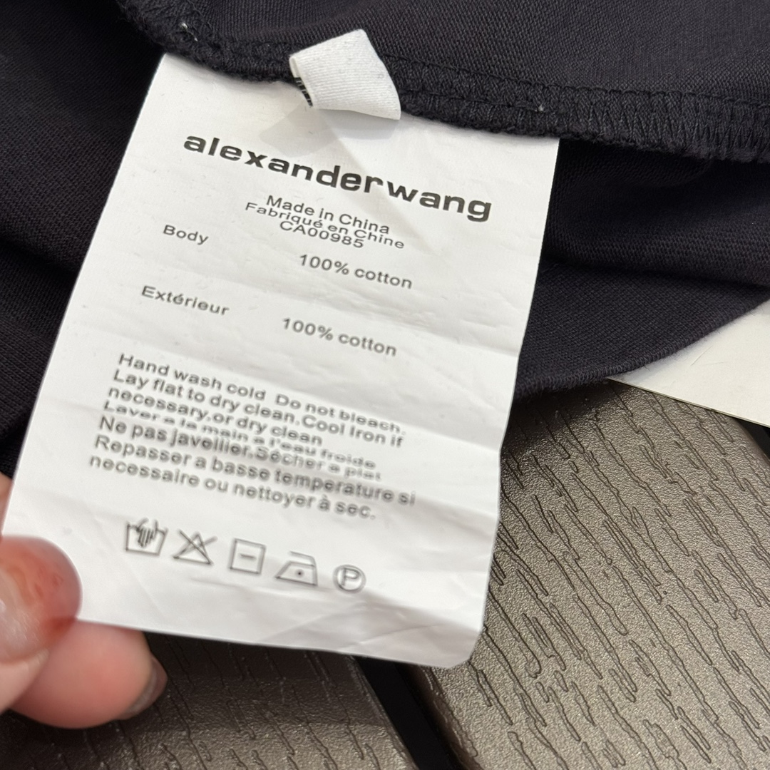 这款衣服是AAAAA 1:1 质量 (非常棒). 使用了和原版一模一样的材料. 商标部分也保持了和亚历山大王/Alexander Wang一样. 图片拍摄是实物衣服拍摄, 您所收到的实物保证和我们图片一模一样.