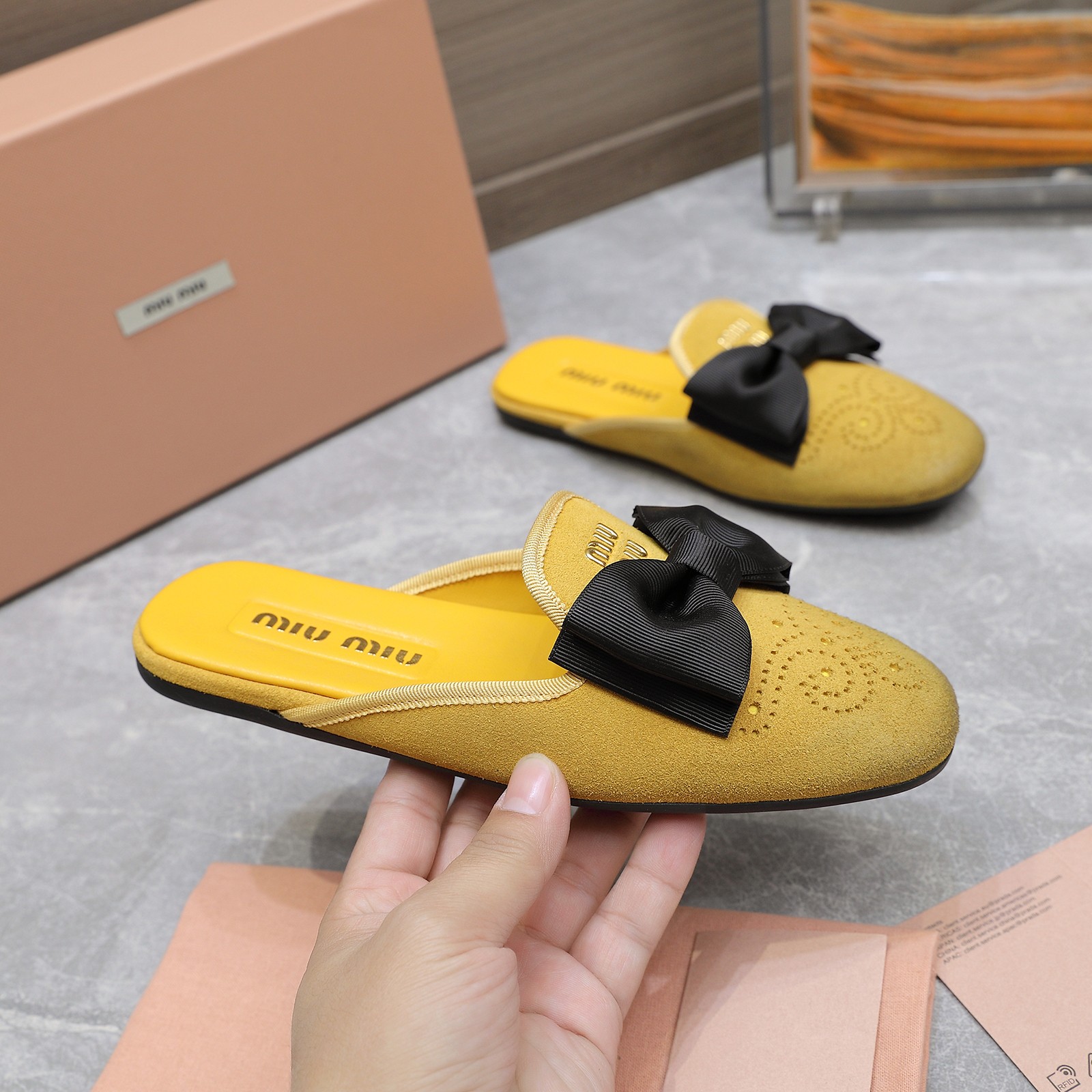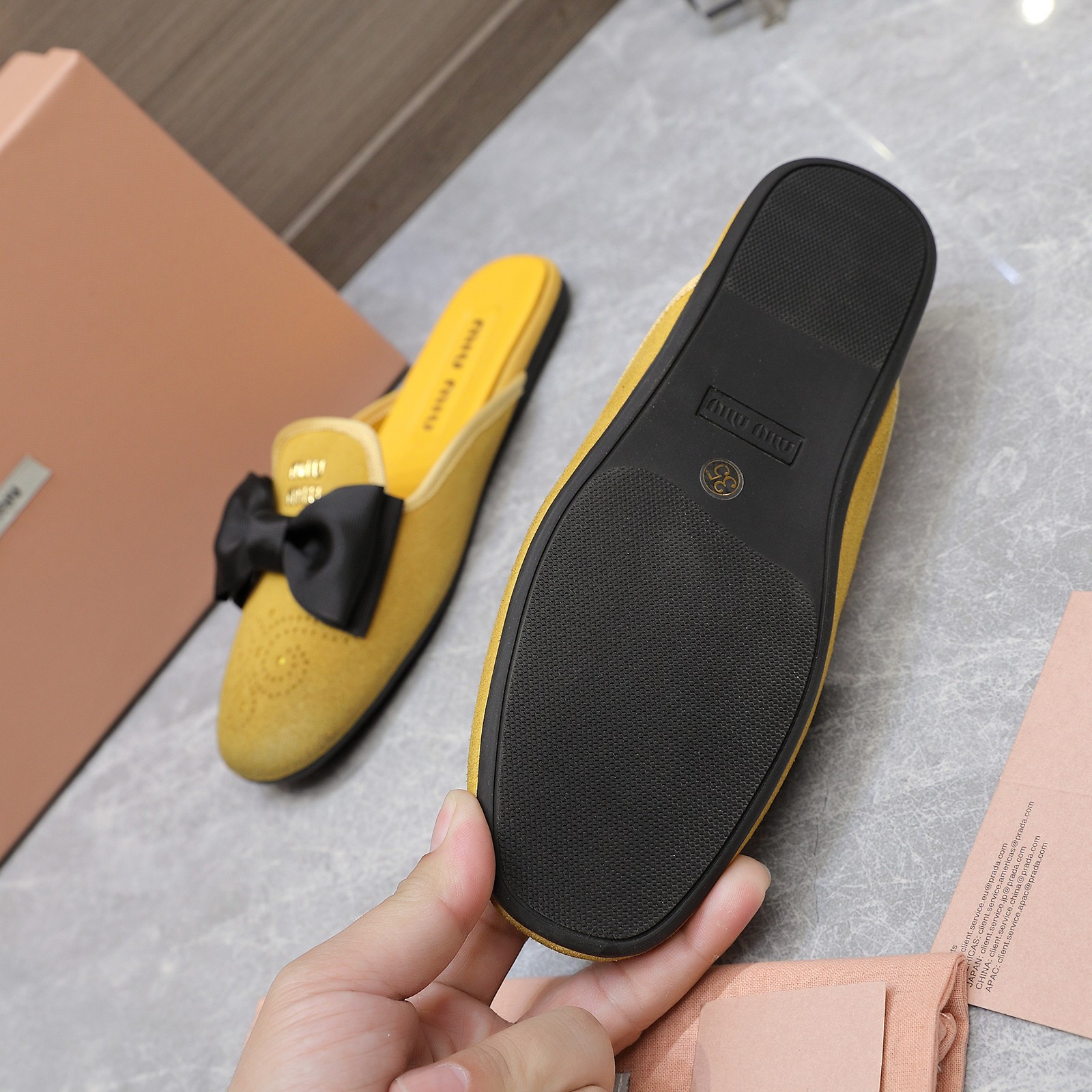 这款鞋子是AAAAA 1:1 质量 (非常棒). 使用了和原版一模一样的材料. 商标部分也保持了和缪缪/Miu Miu一样. 图片拍摄是实物鞋子拍摄, 您所收到的实物保证和我们图片一模一样.