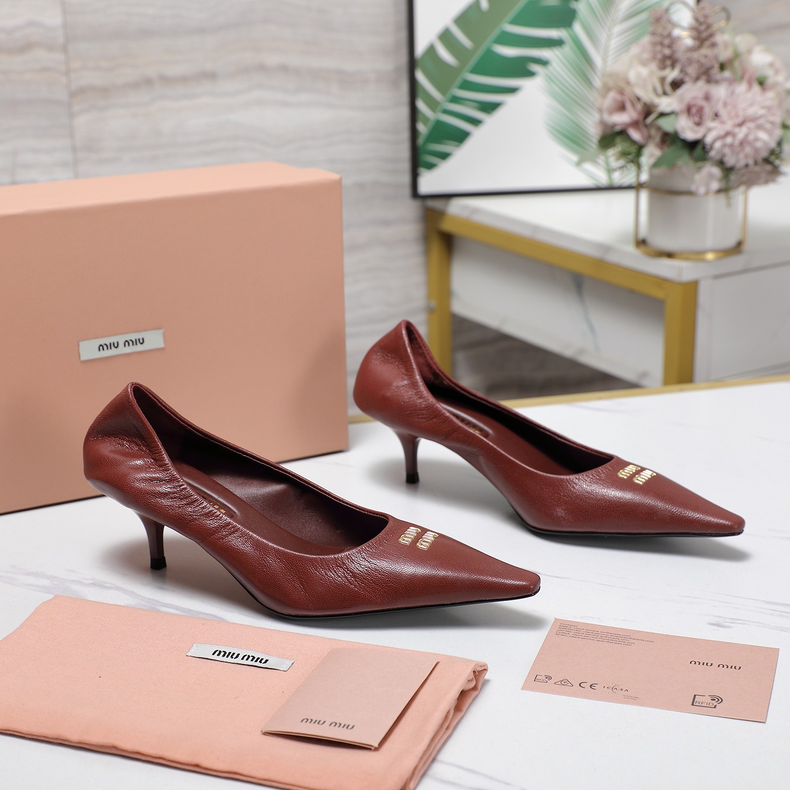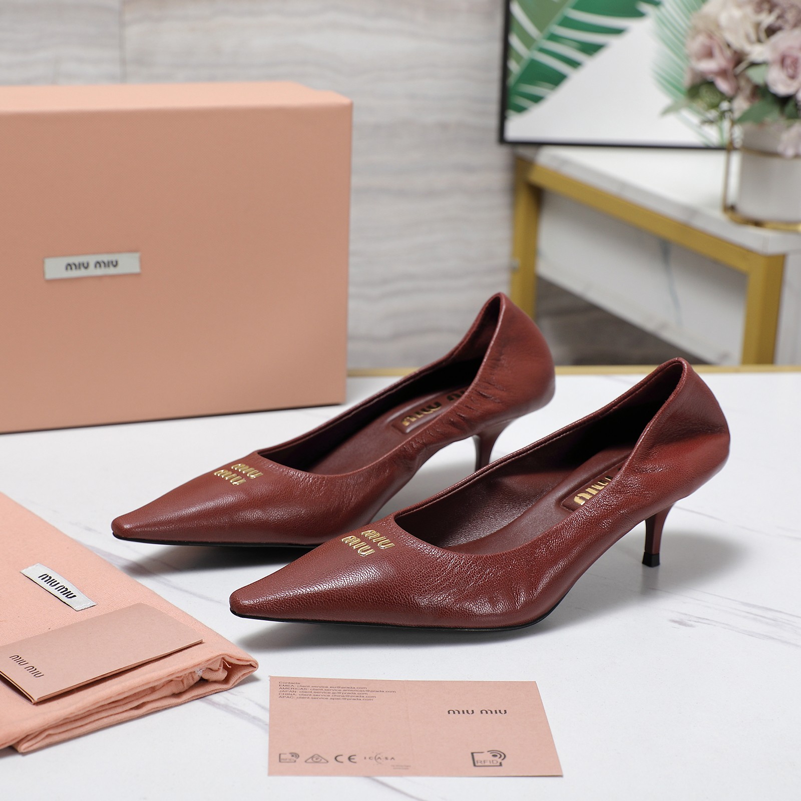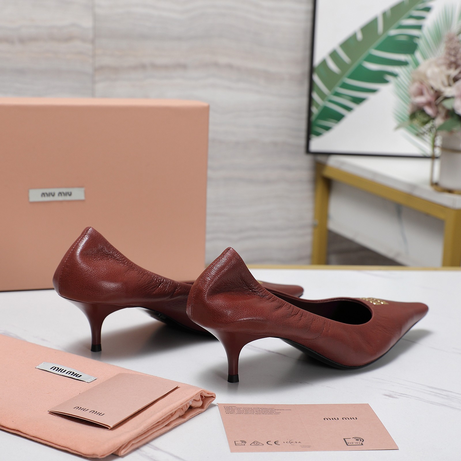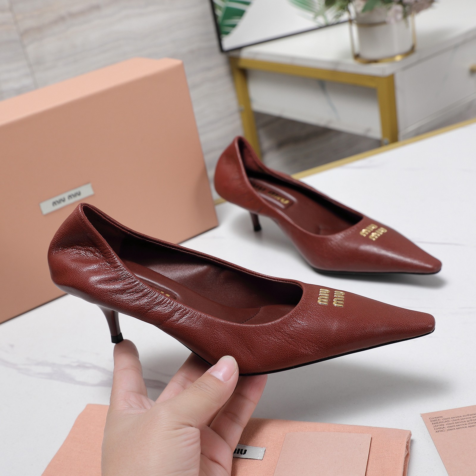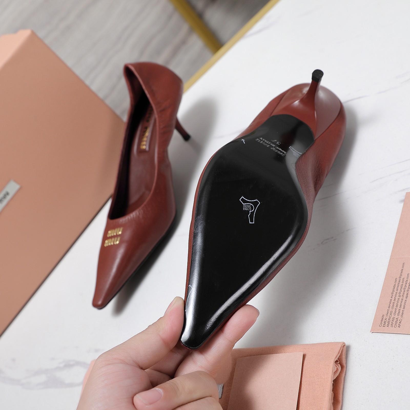 这款鞋子是AAAAA 1:1 质量 (非常棒). 使用了和原版一模一样的材料. 商标部分也保持了和缪缪/Miu Miu一样. 图片拍摄是实物鞋子拍摄, 您所收到的实物保证和我们图片一模一样.