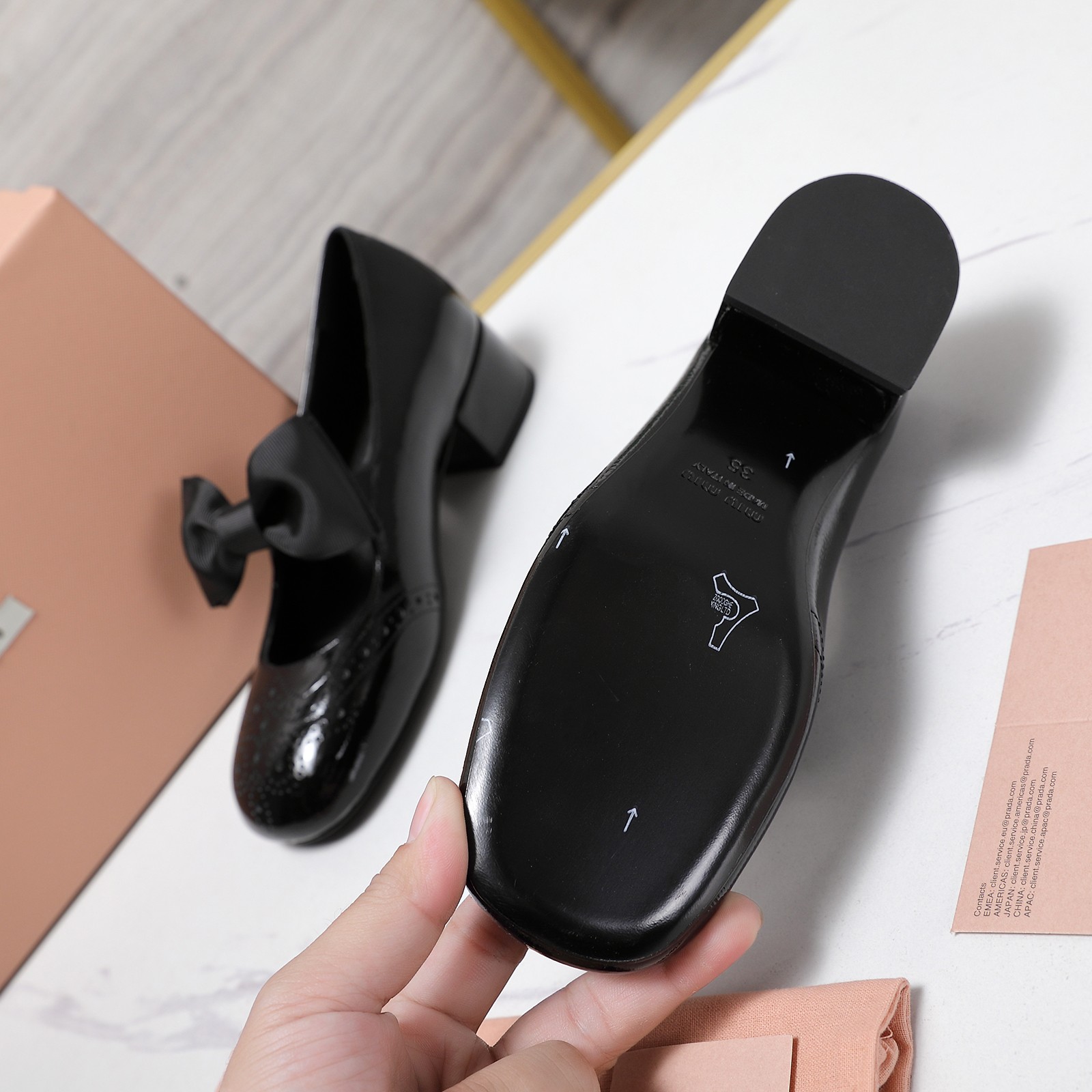 这款鞋子是AAAAA 1:1 质量 (非常棒). 使用了和原版一模一样的材料. 商标部分也保持了和缪缪/Miu Miu一样. 图片拍摄是实物鞋子拍摄, 您所收到的实物保证和我们图片一模一样.