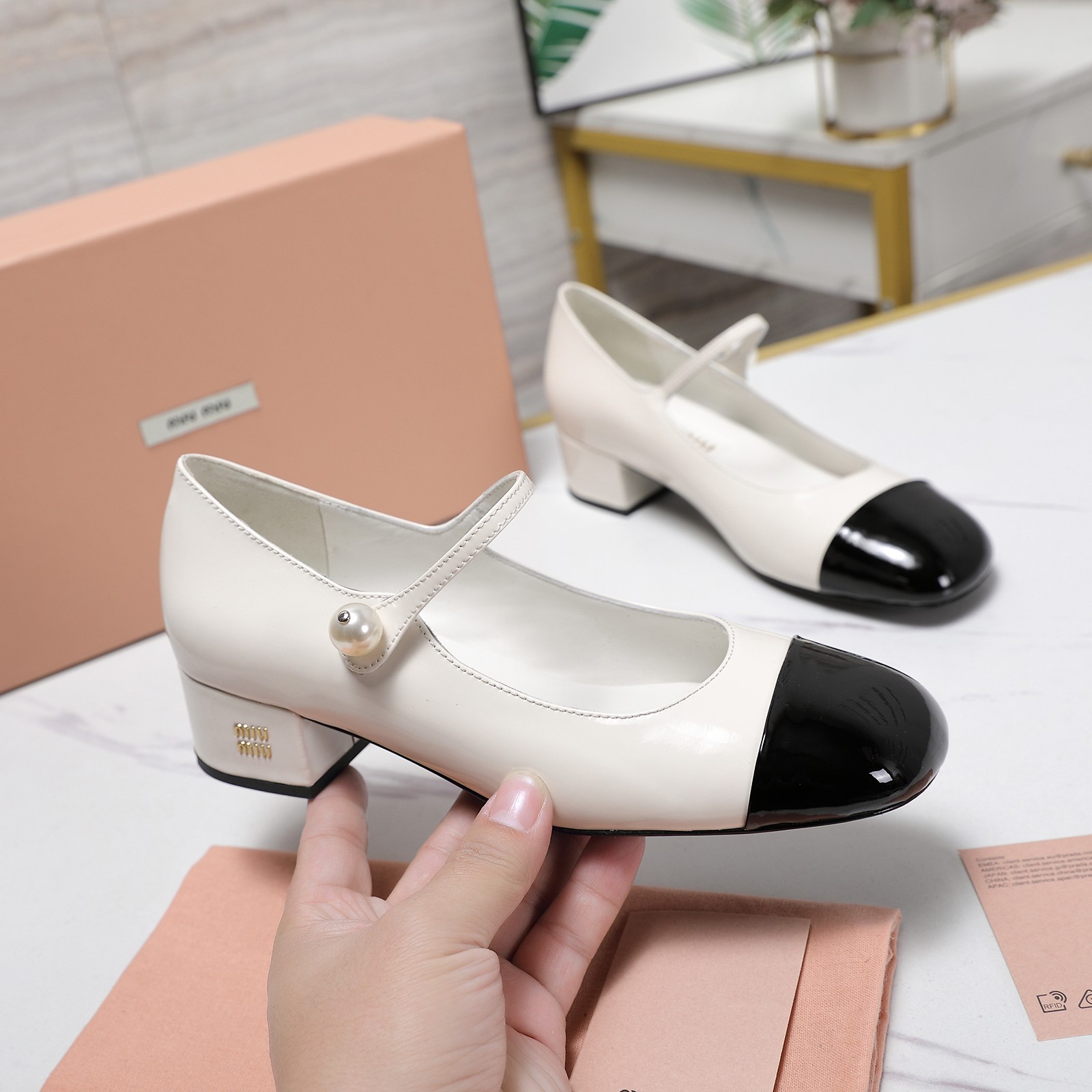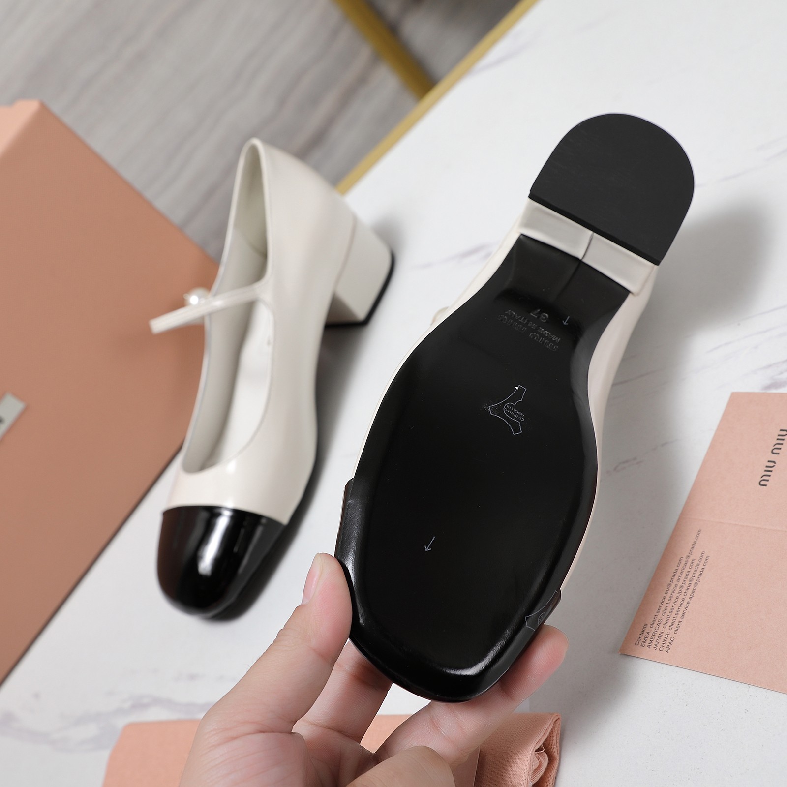 这款鞋子是AAAAA 1:1 质量 (非常棒). 使用了和原版一模一样的材料. 商标部分也保持了和缪缪/Miu Miu一样. 图片拍摄是实物鞋子拍摄, 您所收到的实物保证和我们图片一模一样.