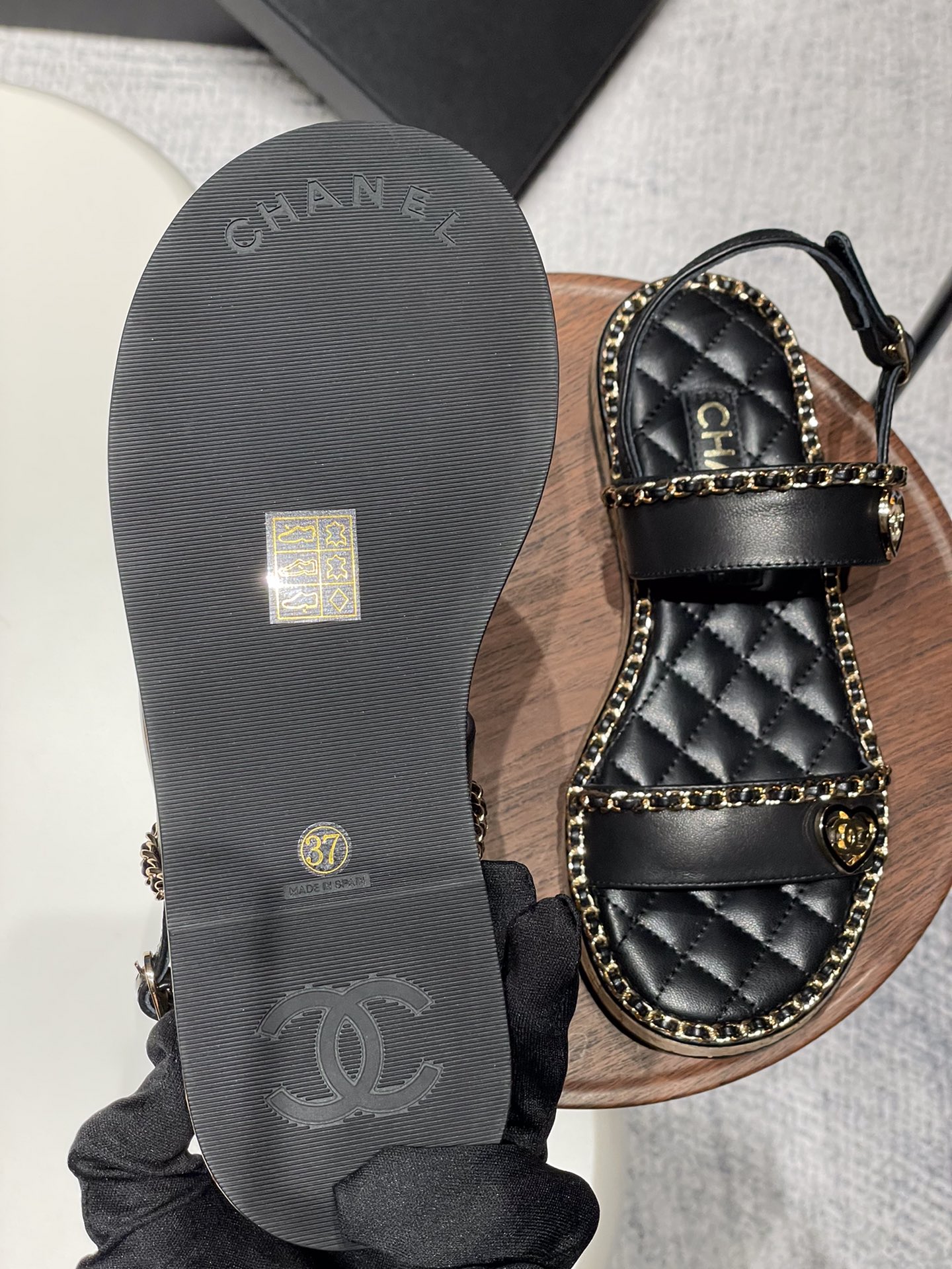 这款鞋子是AAAAA 1:1 质量 (非常棒). 使用了和原版一模一样的材料. 商标部分也保持了和香奈儿/Chanel一样. 图片拍摄是实物鞋子拍摄, 您所收到的实物保证和我们图片一模一样.