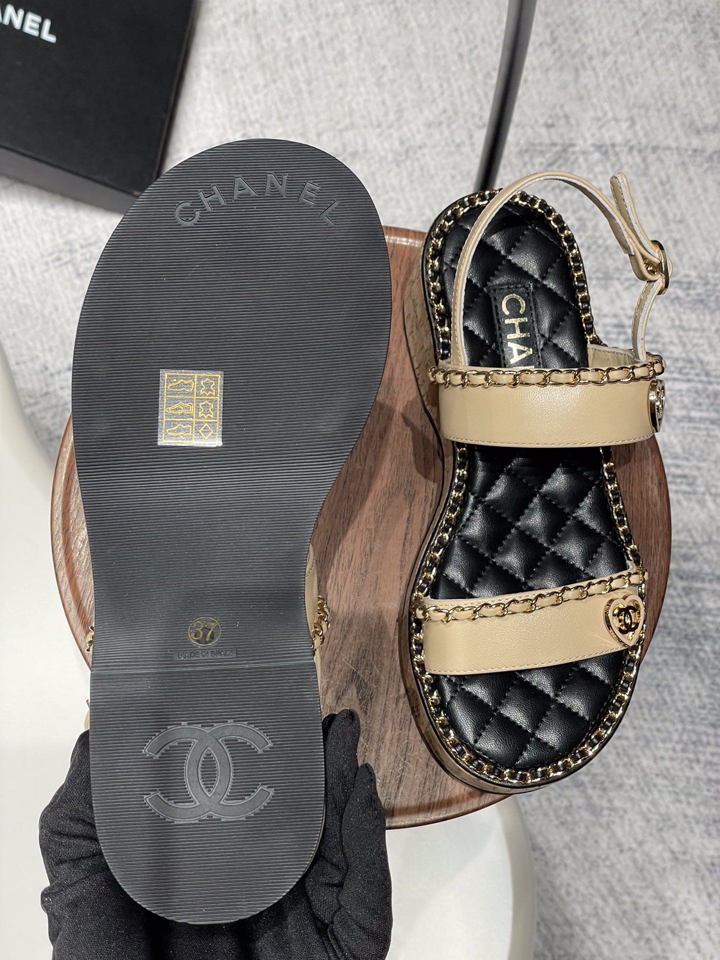 这款鞋子是AAAAA 1:1 质量 (非常棒). 使用了和原版一模一样的材料. 商标部分也保持了和香奈儿/Chanel一样. 图片拍摄是实物鞋子拍摄, 您所收到的实物保证和我们图片一模一样.