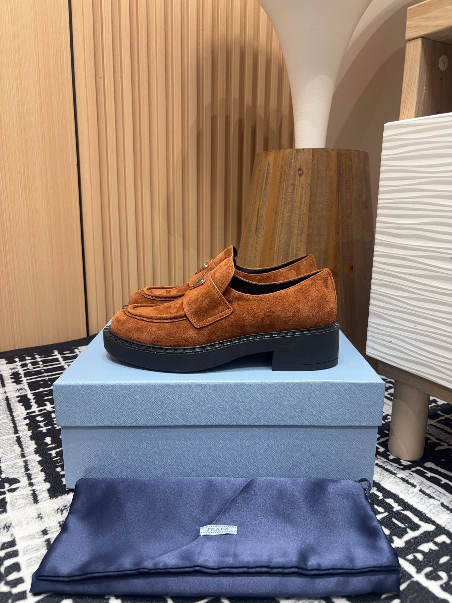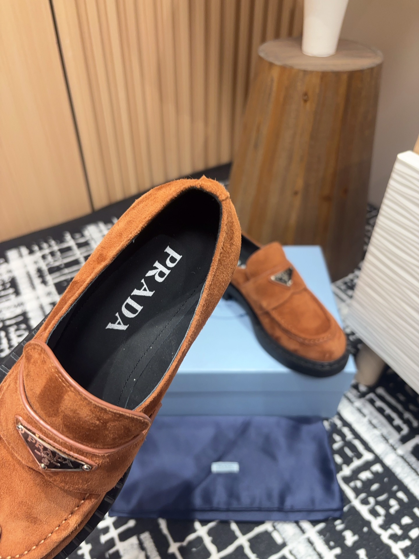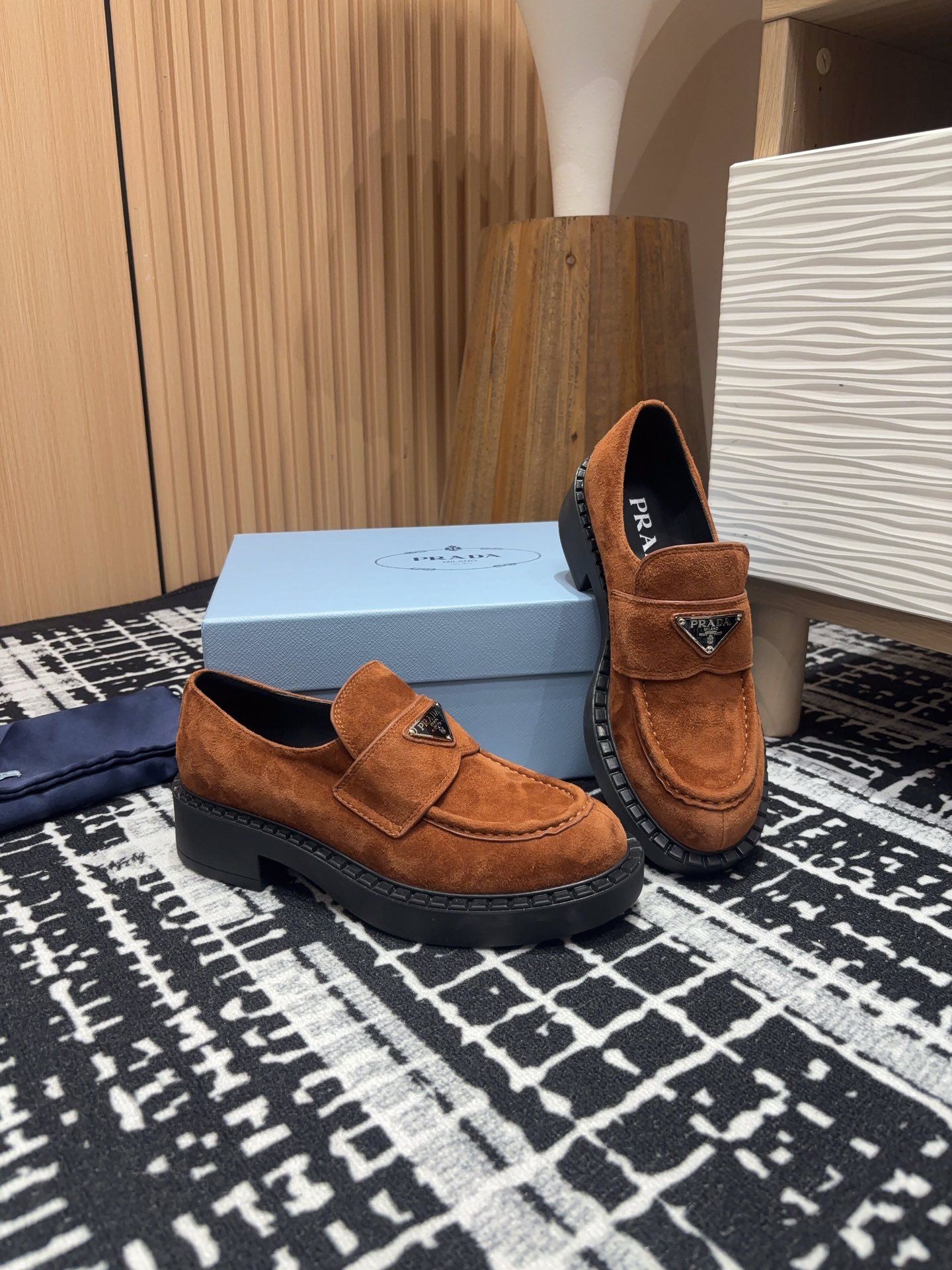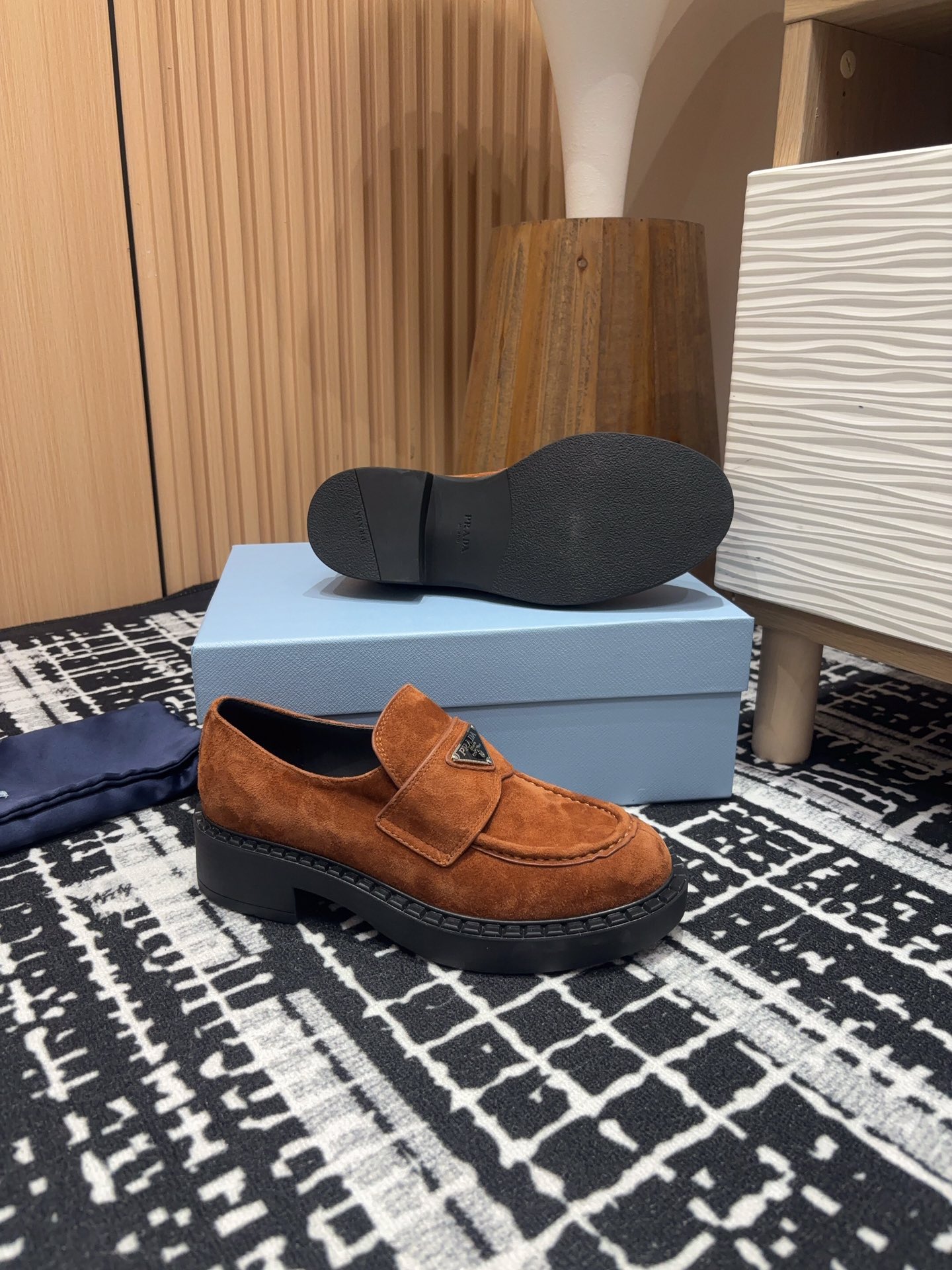 这款鞋子是AAAAA 1:1 质量 (非常棒). 使用了和原版一模一样的材料. 商标部分也保持了和普拉达/Prada一样. 图片拍摄是实物鞋子拍摄, 您所收到的实物保证和我们图片一模一样.