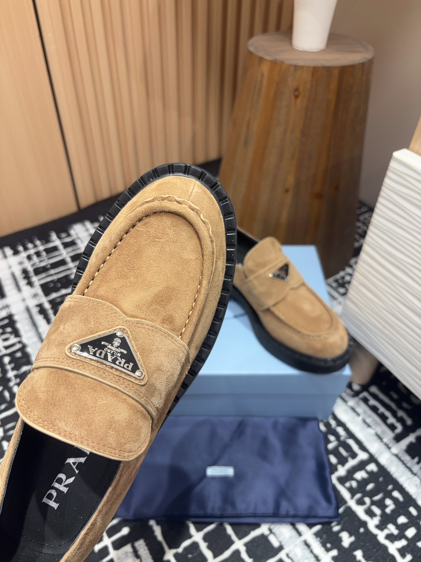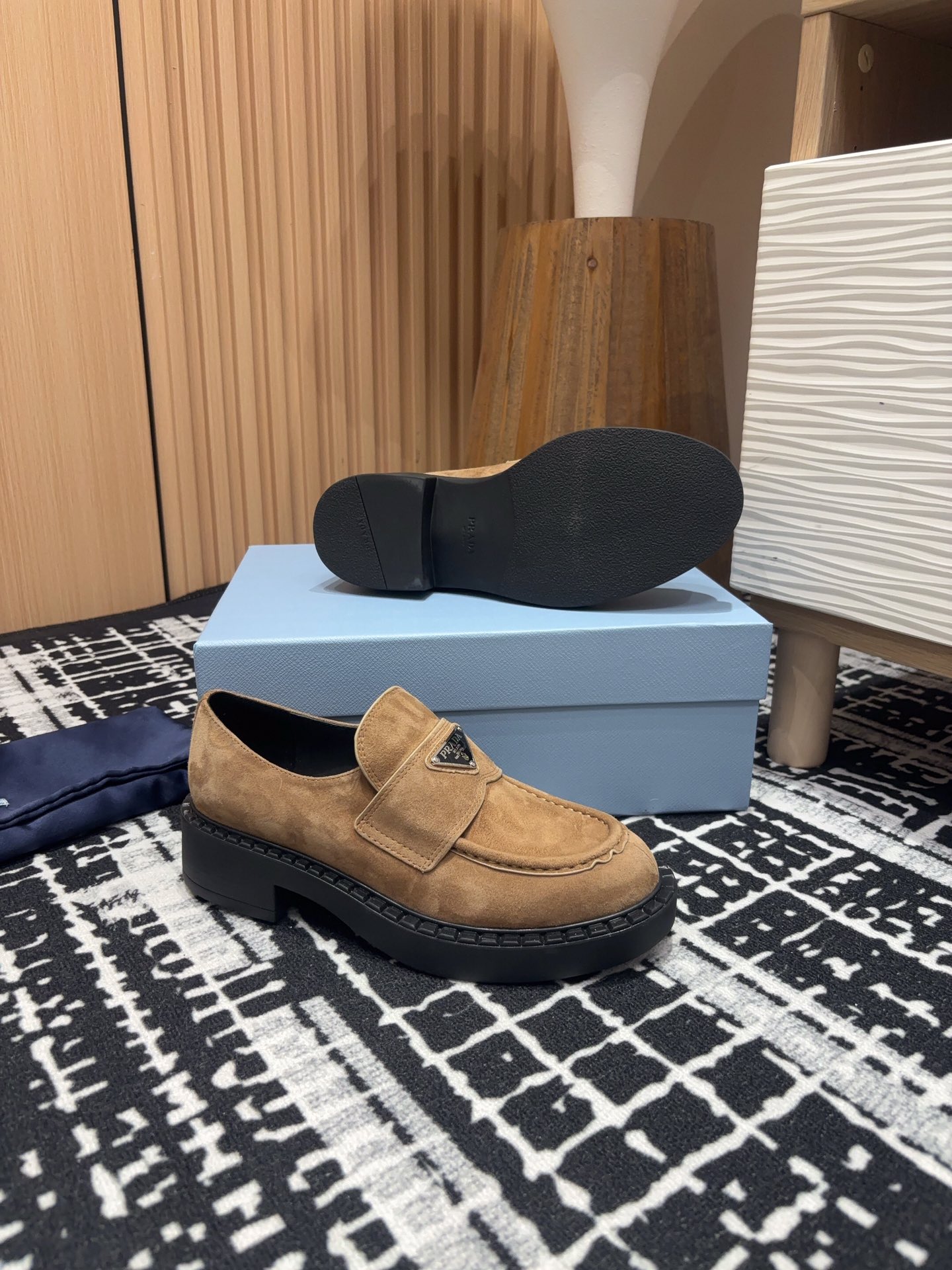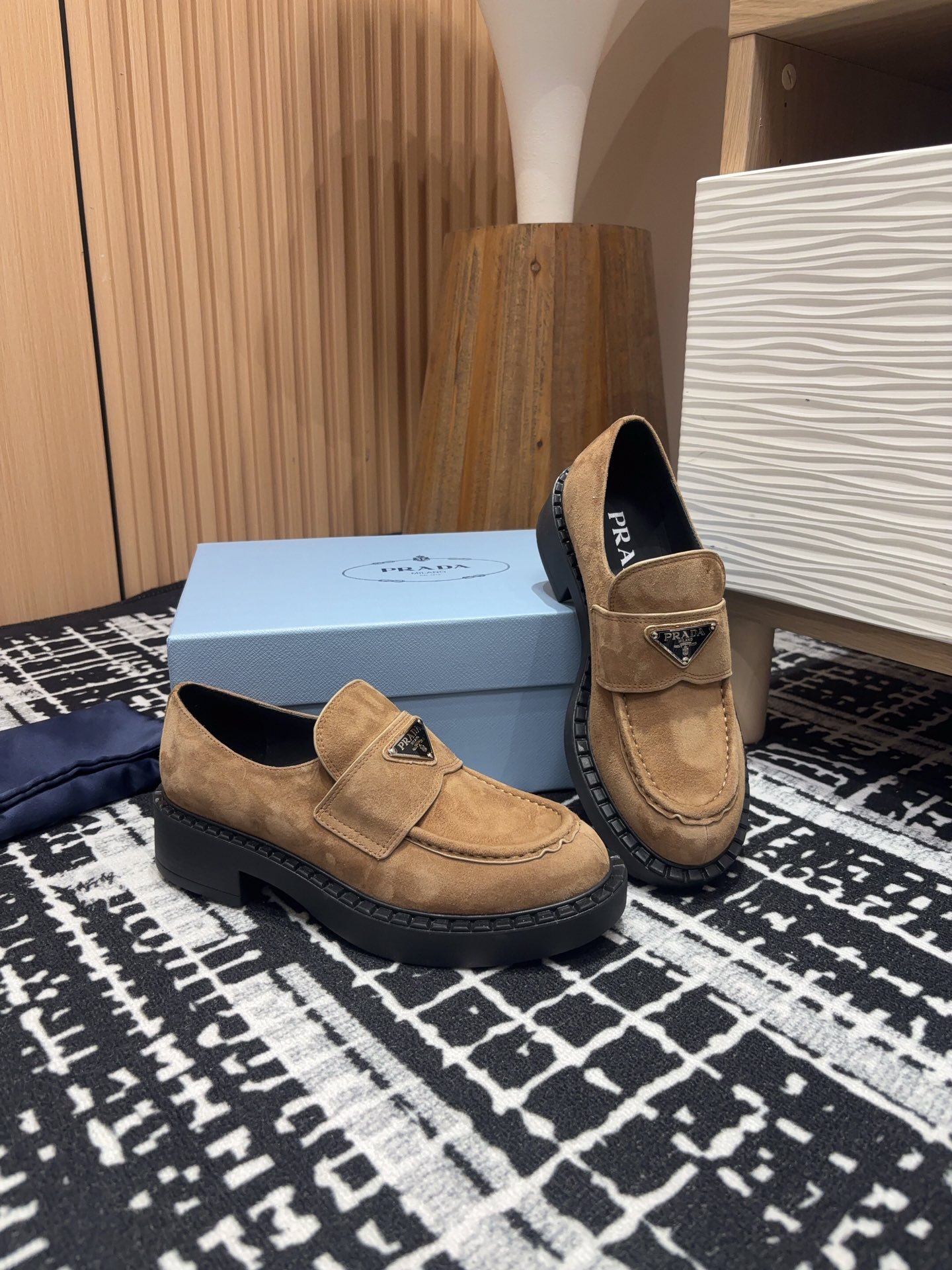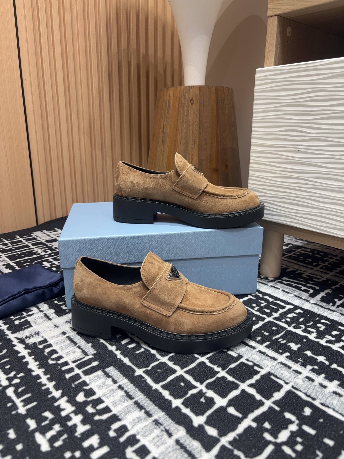 这款鞋子是AAAAA 1:1 质量 (非常棒). 使用了和原版一模一样的材料. 商标部分也保持了和普拉达/Prada一样. 图片拍摄是实物鞋子拍摄, 您所收到的实物保证和我们图片一模一样.