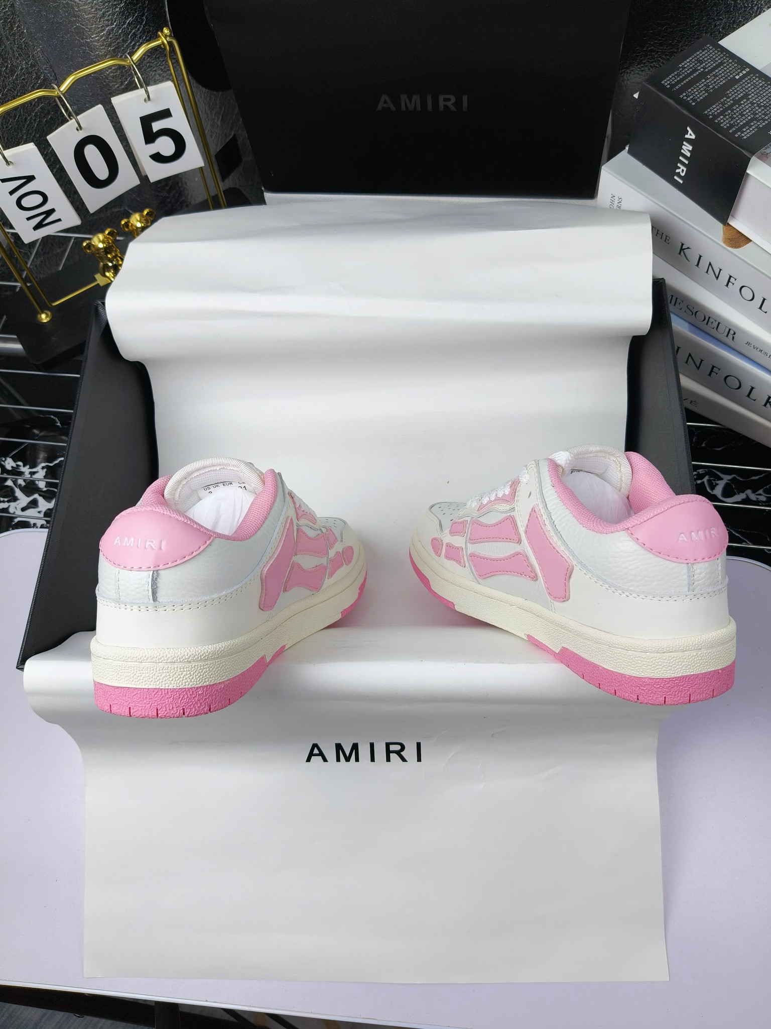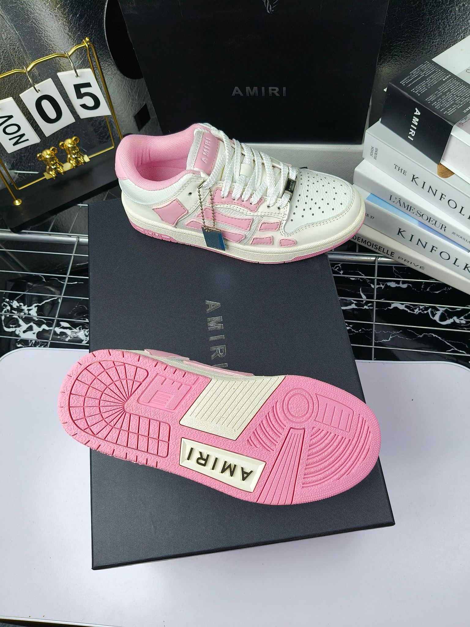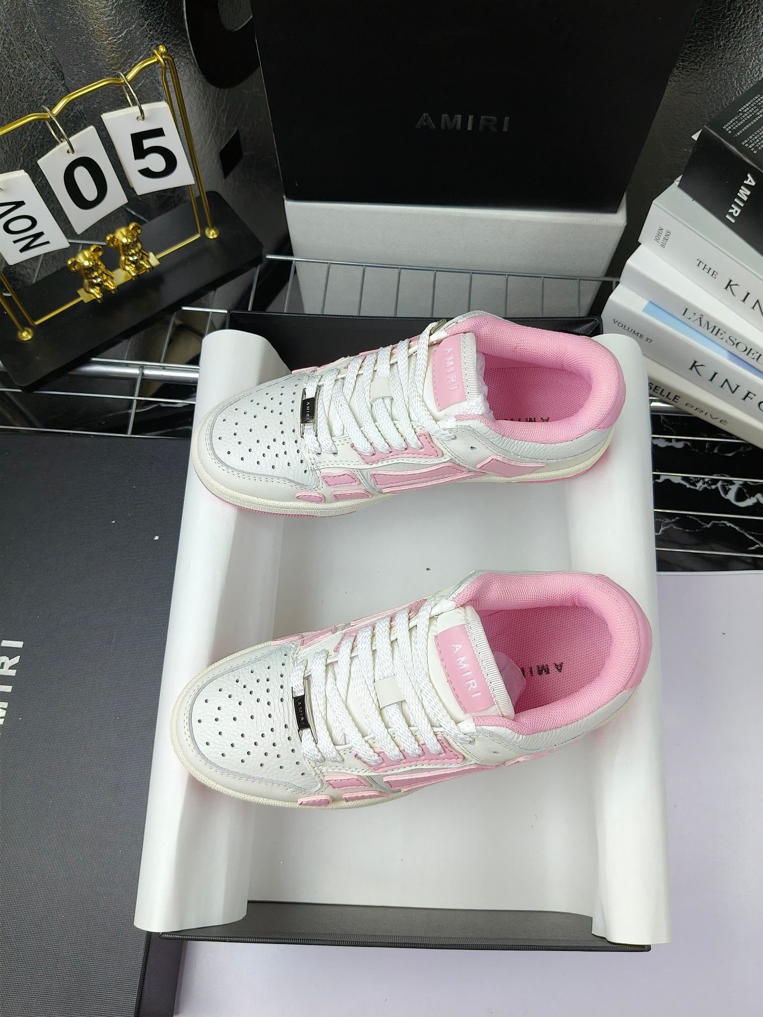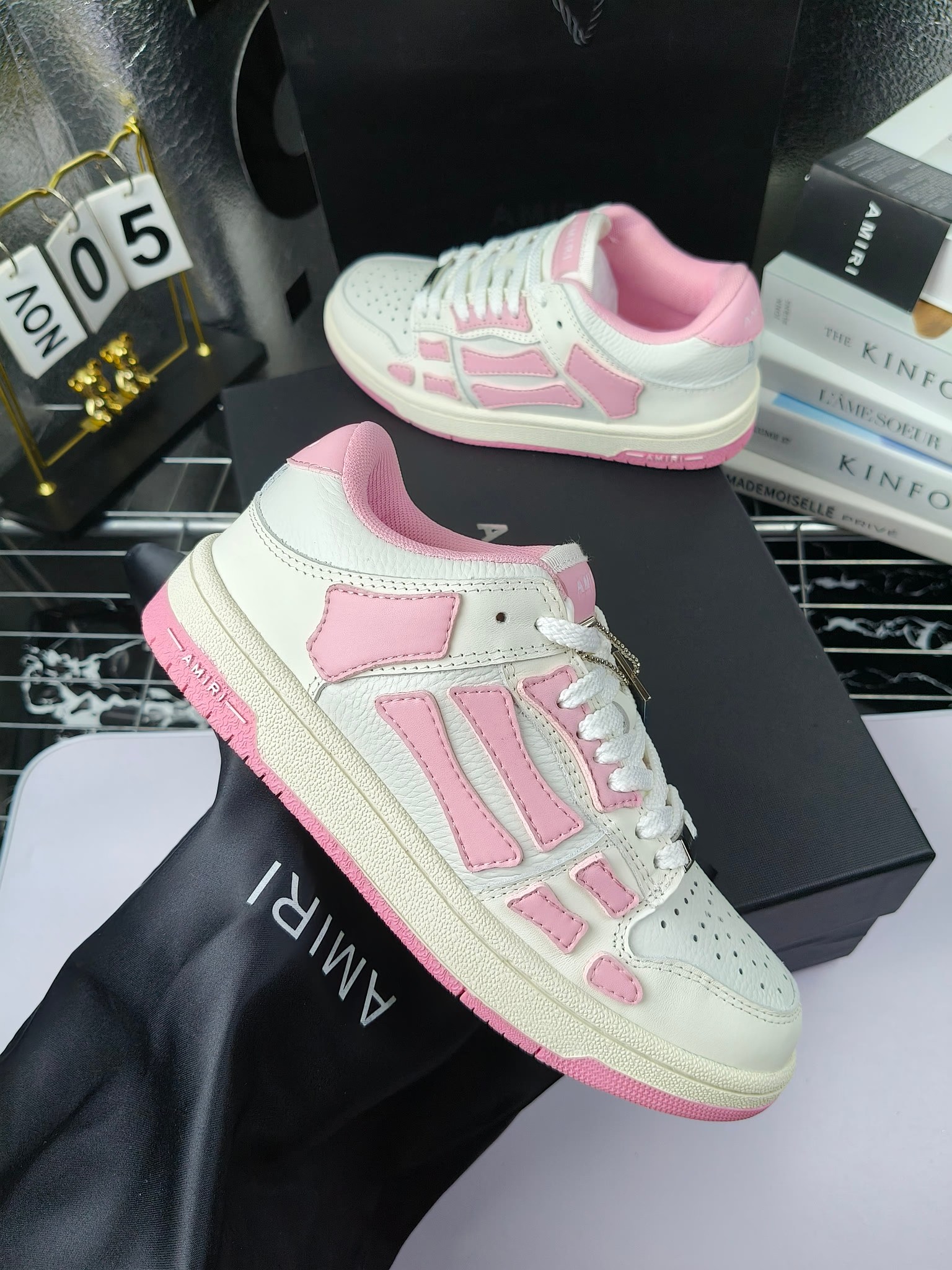 这款鞋子是AAAAA 1:1 质量 (非常棒). 使用了和原版一模一样的材料. 商标部分也保持了和AMIRI一样. 图片拍摄是实物鞋子拍摄, 您所收到的实物保证和我们图片一模一样.