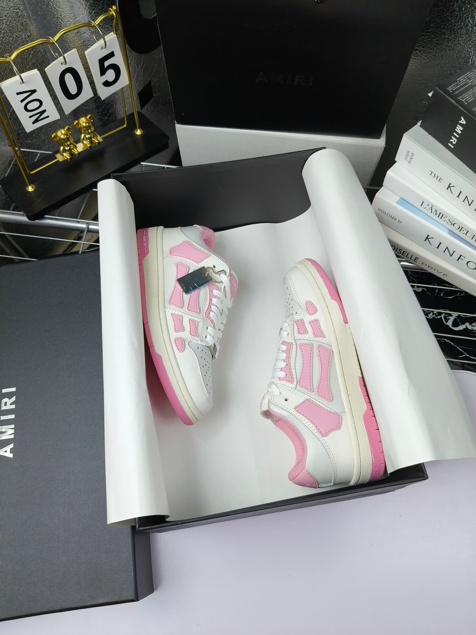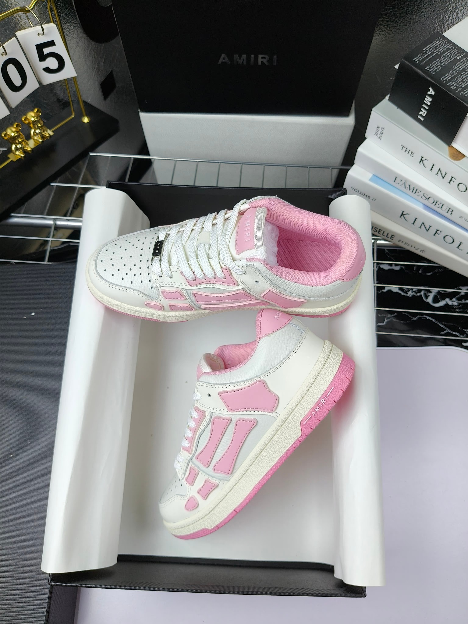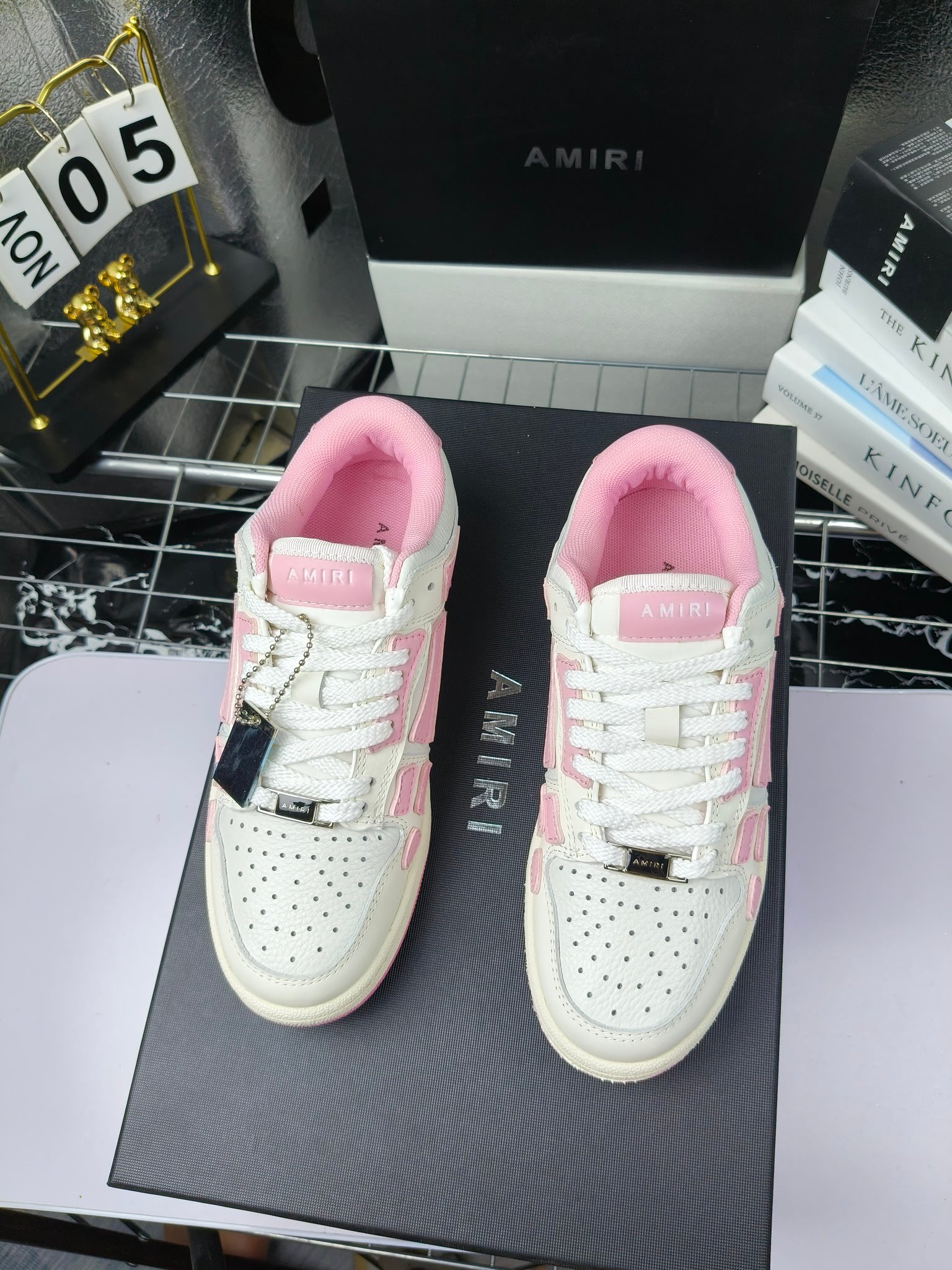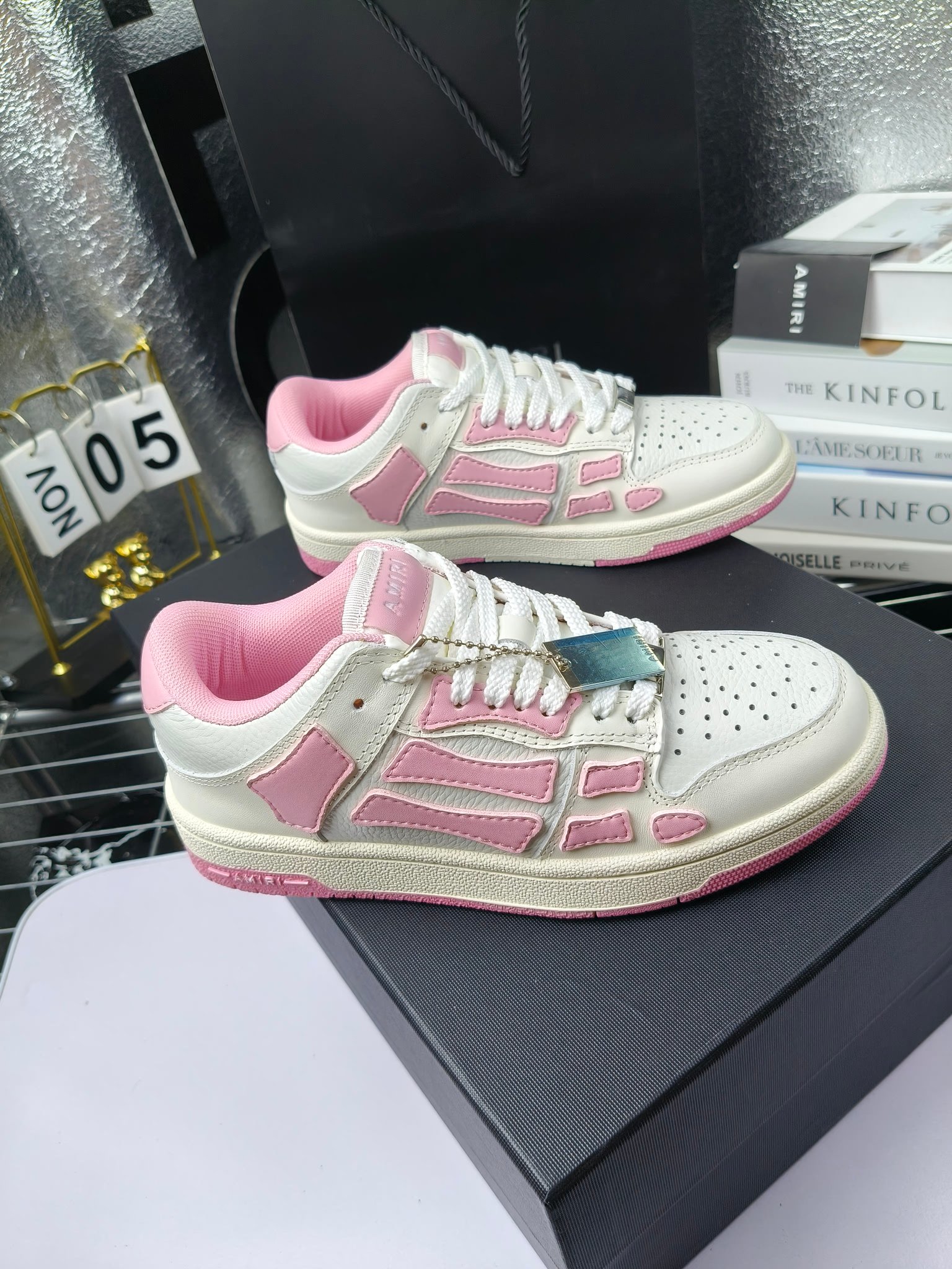 这款鞋子是AAAAA 1:1 质量 (非常棒). 使用了和原版一模一样的材料. 商标部分也保持了和AMIRI一样. 图片拍摄是实物鞋子拍摄, 您所收到的实物保证和我们图片一模一样.