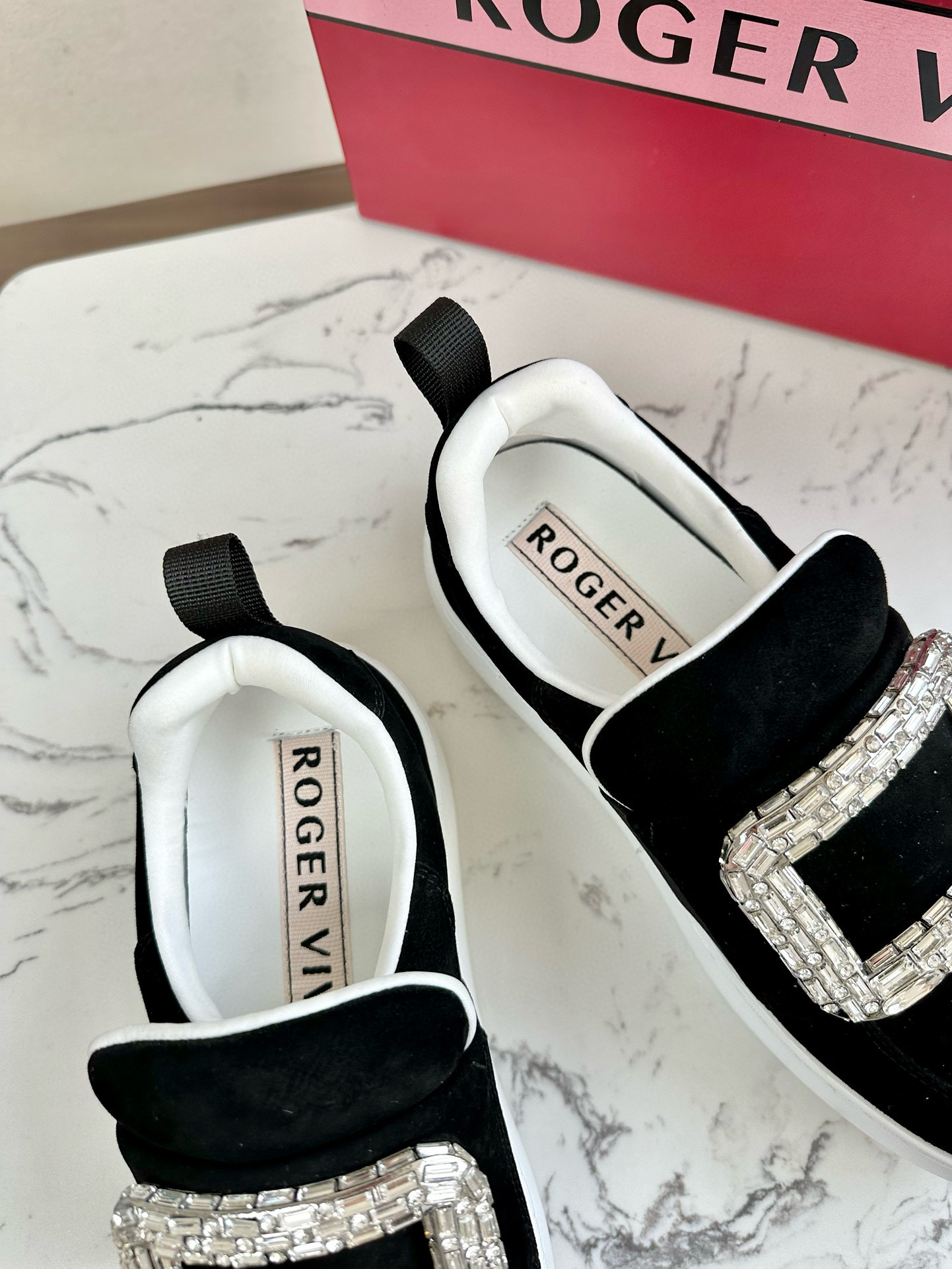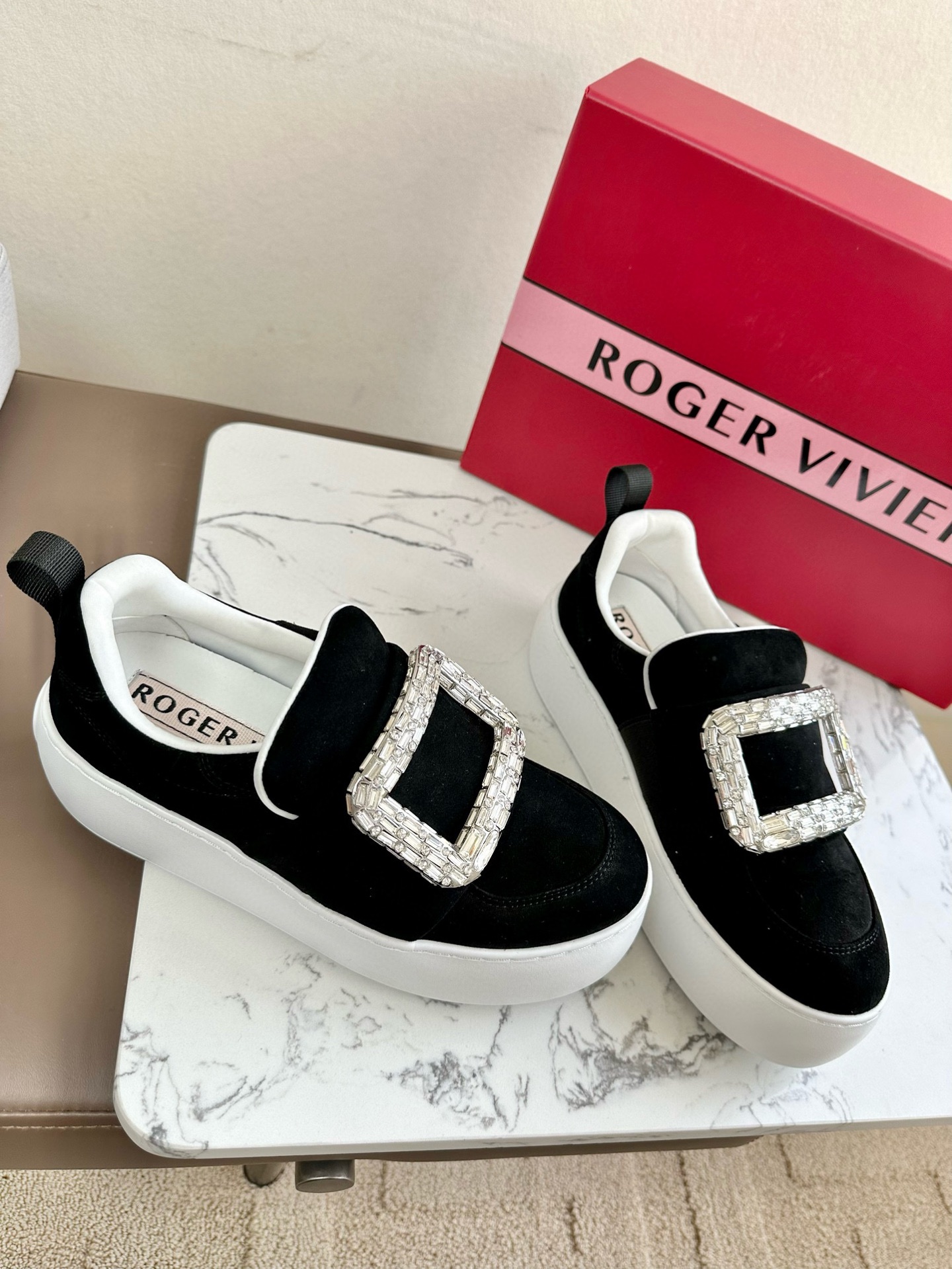 这款鞋子是AAAAA 1:1 质量 (非常棒). 使用了和原版一模一样的材料. 商标部分也保持了和罗杰维维耶/Roger Vivier一样. 图片拍摄是实物鞋子拍摄, 您所收到的实物保证和我们图片一模一样.