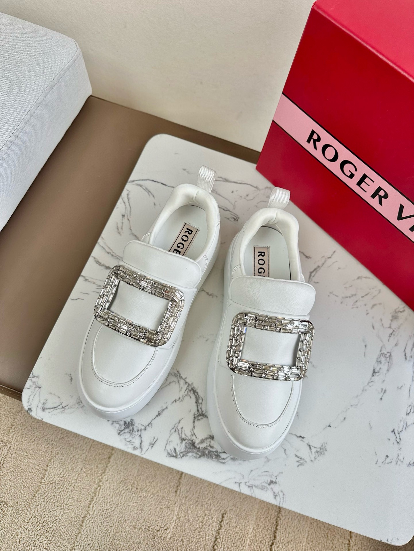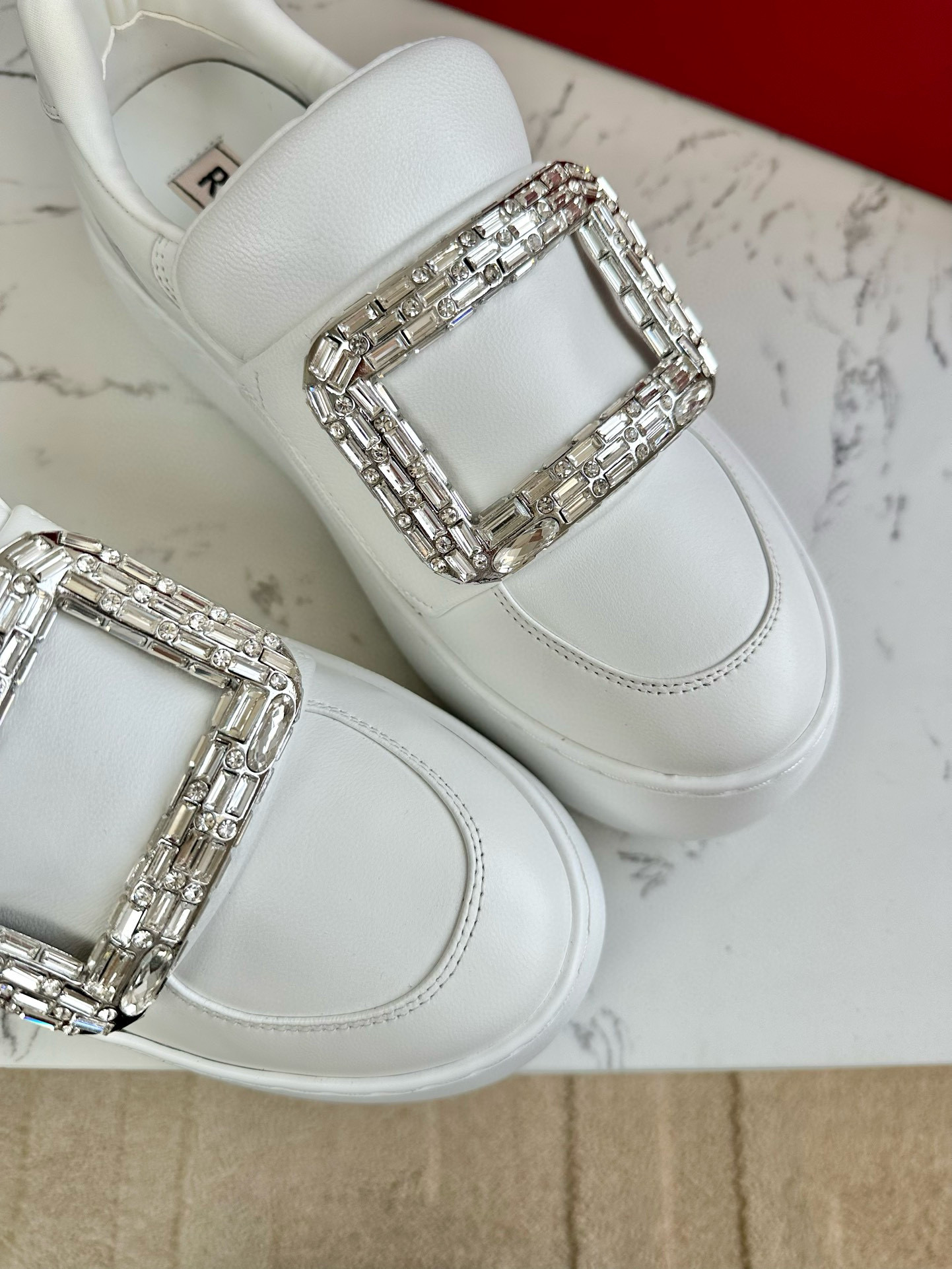 这款鞋子是AAAAA 1:1 质量 (非常棒). 使用了和原版一模一样的材料. 商标部分也保持了和罗杰维维耶/Roger Vivier一样. 图片拍摄是实物鞋子拍摄, 您所收到的实物保证和我们图片一模一样.