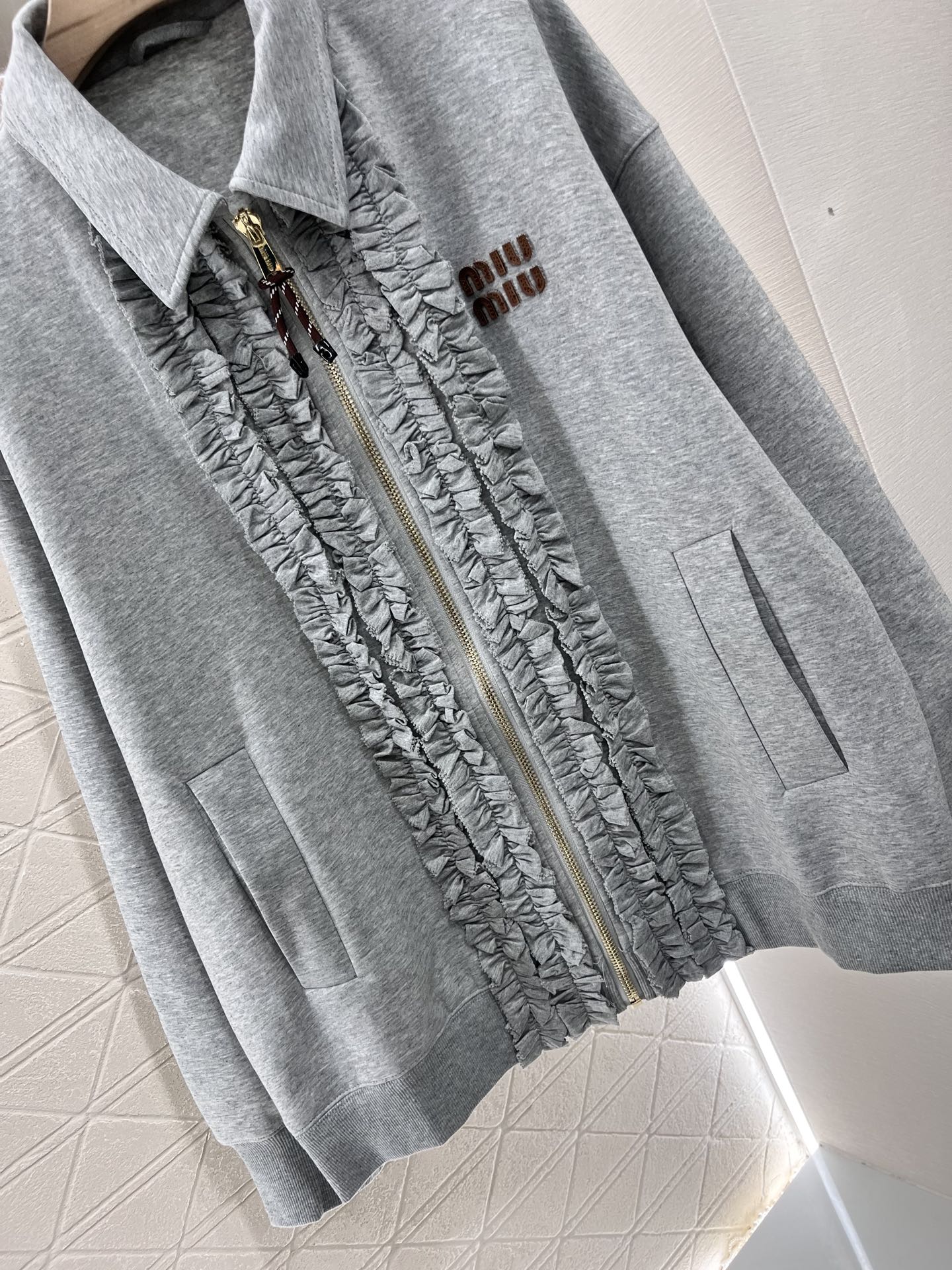 这款衣服是AAAAA 1:1 质量 (非常棒). 使用了和原版一模一样的材料. 商标部分也保持了和缪缪/Miu Miu一样. 图片拍摄是实物衣服拍摄, 您所收到的实物保证和我们图片一模一样.