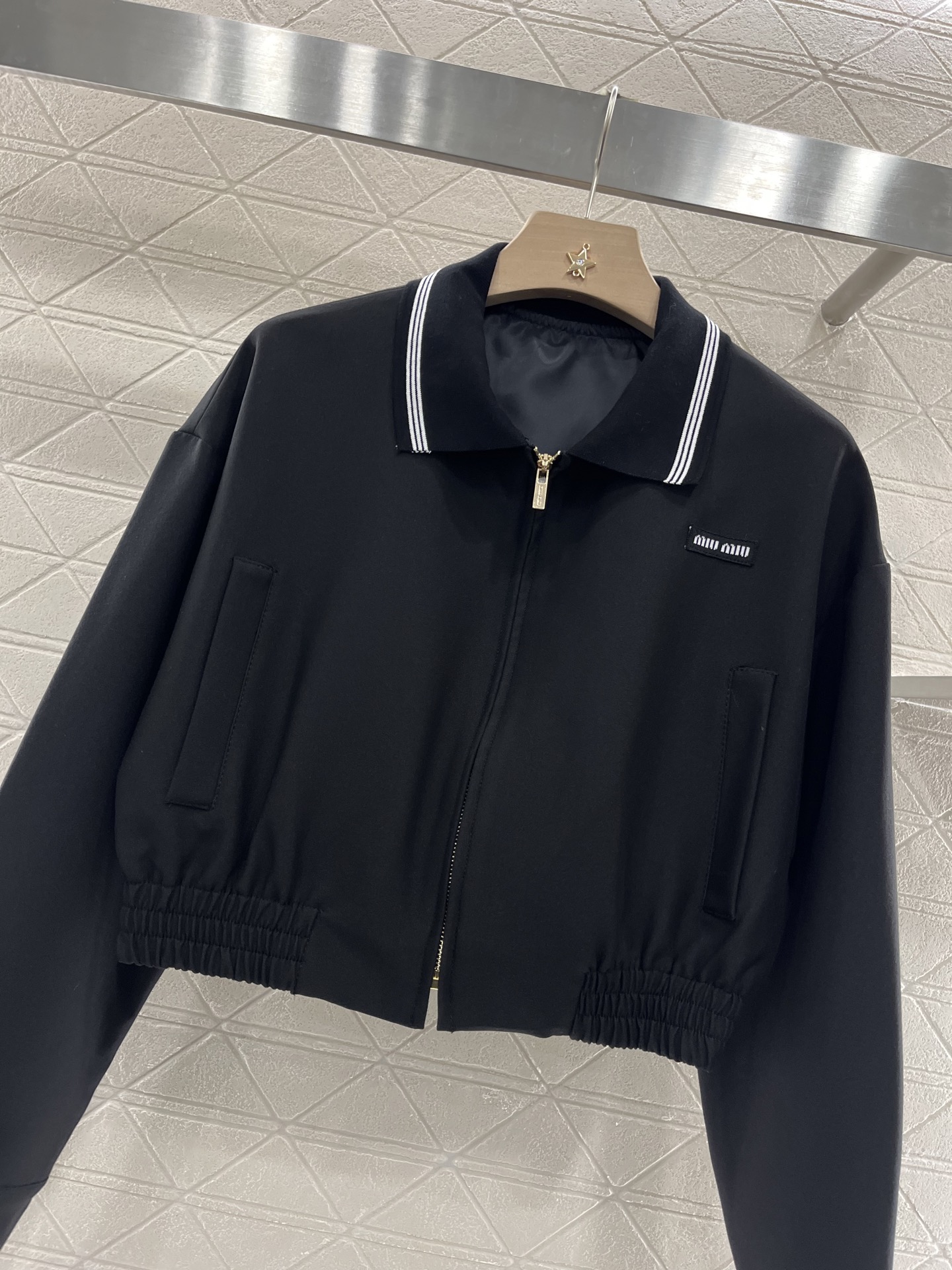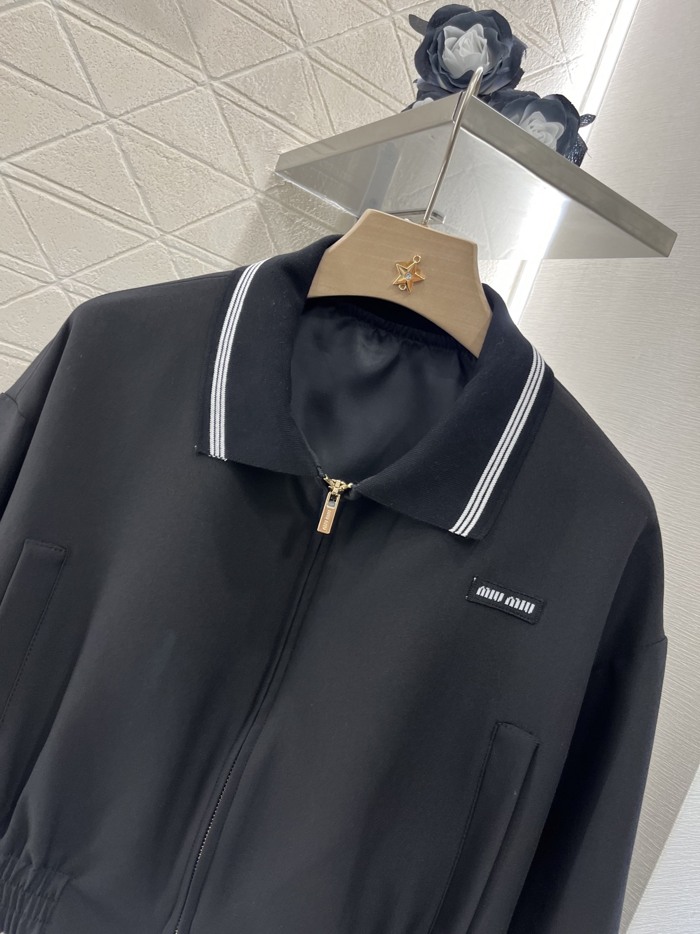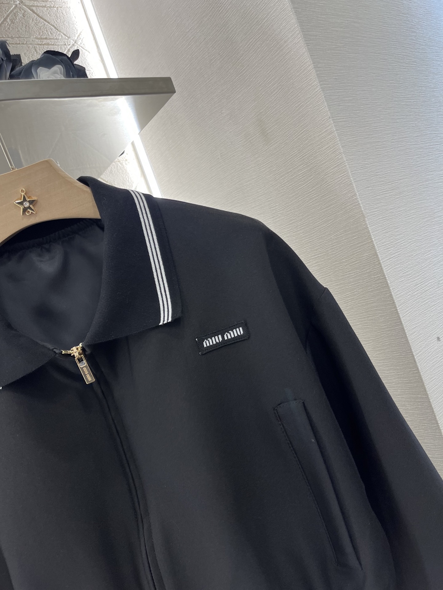这款衣服是AAAAA 1:1 质量 (非常棒). 使用了和原版一模一样的材料. 商标部分也保持了和缪缪/Miu Miu一样. 图片拍摄是实物衣服拍摄, 您所收到的实物保证和我们图片一模一样.