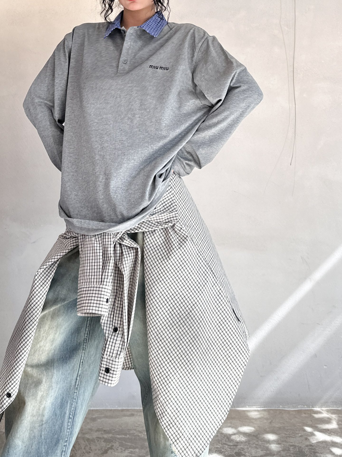 这款衣服是AAAAA 1:1 质量 (非常棒). 使用了和原版一模一样的材料. 商标部分也保持了和缪缪/Miu Miu一样. 图片拍摄是实物衣服拍摄, 您所收到的实物保证和我们图片一模一样.