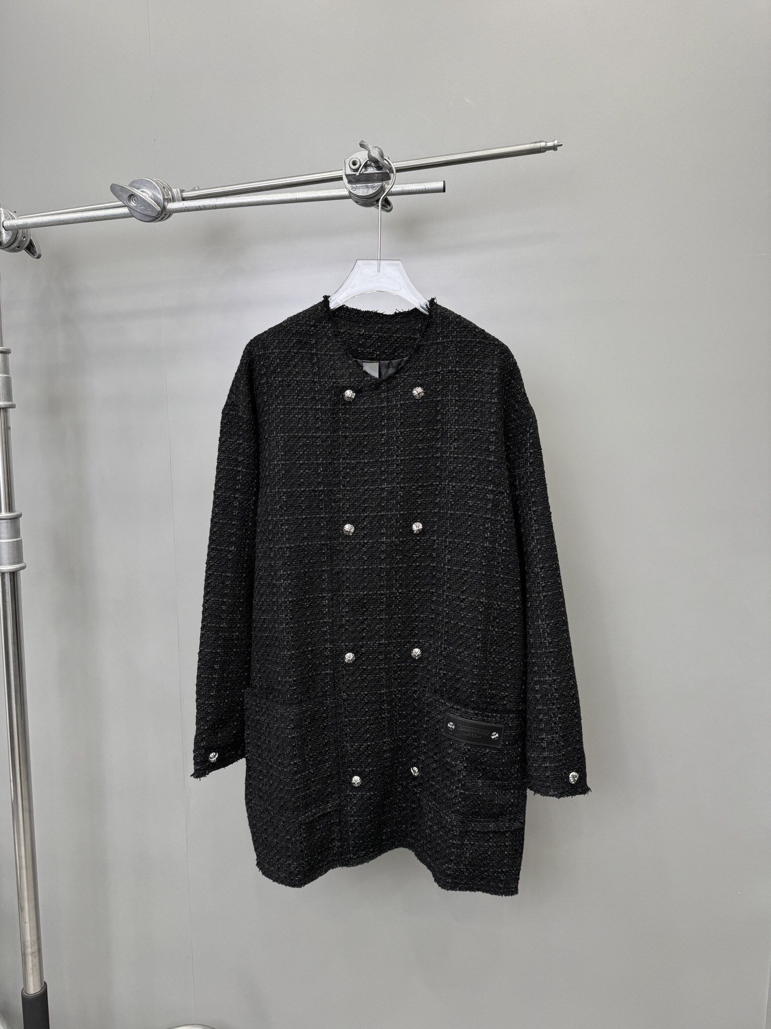 这款衣服是AAAAA 1:1 质量 (非常棒). 使用了和原版一模一样的材料. 商标部分也保持了和克罗心/Chrome Hearts一样. 图片拍摄是实物衣服拍摄, 您所收到的实物保证和我们图片一模一样.
