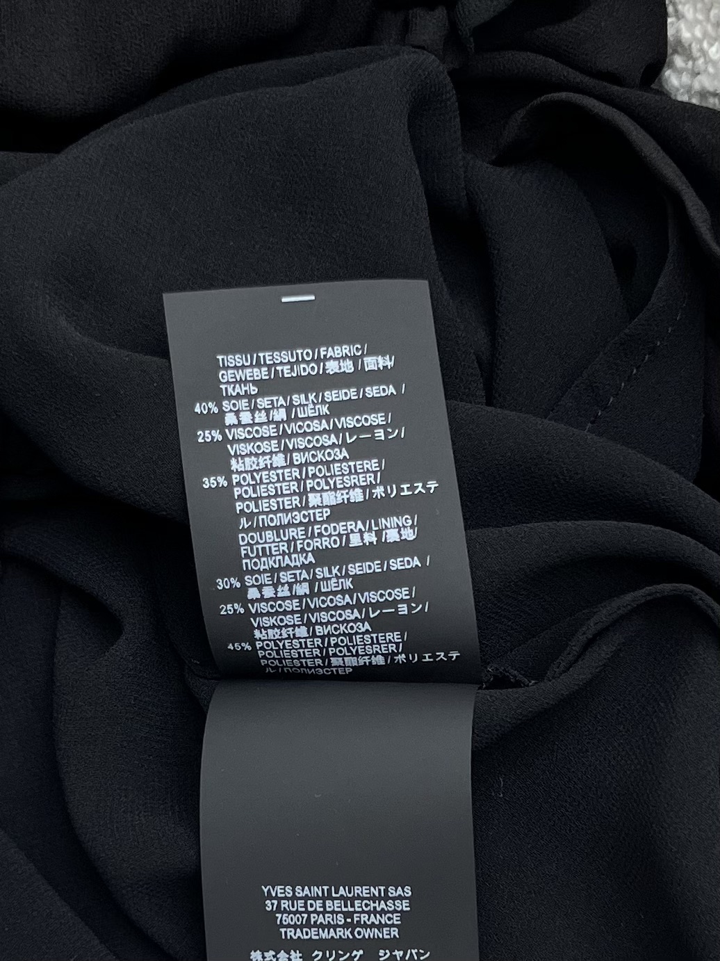 这款衣服是AAAAA 1:1 质量 (非常棒). 使用了和原版一模一样的材料. 商标部分也保持了和圣罗兰/Saint Laurent一样. 图片拍摄是实物衣服拍摄, 您所收到的实物保证和我们图片一模一样.