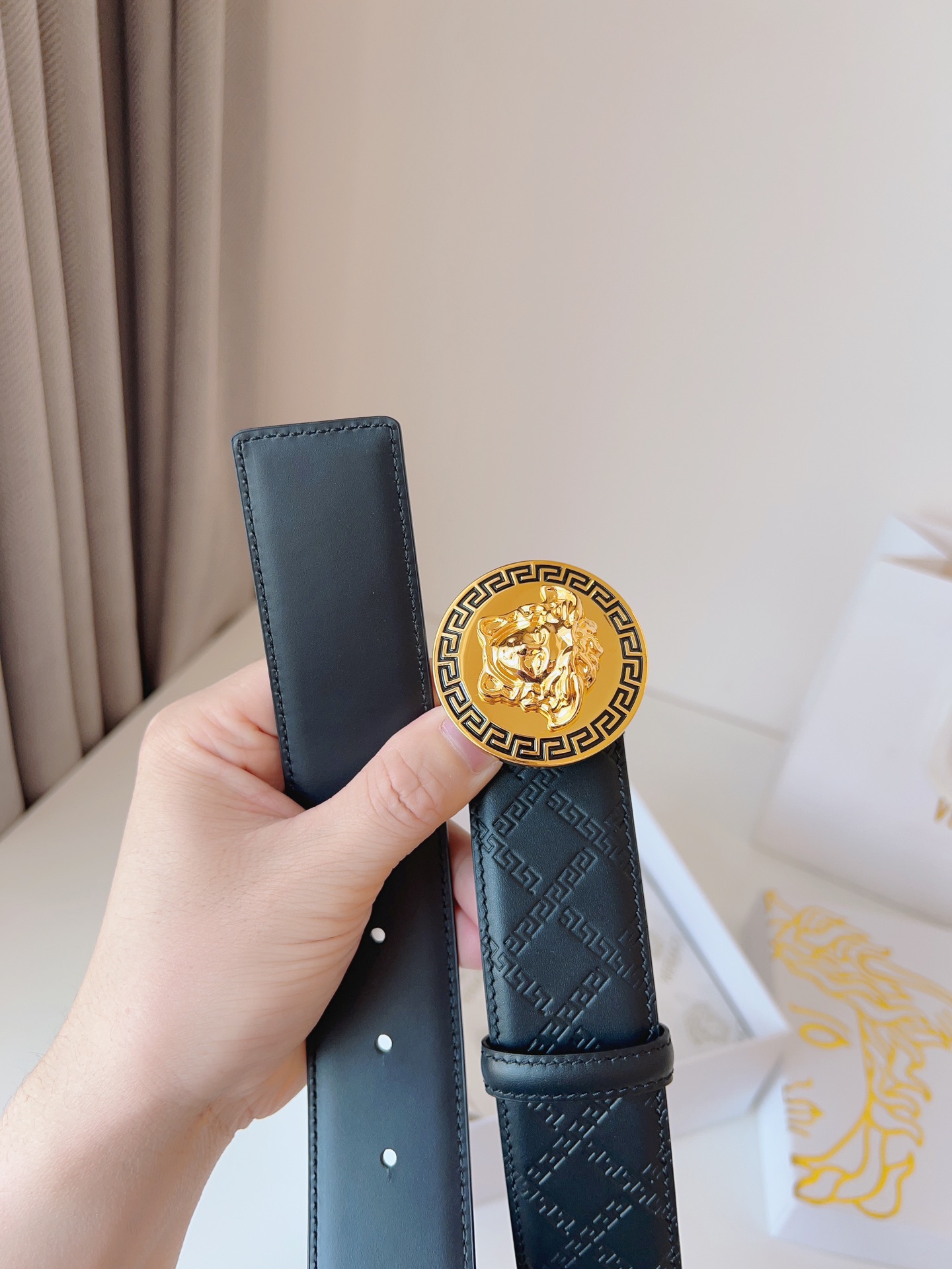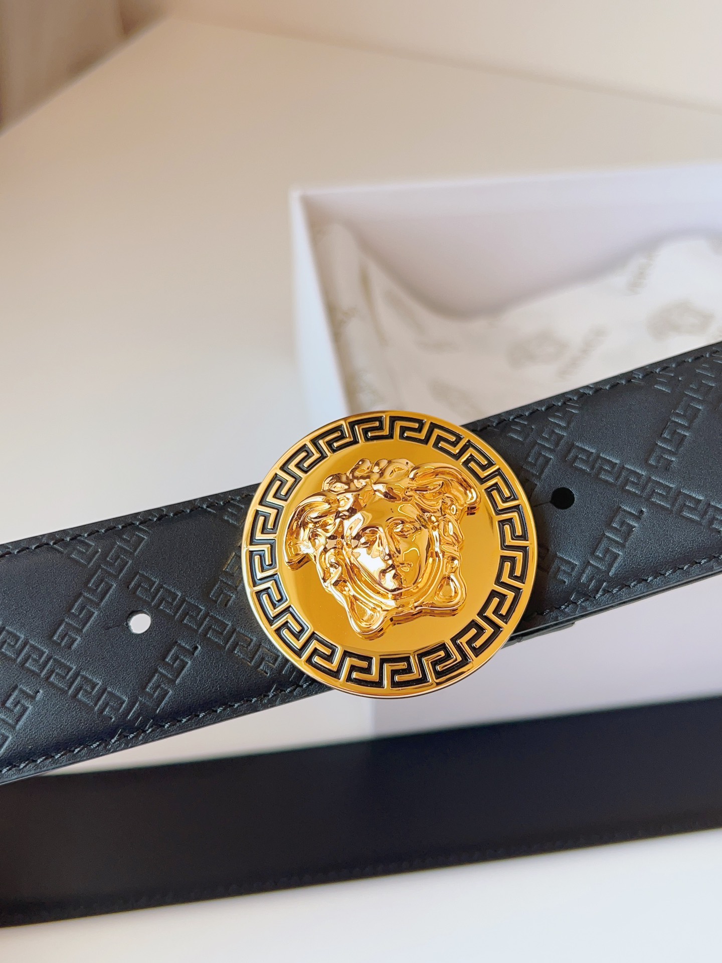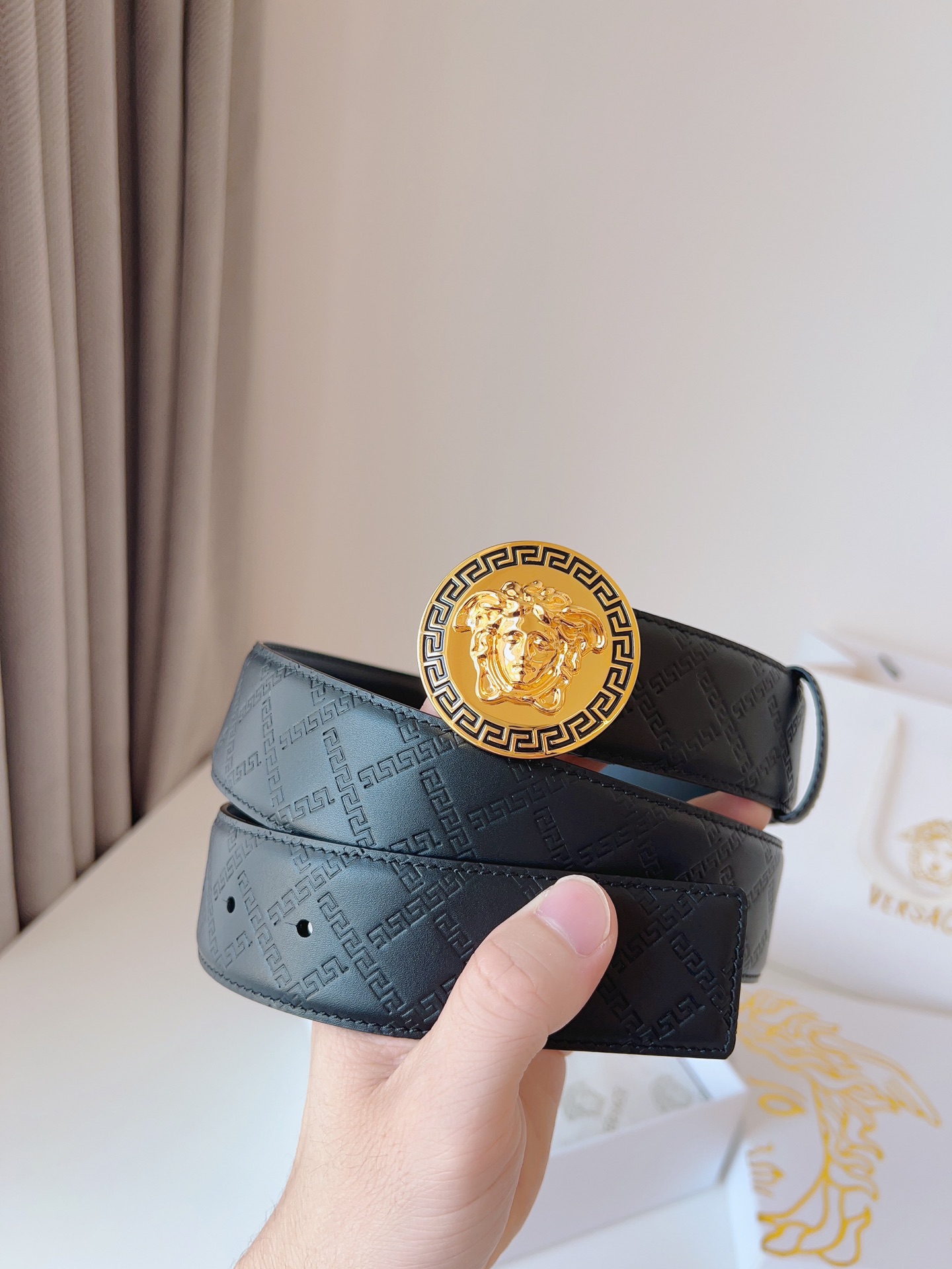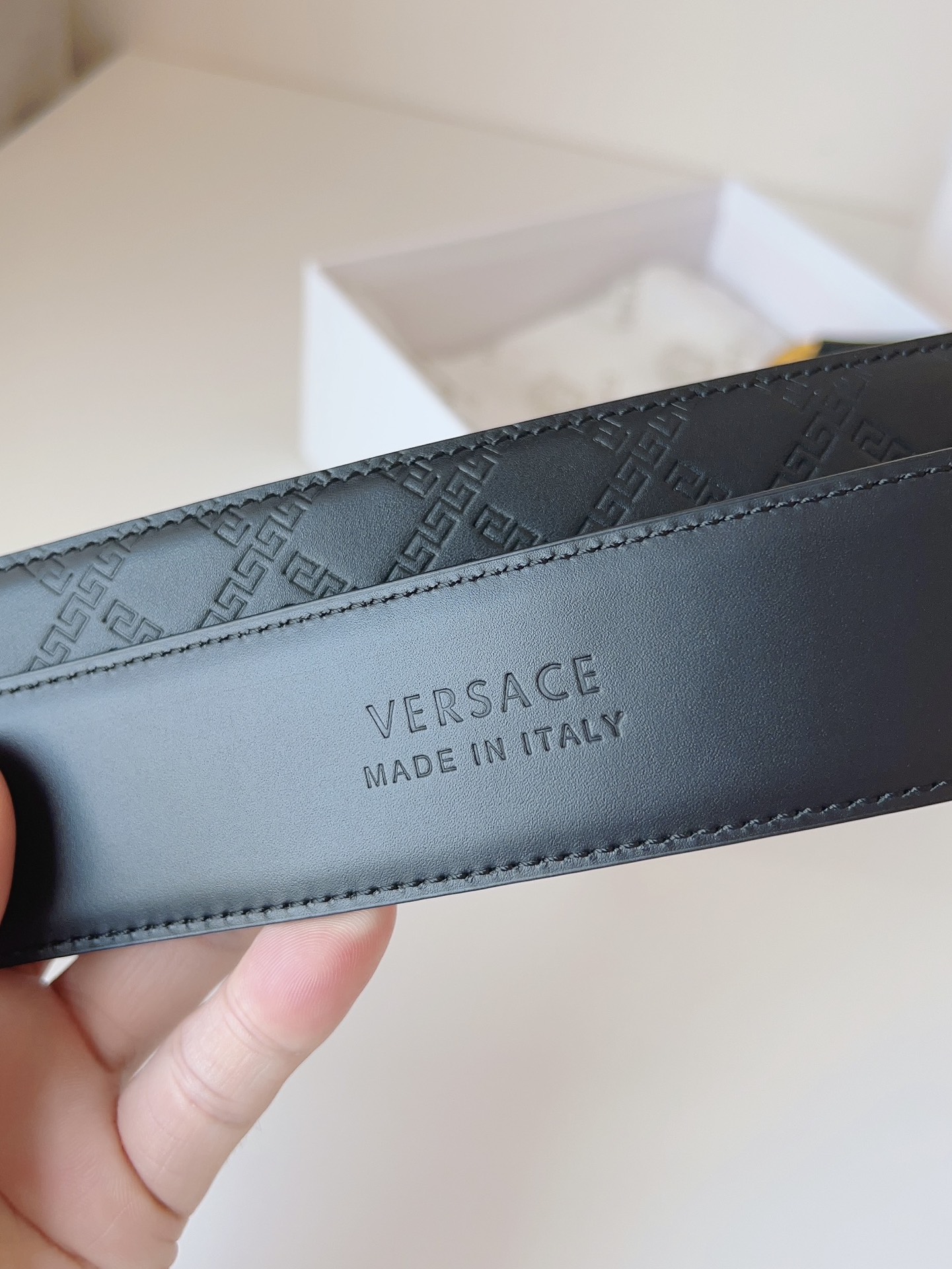 这款皮带是AAAAA 1:1 质量 (非常棒). 使用了和原版一模一样的材料. 商标部分也保持了和范思哲/Versace一样. 图片拍摄是实物皮带拍摄, 您所收到的实物保证和我们图片一模一样.