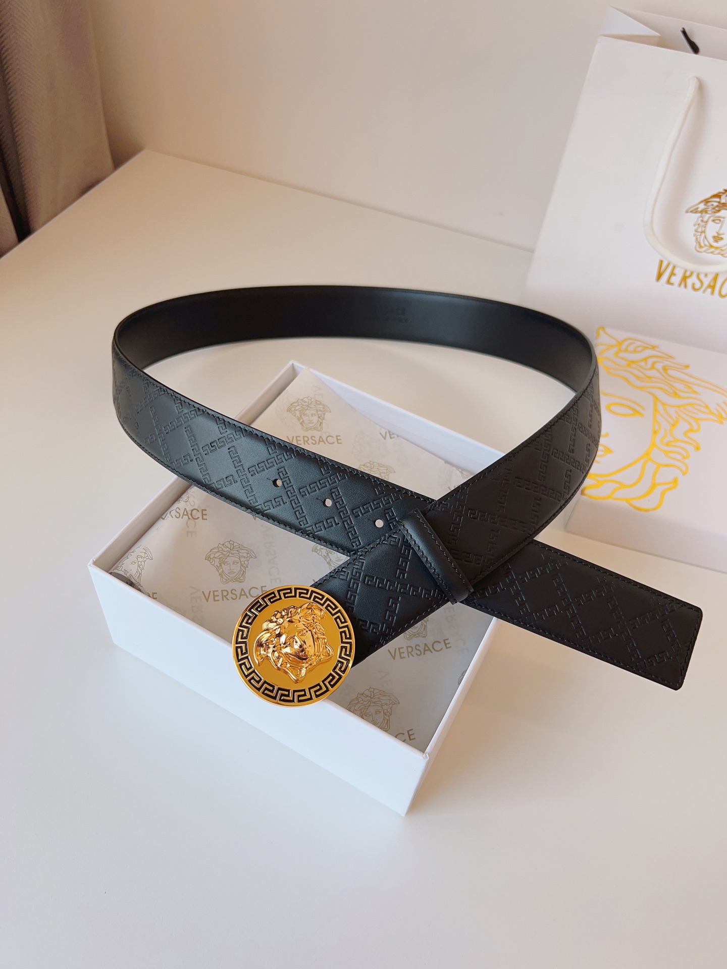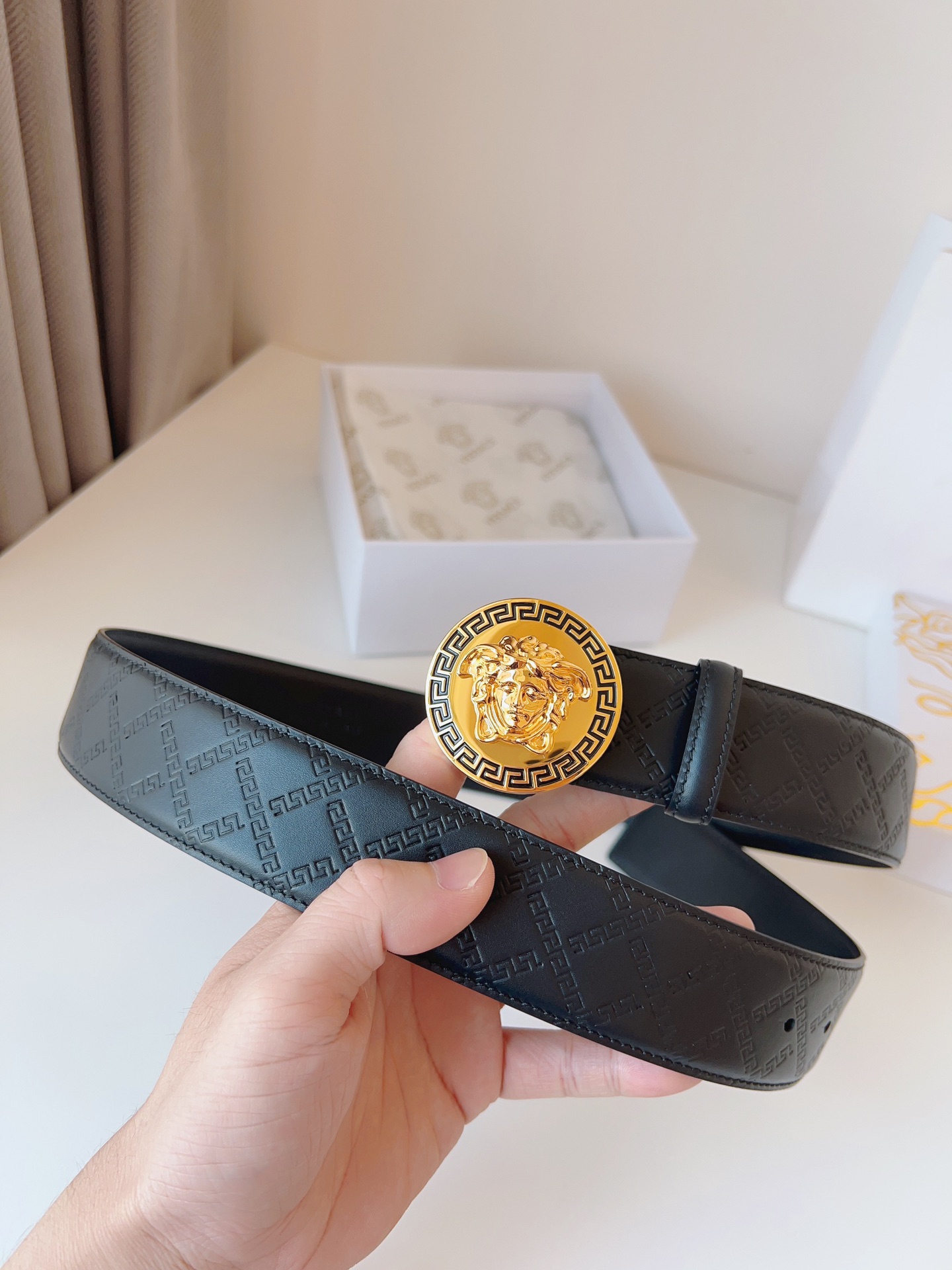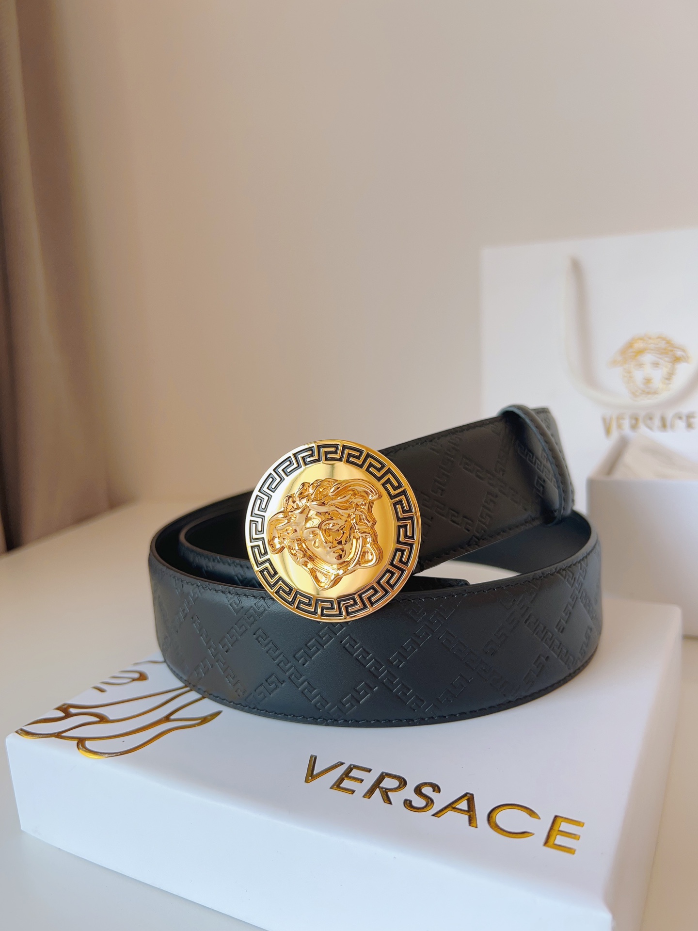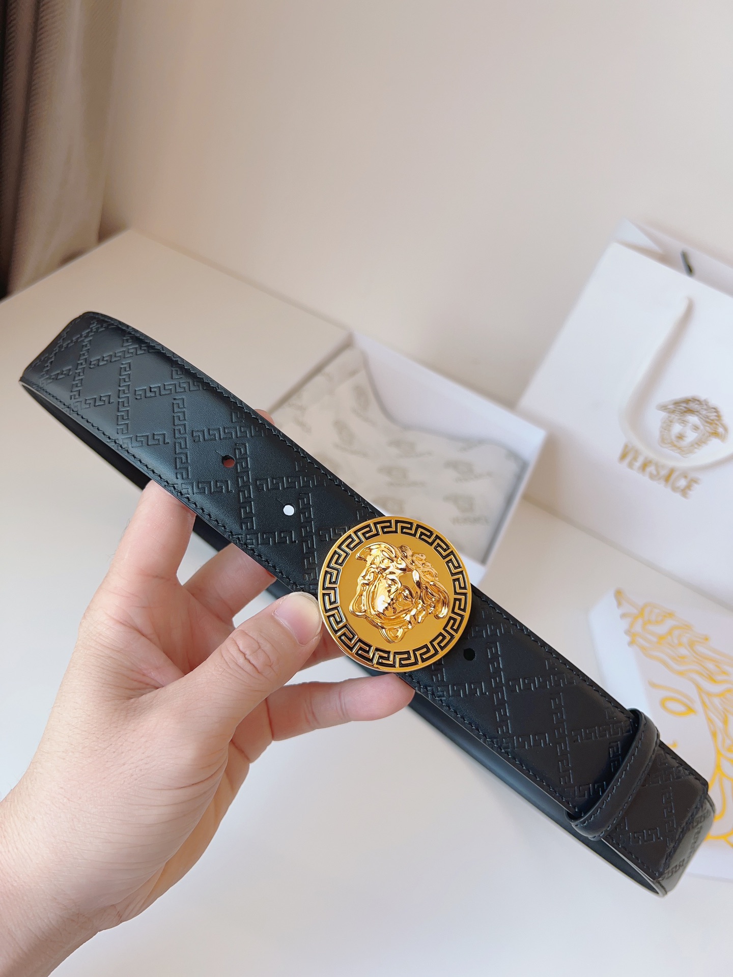 这款皮带是AAAAA 1:1 质量 (非常棒). 使用了和原版一模一样的材料. 商标部分也保持了和范思哲/Versace一样. 图片拍摄是实物皮带拍摄, 您所收到的实物保证和我们图片一模一样.