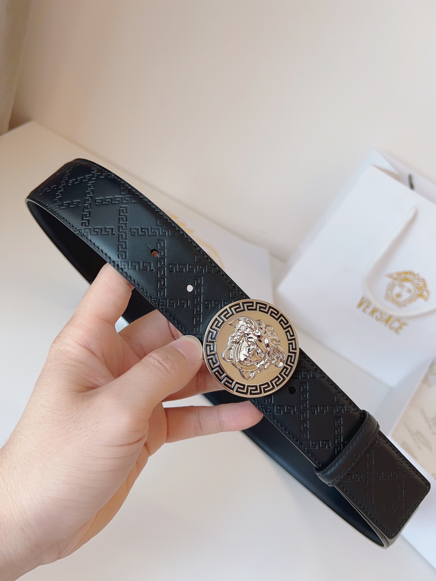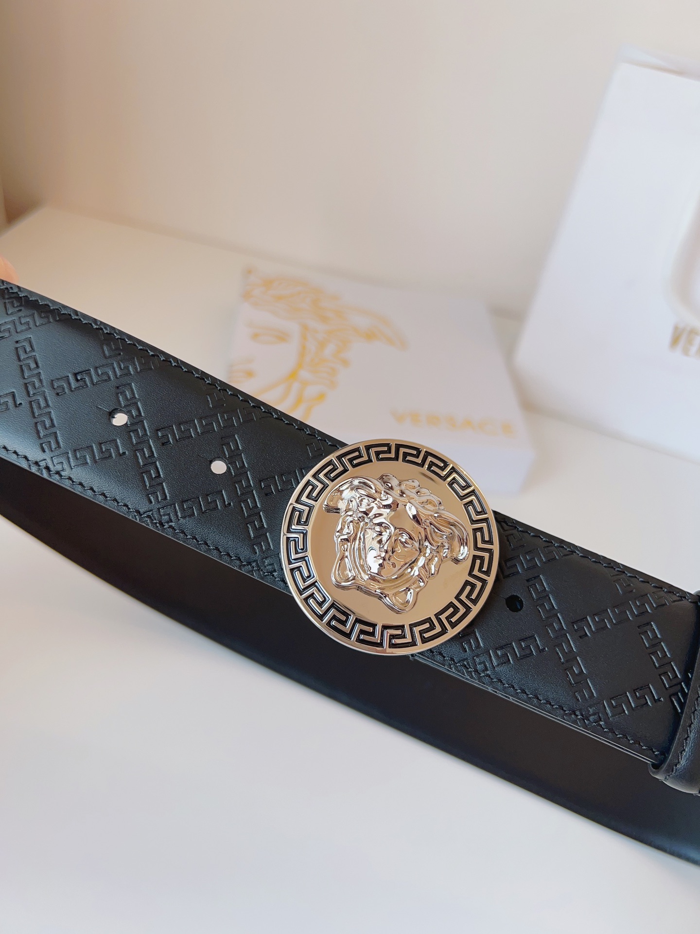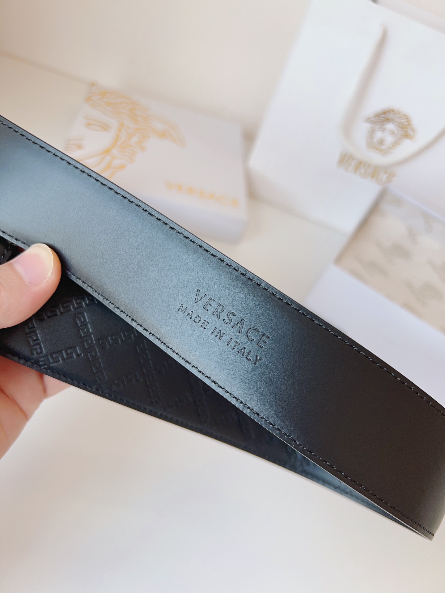 这款皮带是AAAAA 1:1 质量 (非常棒). 使用了和原版一模一样的材料. 商标部分也保持了和范思哲/Versace一样. 图片拍摄是实物皮带拍摄, 您所收到的实物保证和我们图片一模一样.