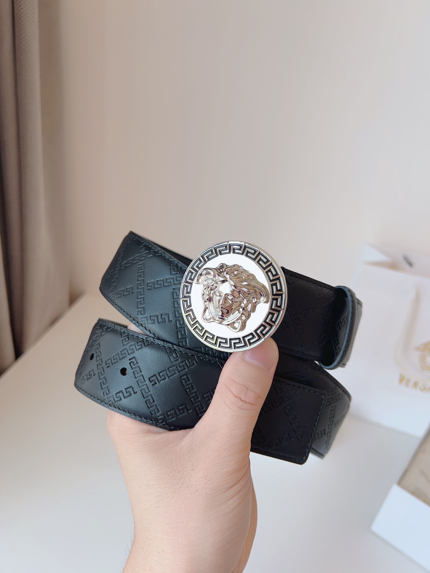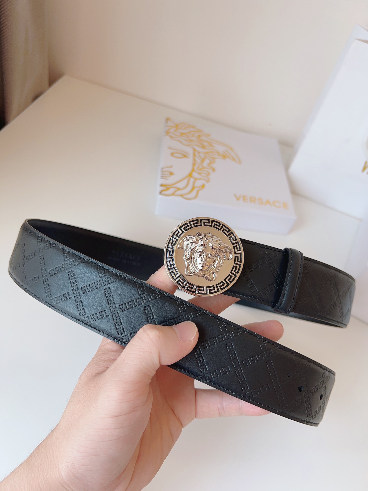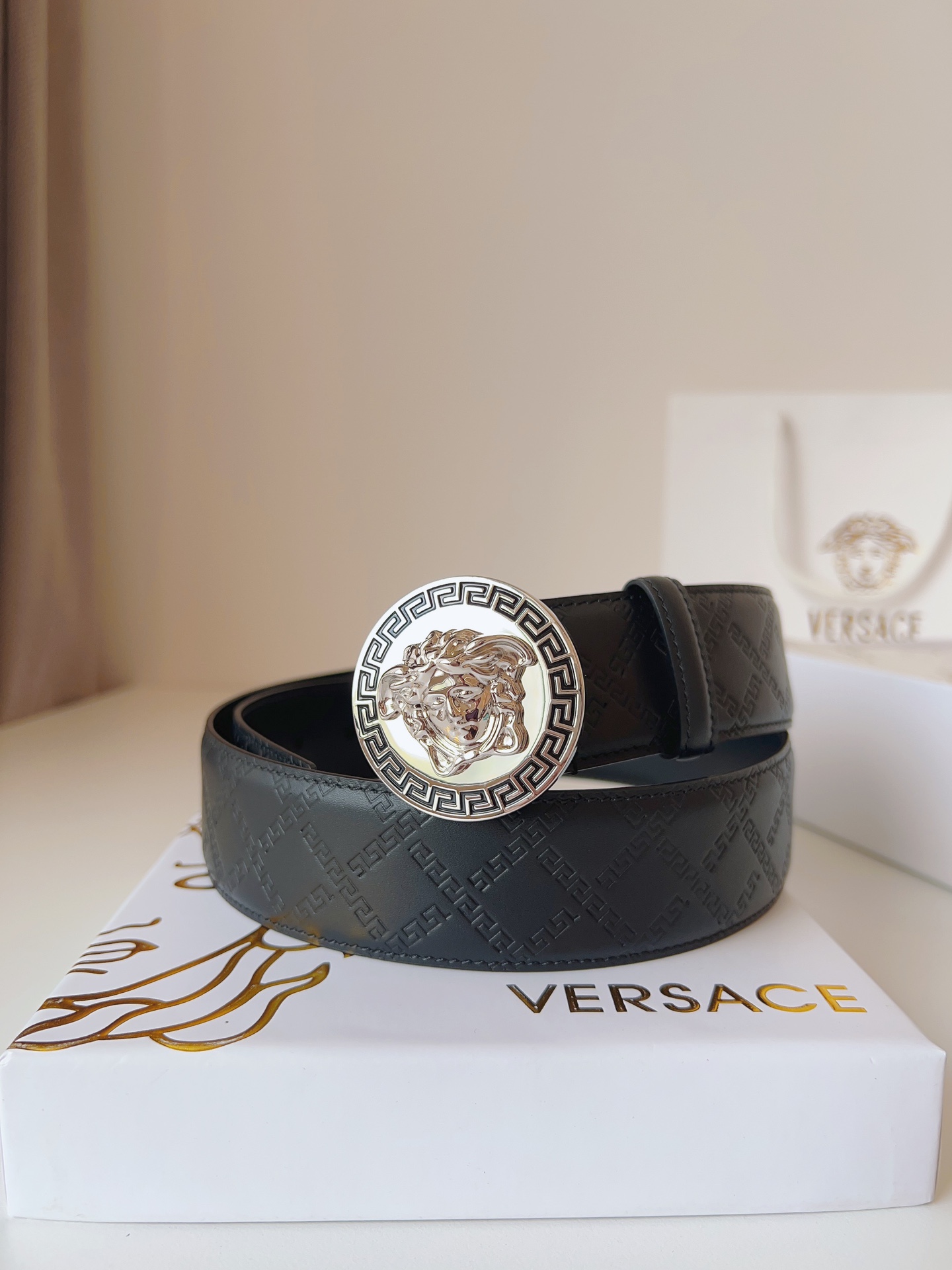 这款皮带是AAAAA 1:1 质量 (非常棒). 使用了和原版一模一样的材料. 商标部分也保持了和范思哲/Versace一样. 图片拍摄是实物皮带拍摄, 您所收到的实物保证和我们图片一模一样.