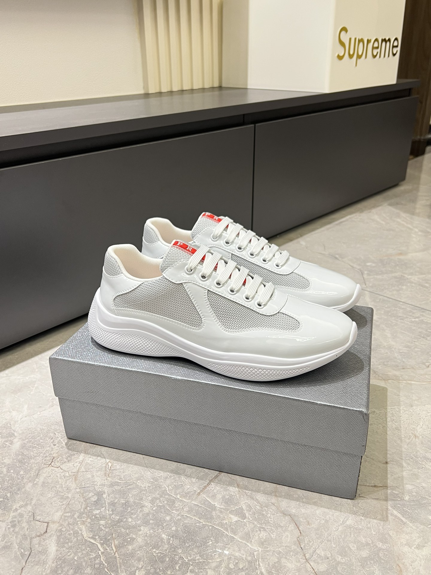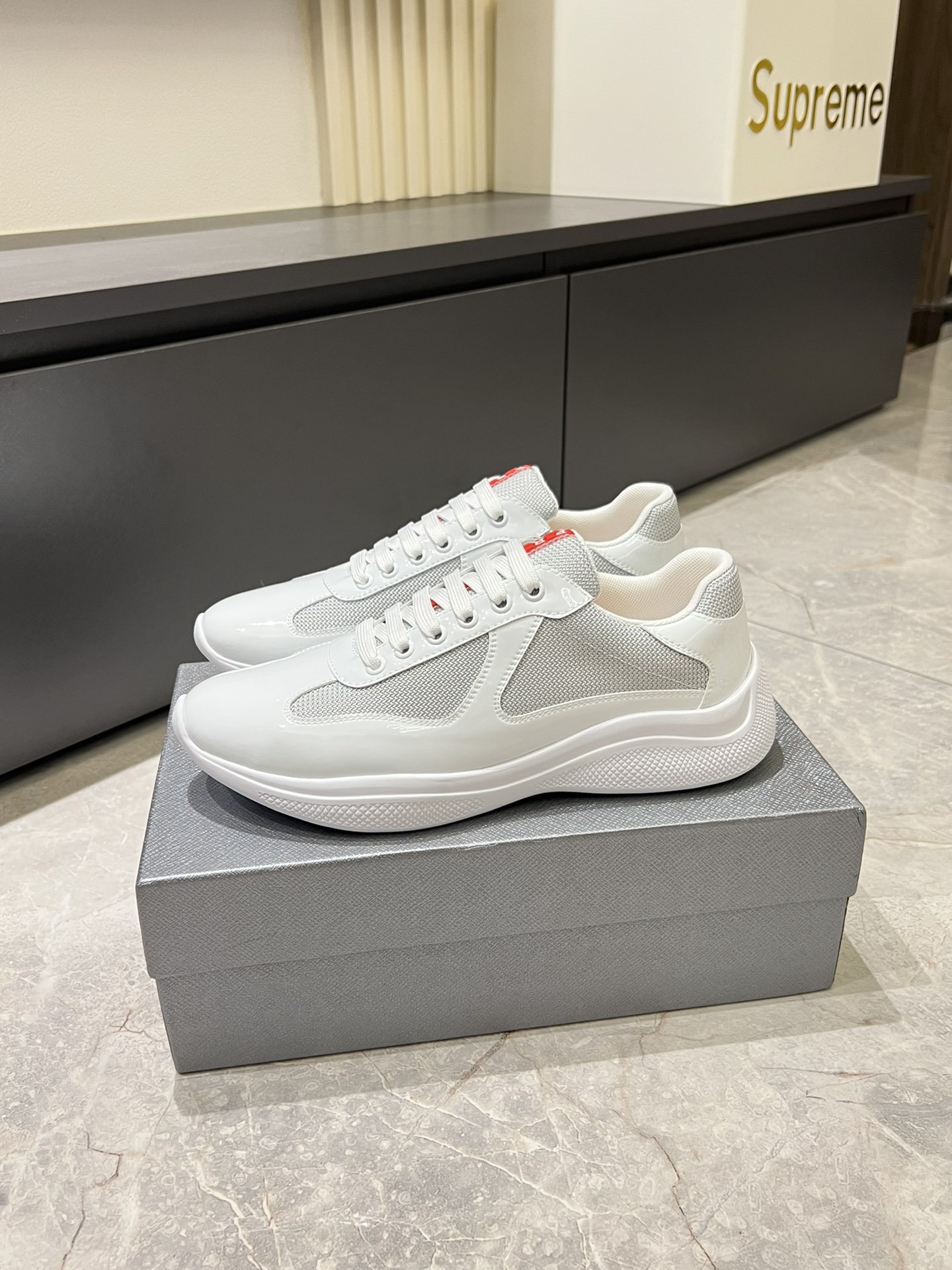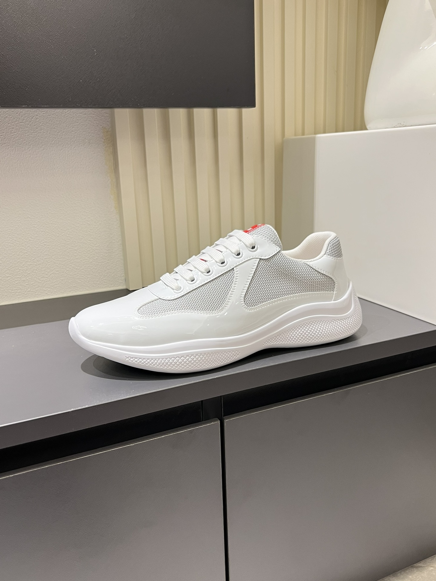 这款鞋子是AAAAA 1:1 质量 (非常棒). 使用了和原版一模一样的材料. 商标部分也保持了和普拉达/Prada一样. 图片拍摄是实物鞋子拍摄, 您所收到的实物保证和我们图片一模一样.