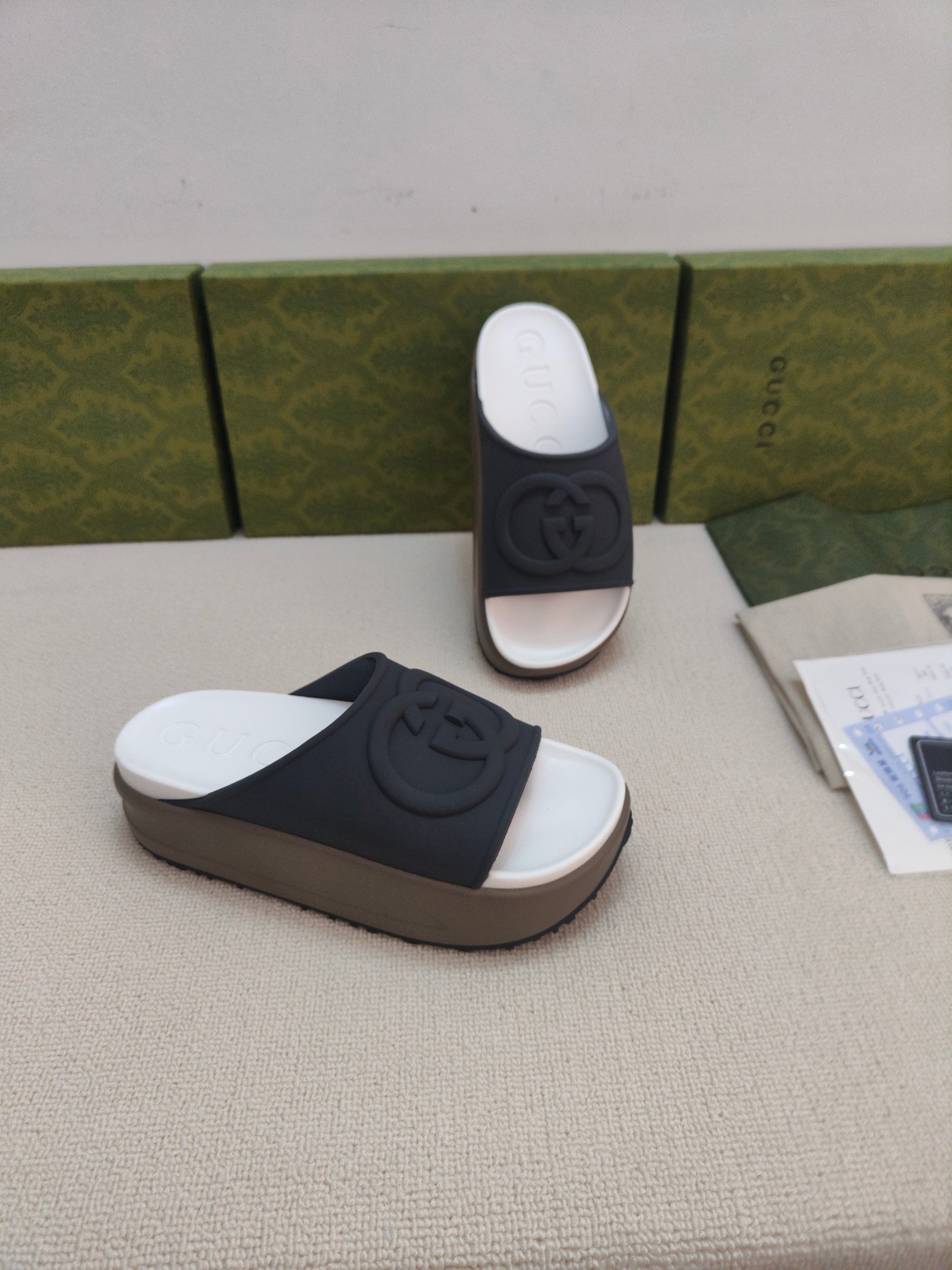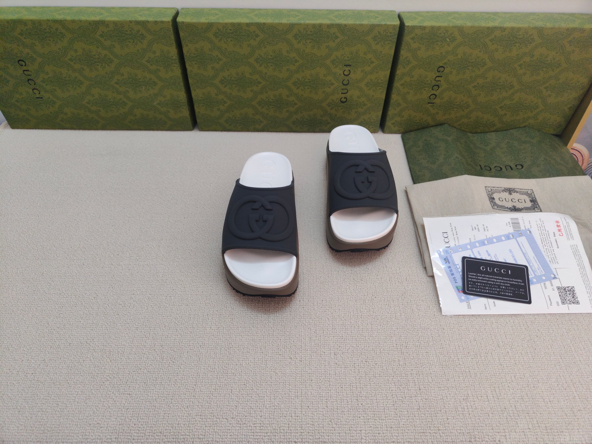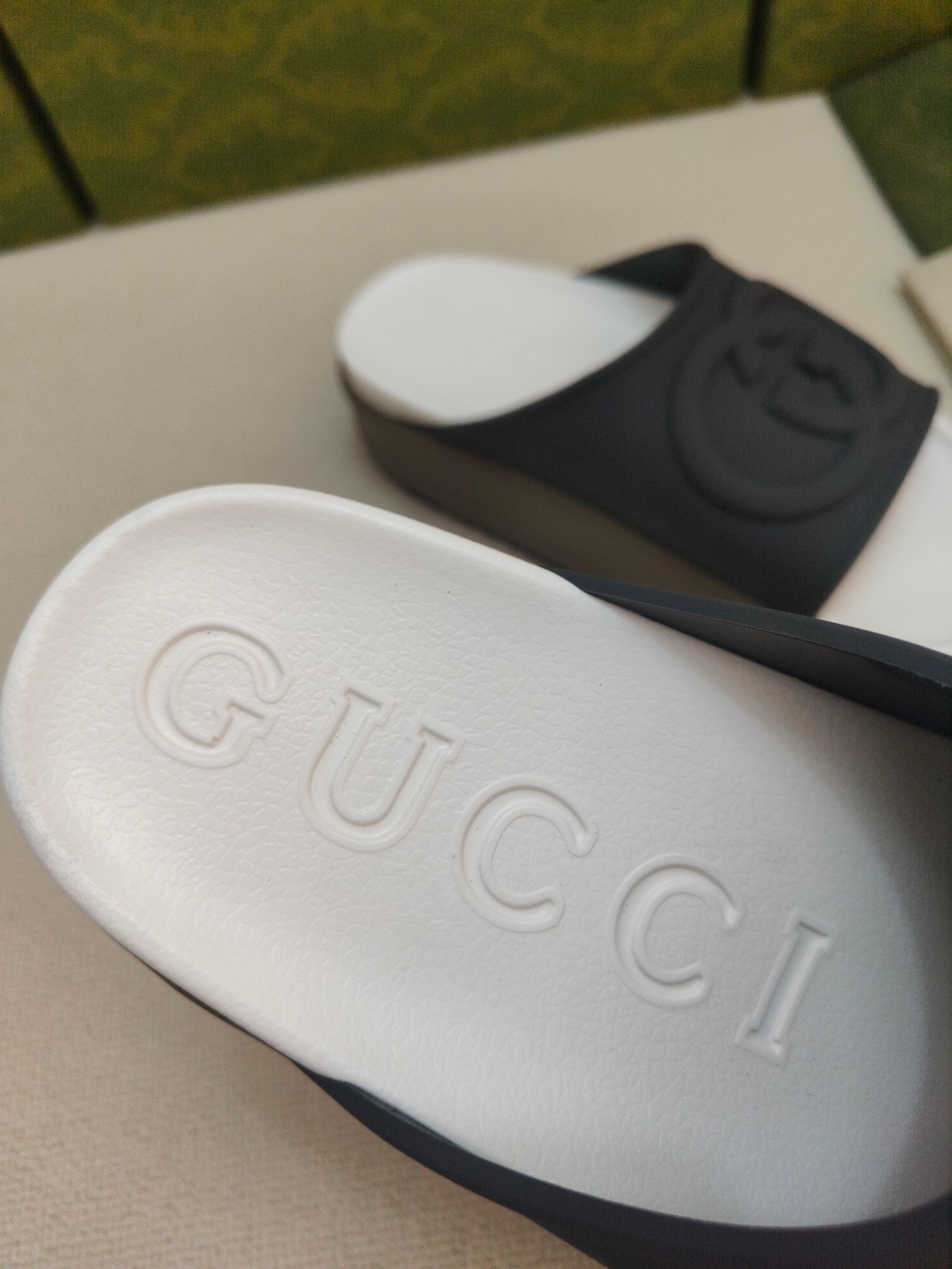这款鞋子是AAAAA 1:1 质量 (非常棒). 使用了和原版一模一样的材料. 商标部分也保持了和古奇/Gucci一样. 图片拍摄是实物鞋子拍摄, 您所收到的实物保证和我们图片一模一样.