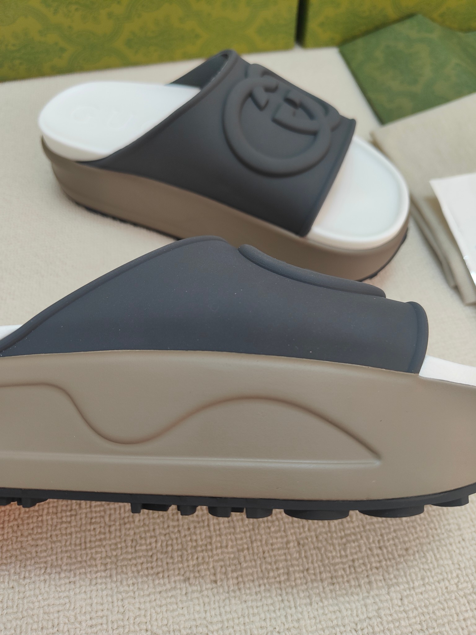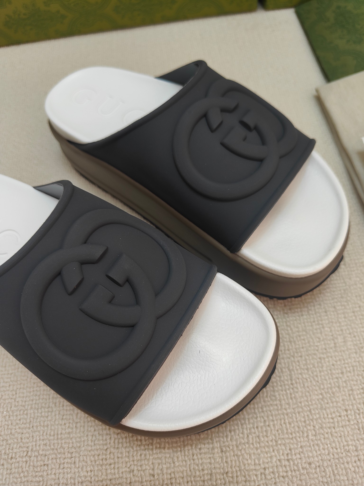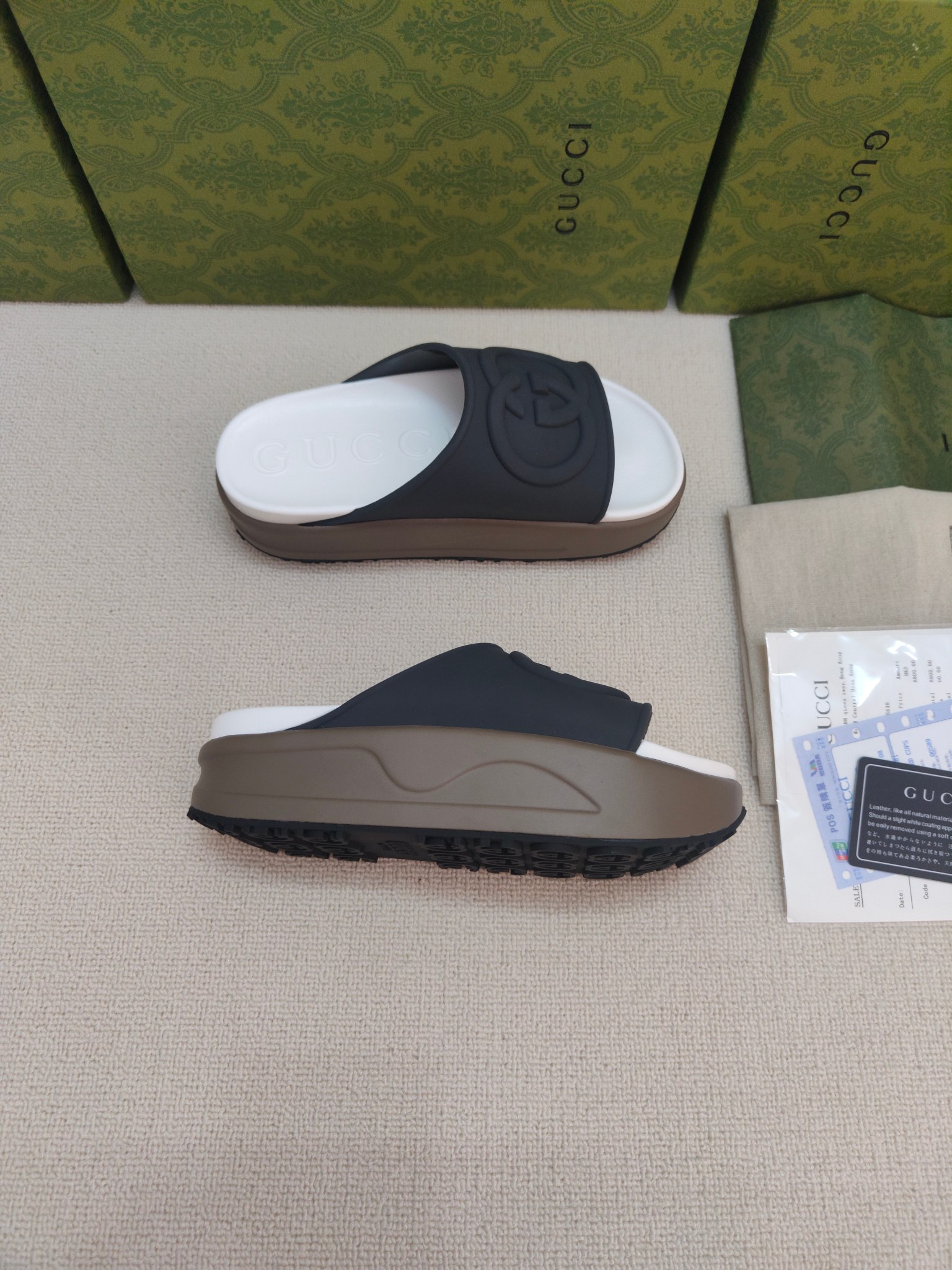 这款鞋子是AAAAA 1:1 质量 (非常棒). 使用了和原版一模一样的材料. 商标部分也保持了和古奇/Gucci一样. 图片拍摄是实物鞋子拍摄, 您所收到的实物保证和我们图片一模一样.
