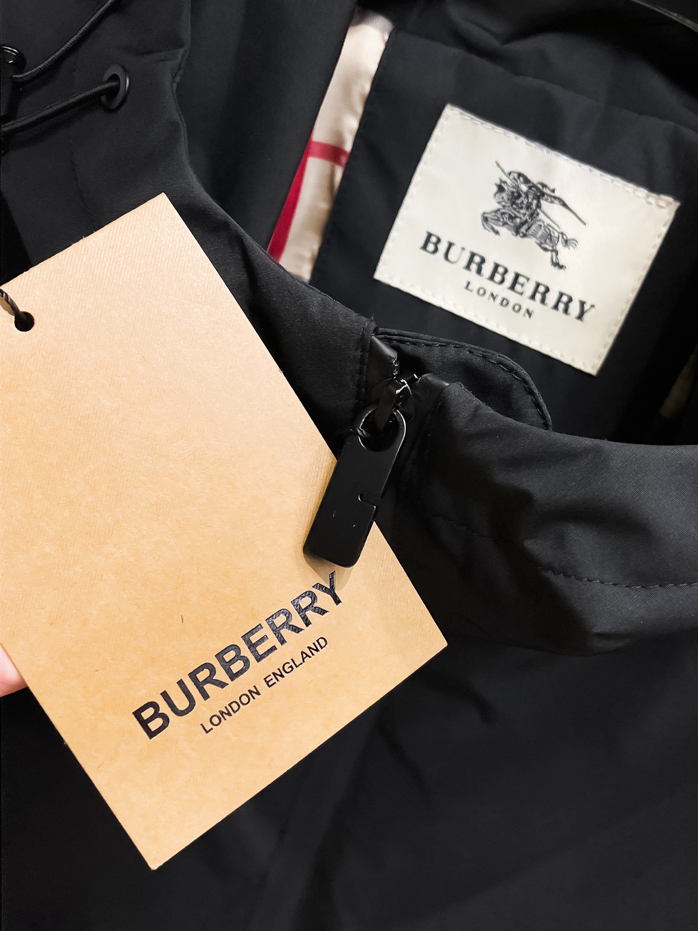 这款衣服是AAAAA 1:1 质量 (非常棒). 使用了和原版一模一样的材料. 商标部分也保持了和巴宝莉/Burberry一样. 图片拍摄是实物衣服拍摄, 您所收到的实物保证和我们图片一模一样.