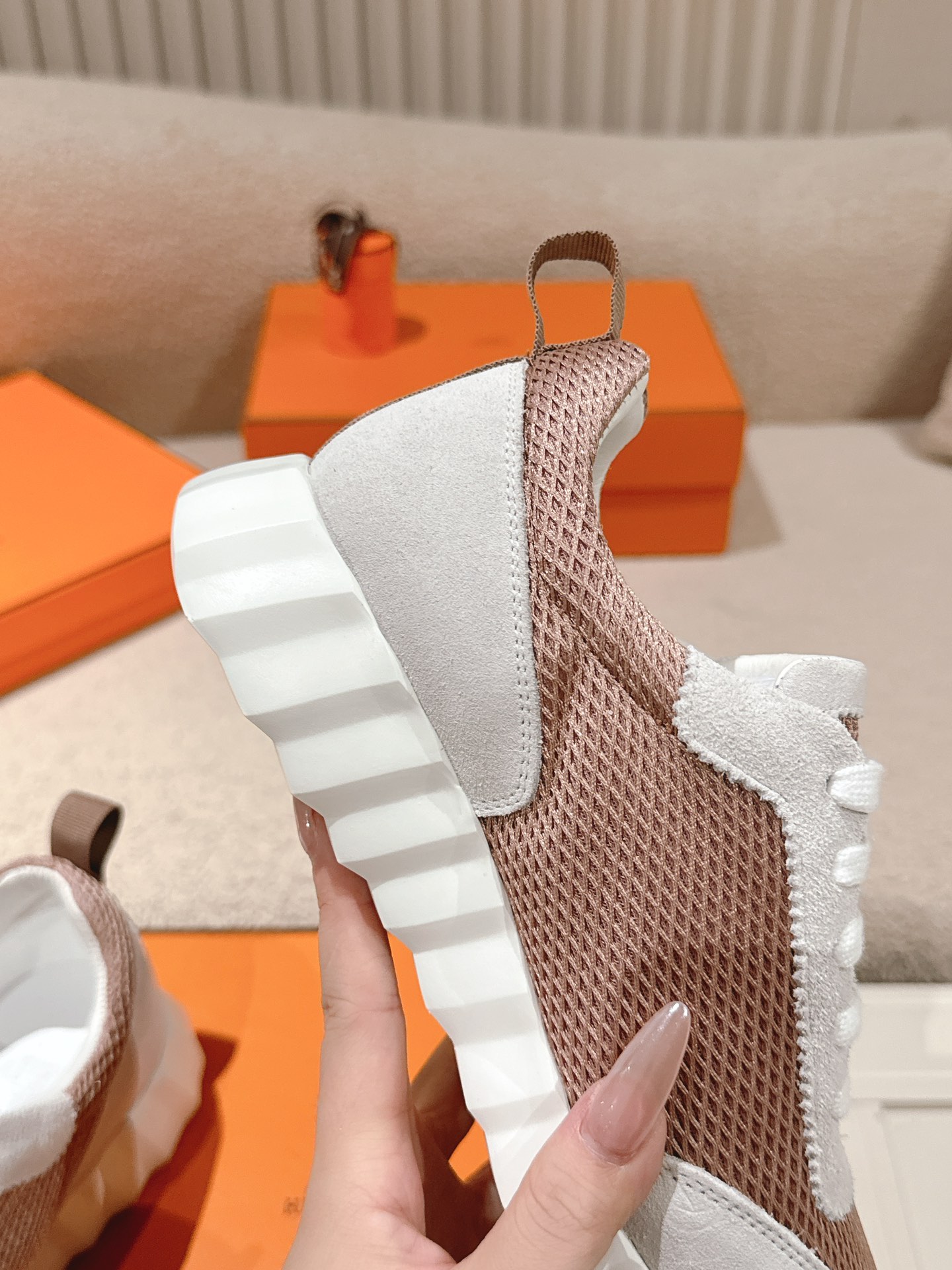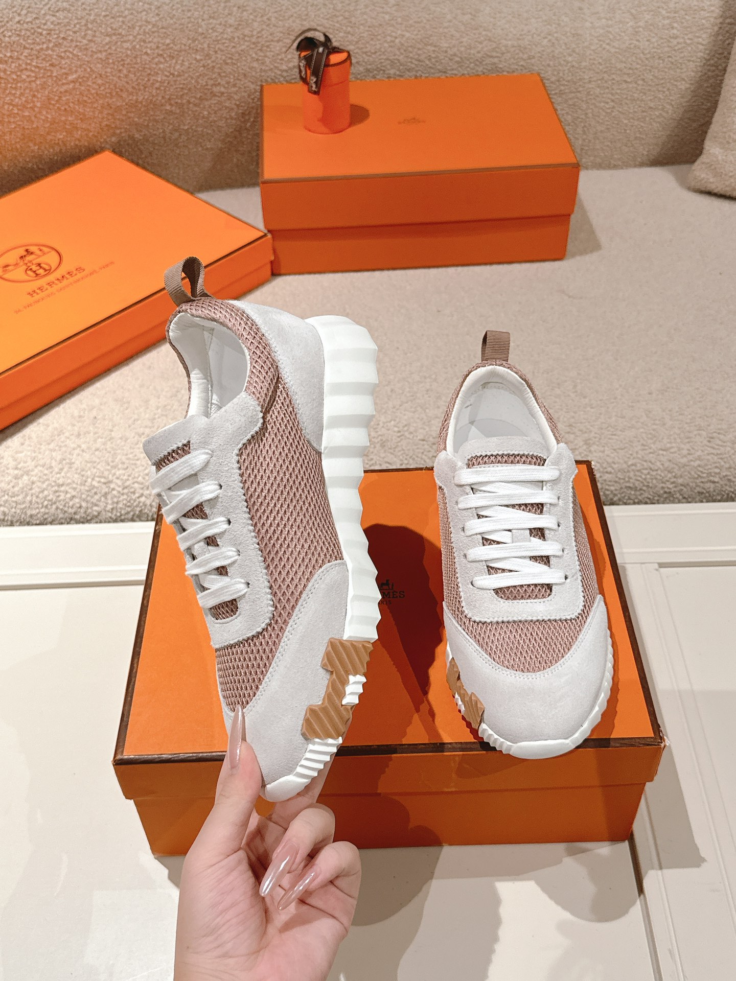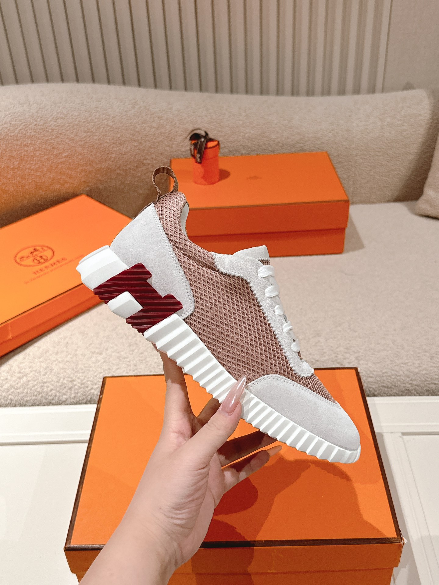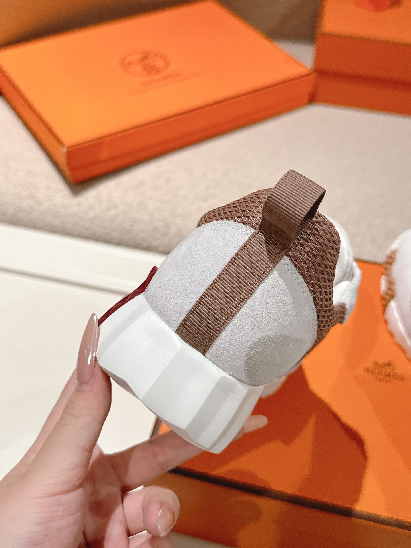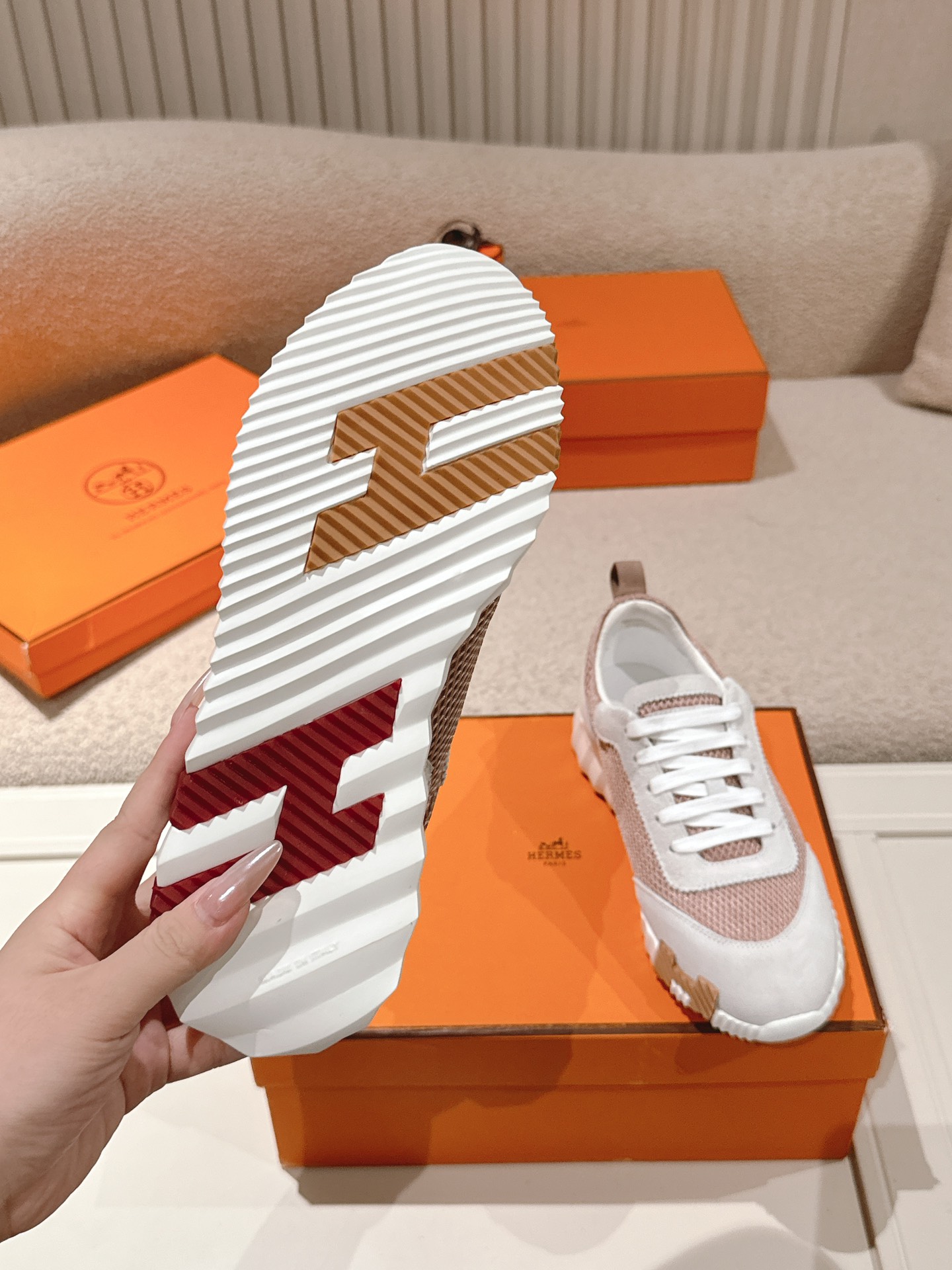 这款鞋子是AAAAA 1:1 质量 (非常棒). 使用了和原版一模一样的材料. 商标部分也保持了和爱马仕/Hermes一样. 图片拍摄是实物鞋子拍摄, 您所收到的实物保证和我们图片一模一样.
