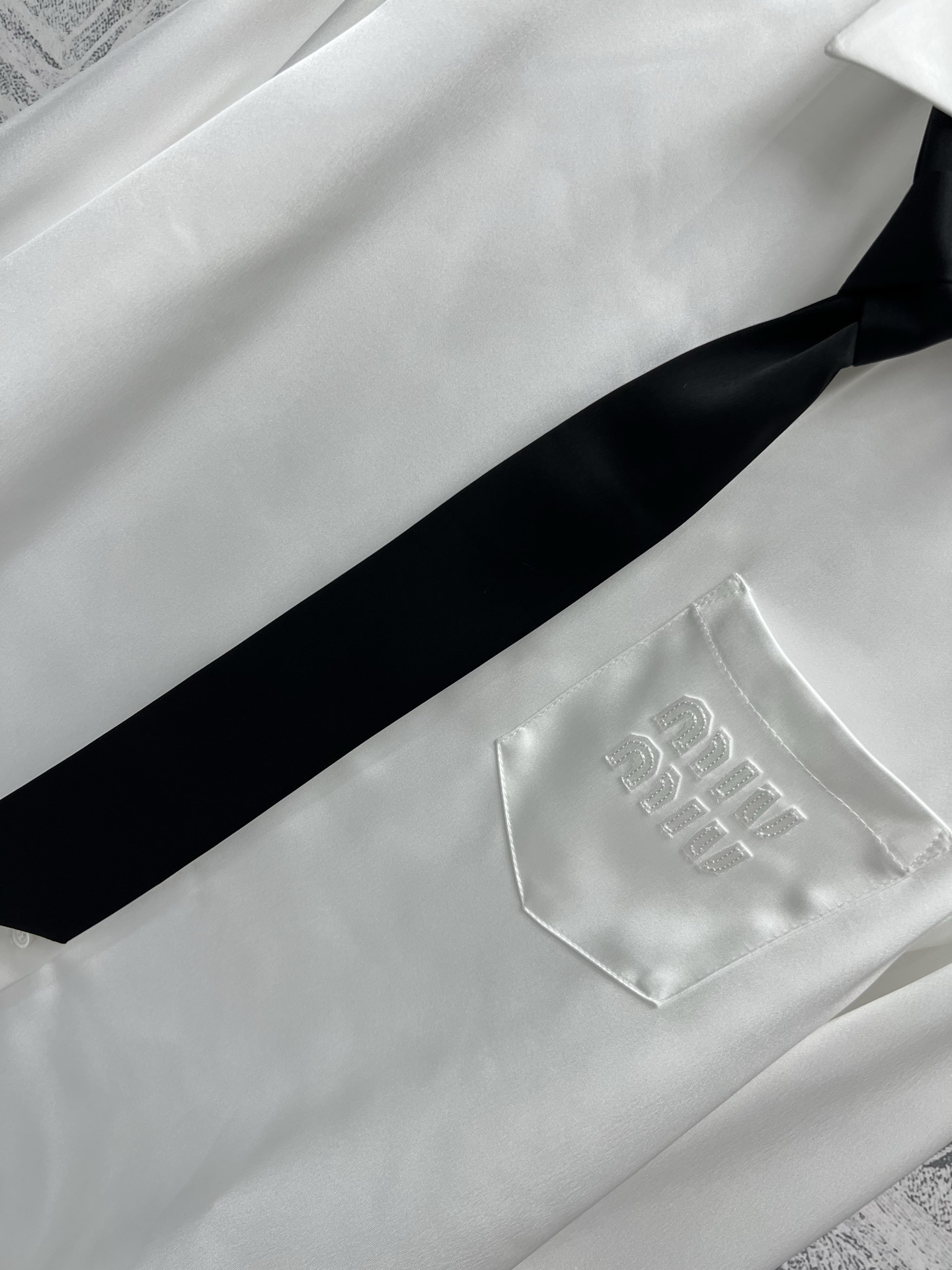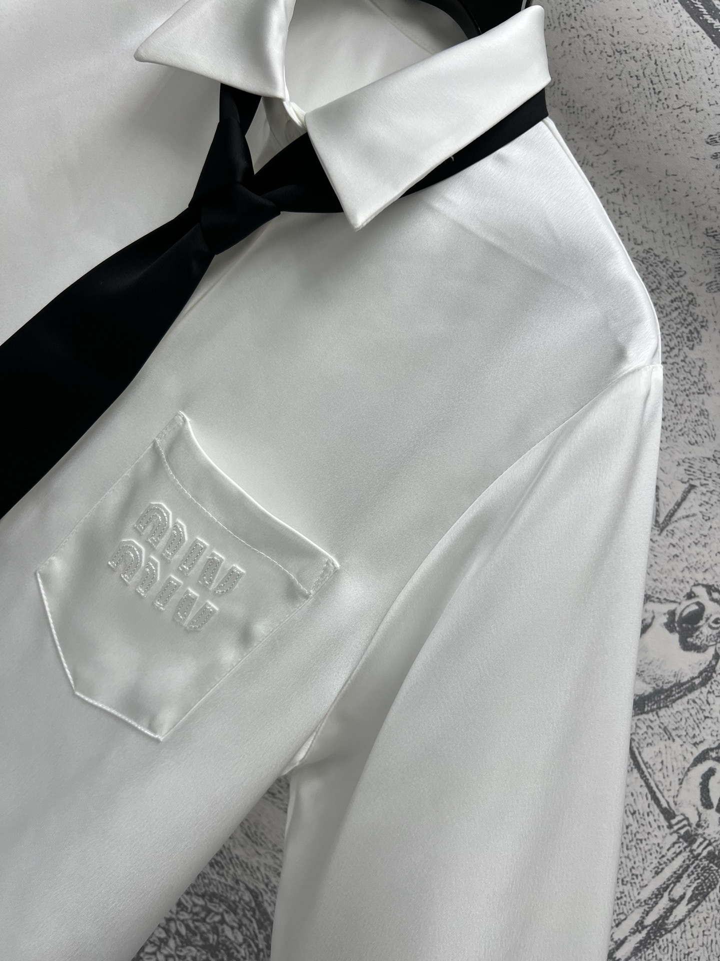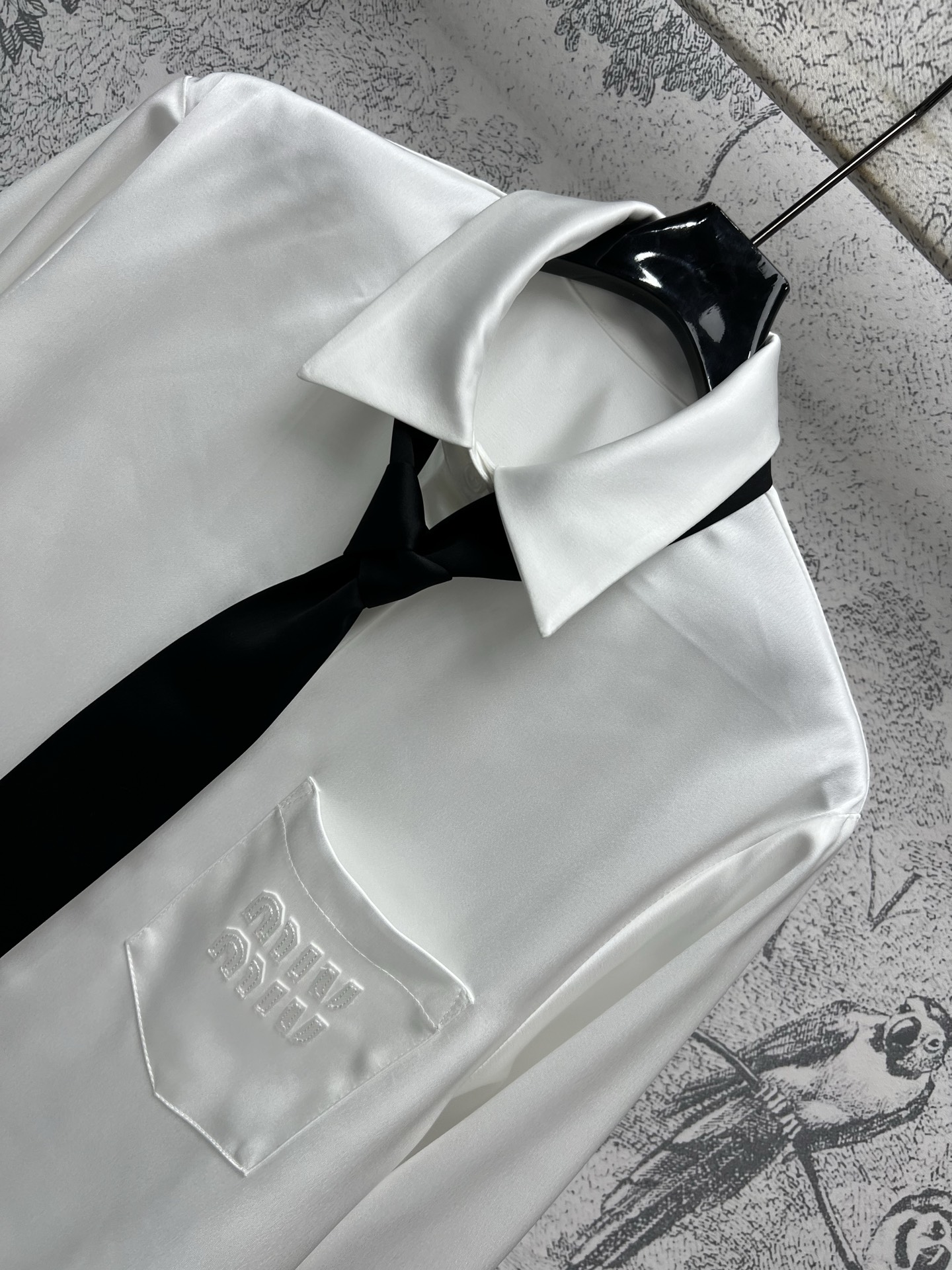 这款衣服是AAAAA 1:1 质量 (非常棒). 使用了和原版一模一样的材料. 商标部分也保持了和缪缪/Miu Miu一样. 图片拍摄是实物衣服拍摄, 您所收到的实物保证和我们图片一模一样.