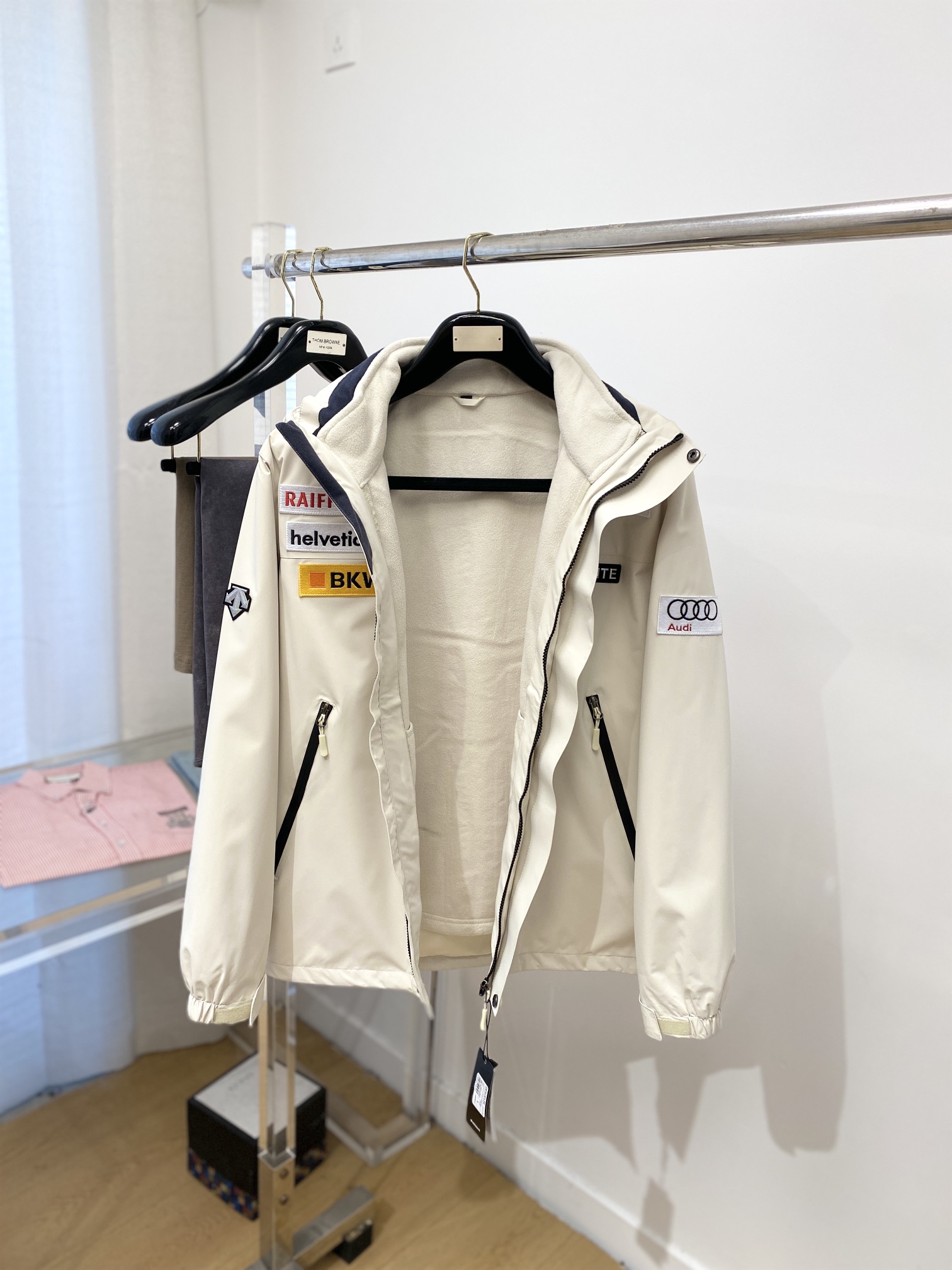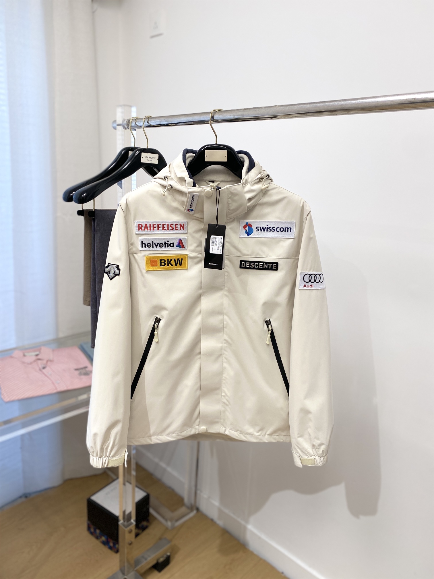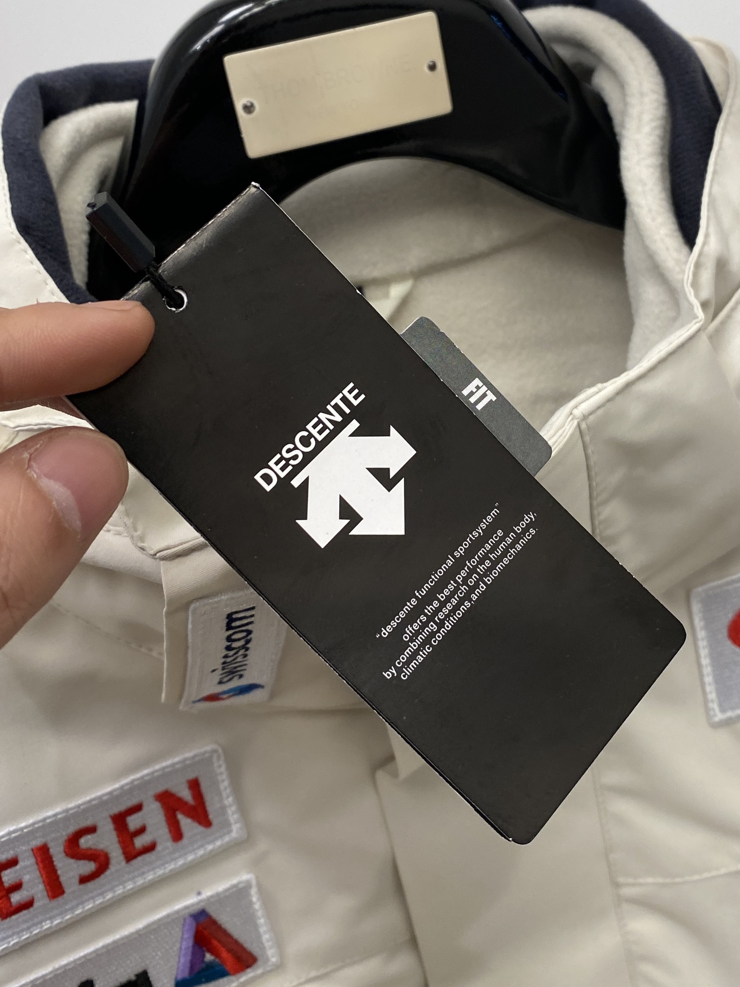 这款衣服是AAAAA 1:1 质量 (非常棒). 使用了和原版一模一样的材料. 商标部分也保持了和Descente一样. 图片拍摄是实物衣服拍摄, 您所收到的实物保证和我们图片一模一样.