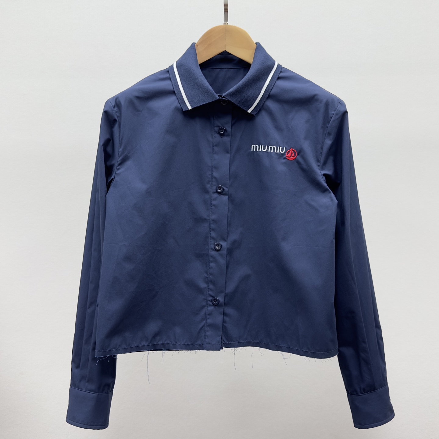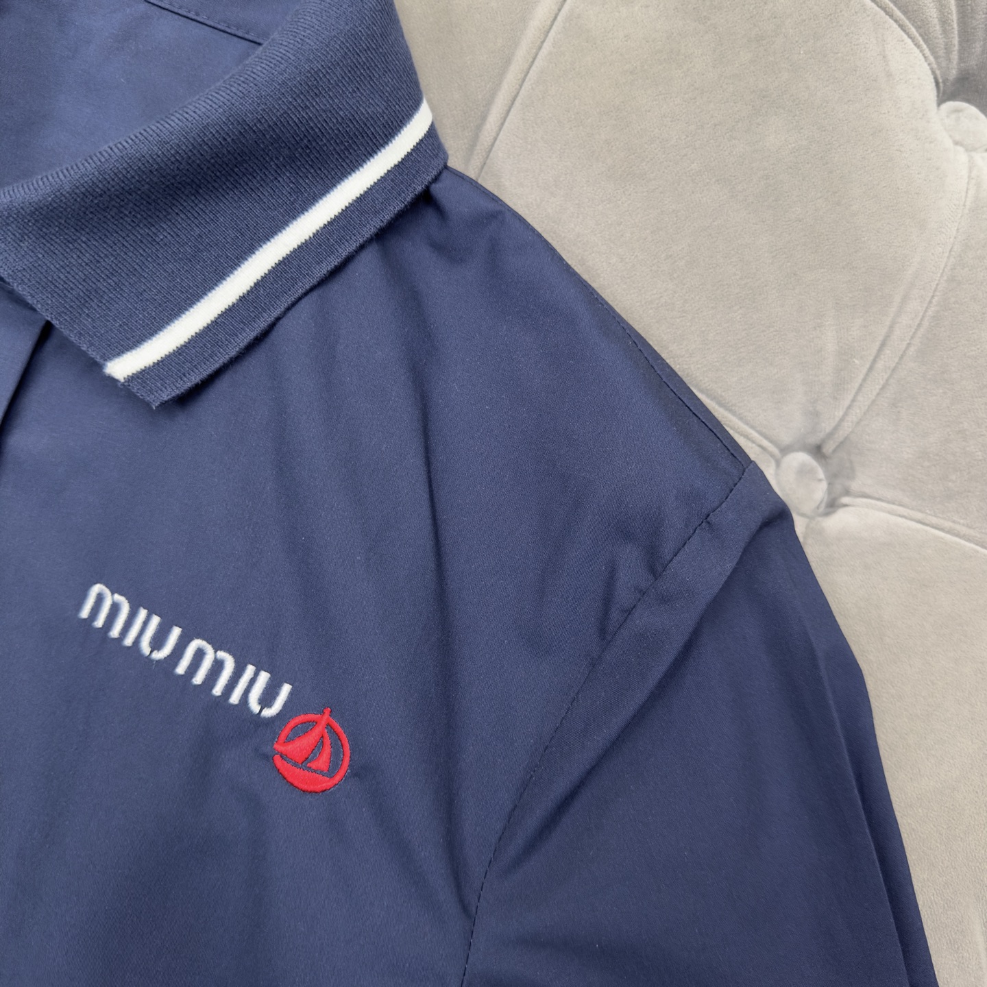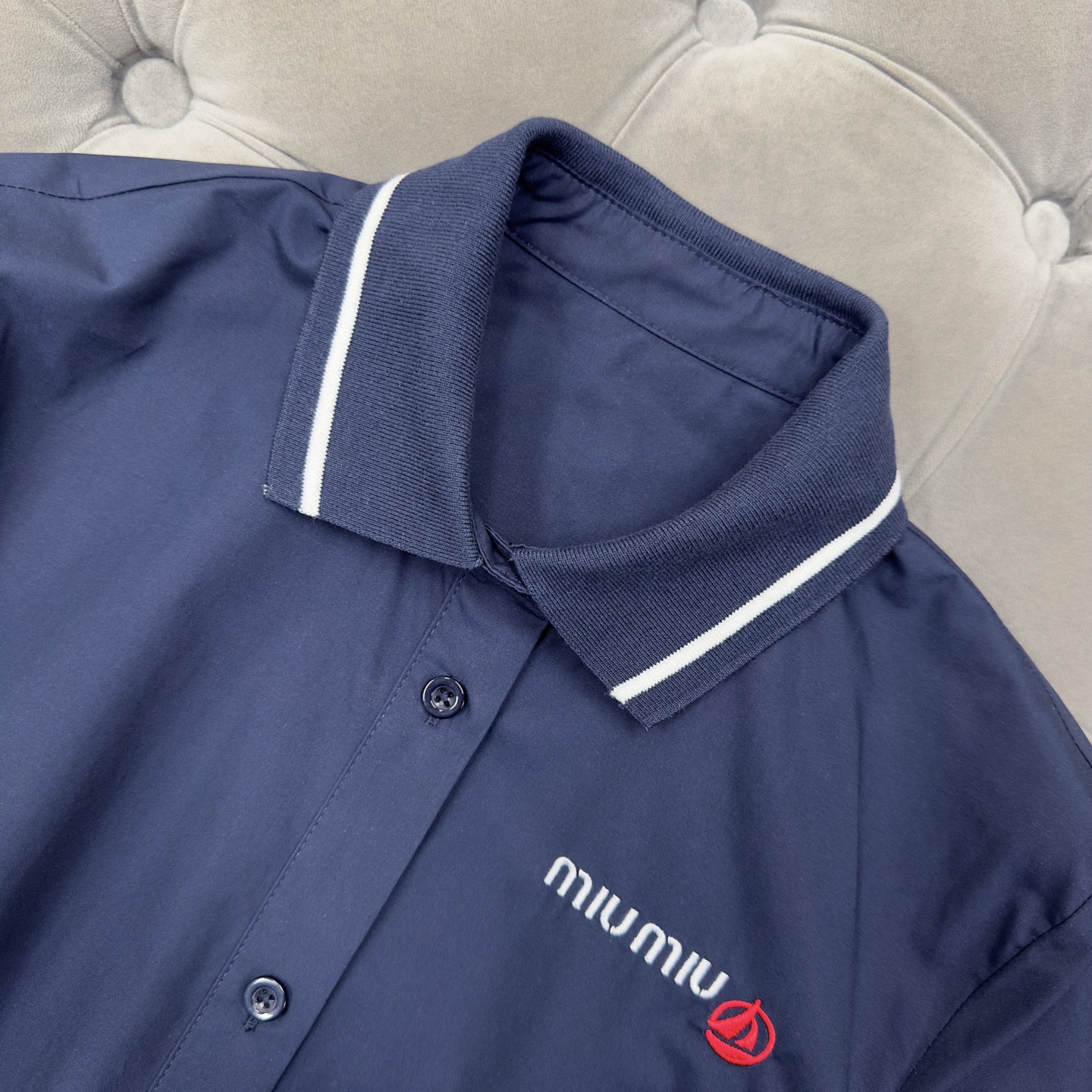 这款衣服是AAAAA 1:1 质量 (非常棒). 使用了和原版一模一样的材料. 商标部分也保持了和缪缪/Miu Miu一样. 图片拍摄是实物衣服拍摄, 您所收到的实物保证和我们图片一模一样.