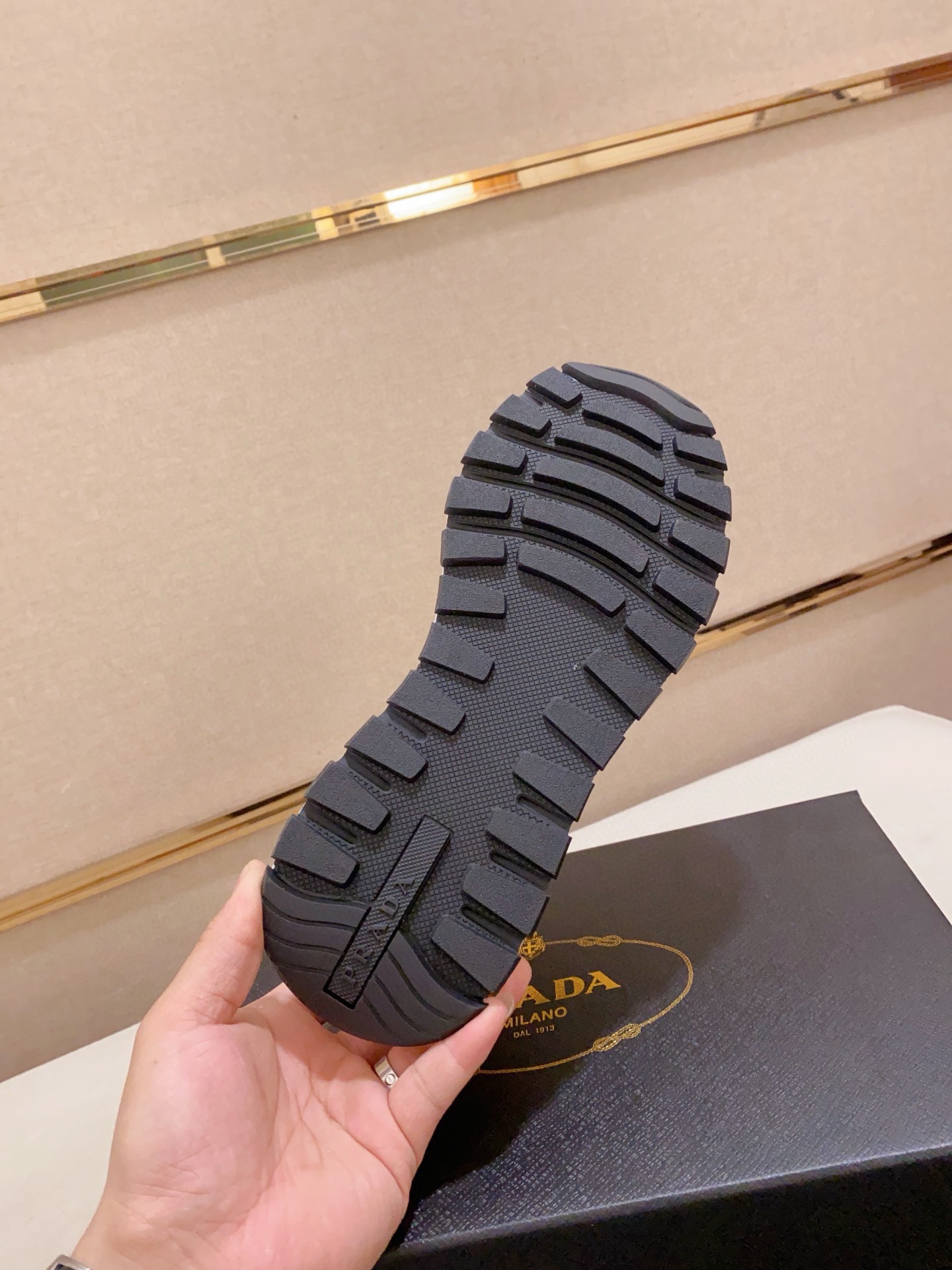 这款鞋子是AAAAA 1:1 质量 (非常棒). 使用了和原版一模一样的材料. 商标部分也保持了和普拉达/Prada一样. 图片拍摄是实物鞋子拍摄, 您所收到的实物保证和我们图片一模一样.