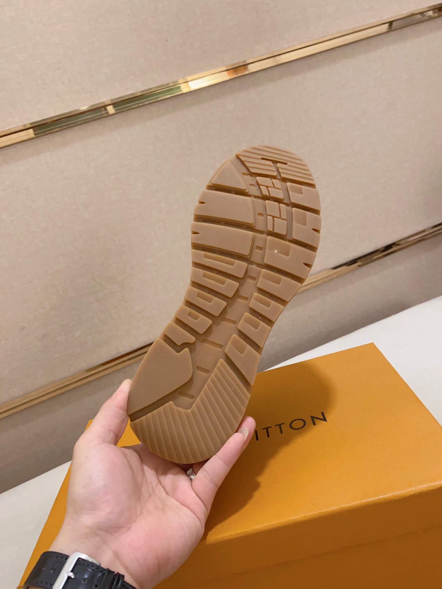 这款鞋子是AAAAA 1:1 质量 (非常棒). 使用了和原版一模一样的材料. 商标部分也保持了和路易威登/Louis Vuitton一样. 图片拍摄是实物鞋子拍摄, 您所收到的实物保证和我们图片一模一样.