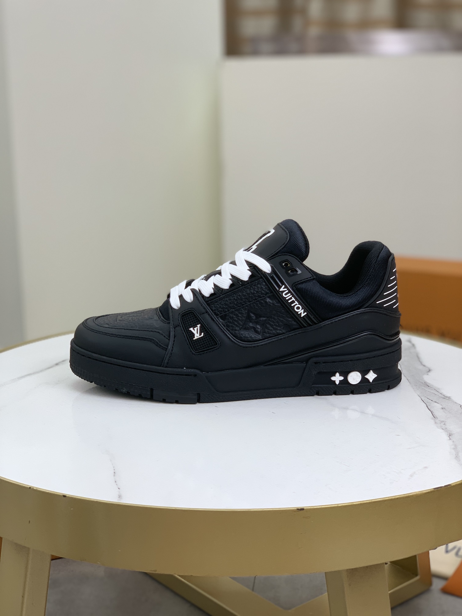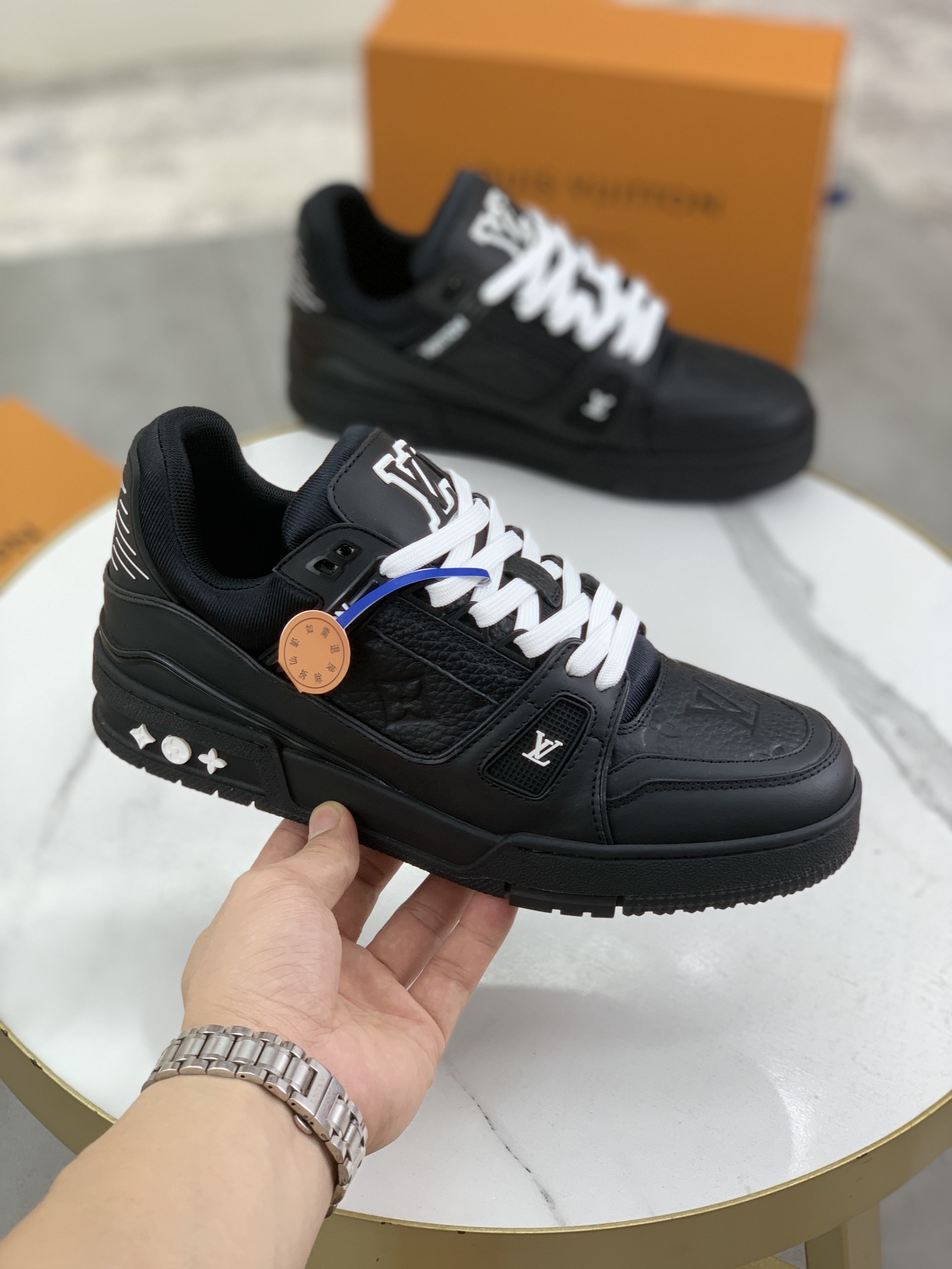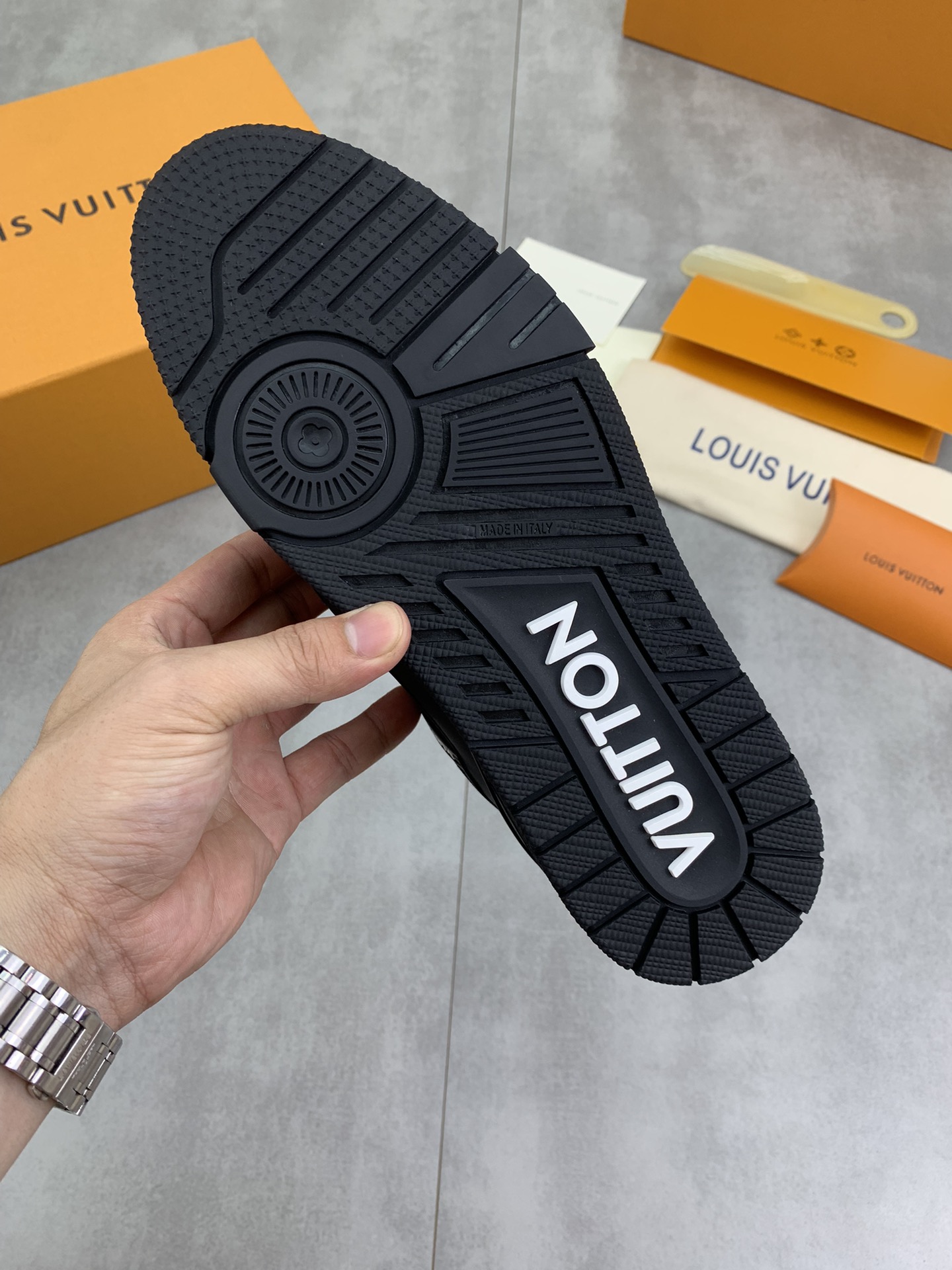 这款鞋子是AAAAA 1:1 质量 (非常棒). 使用了和原版一模一样的材料. 商标部分也保持了和路易威登/Louis Vuitton一样. 图片拍摄是实物鞋子拍摄, 您所收到的实物保证和我们图片一模一样.
