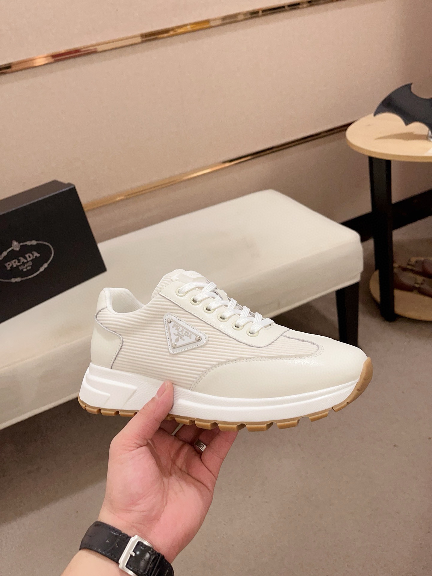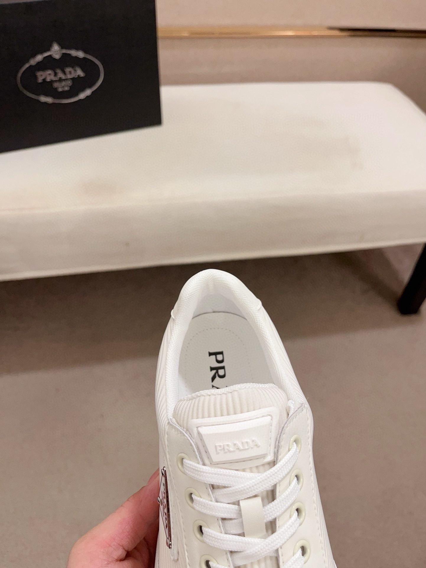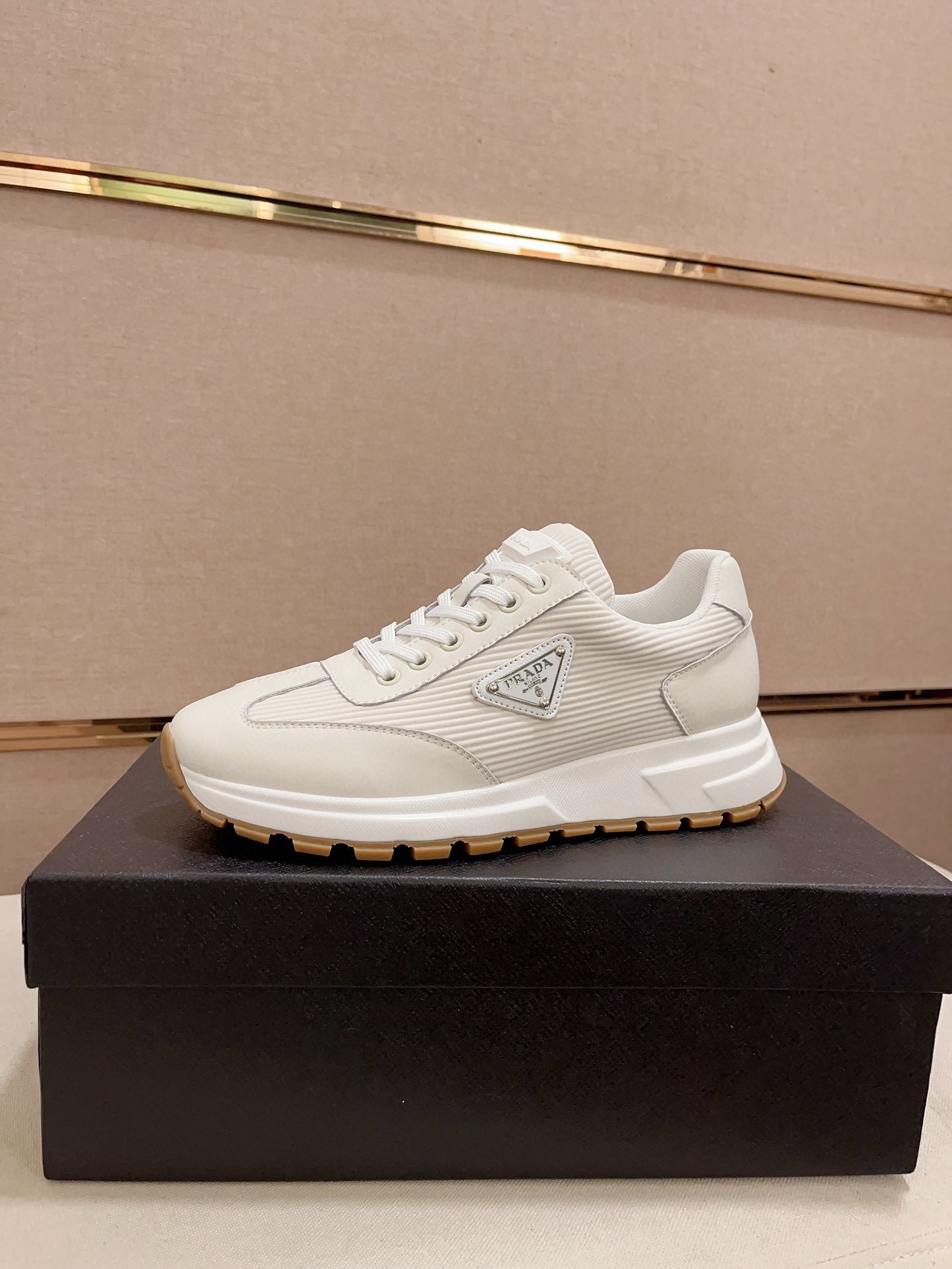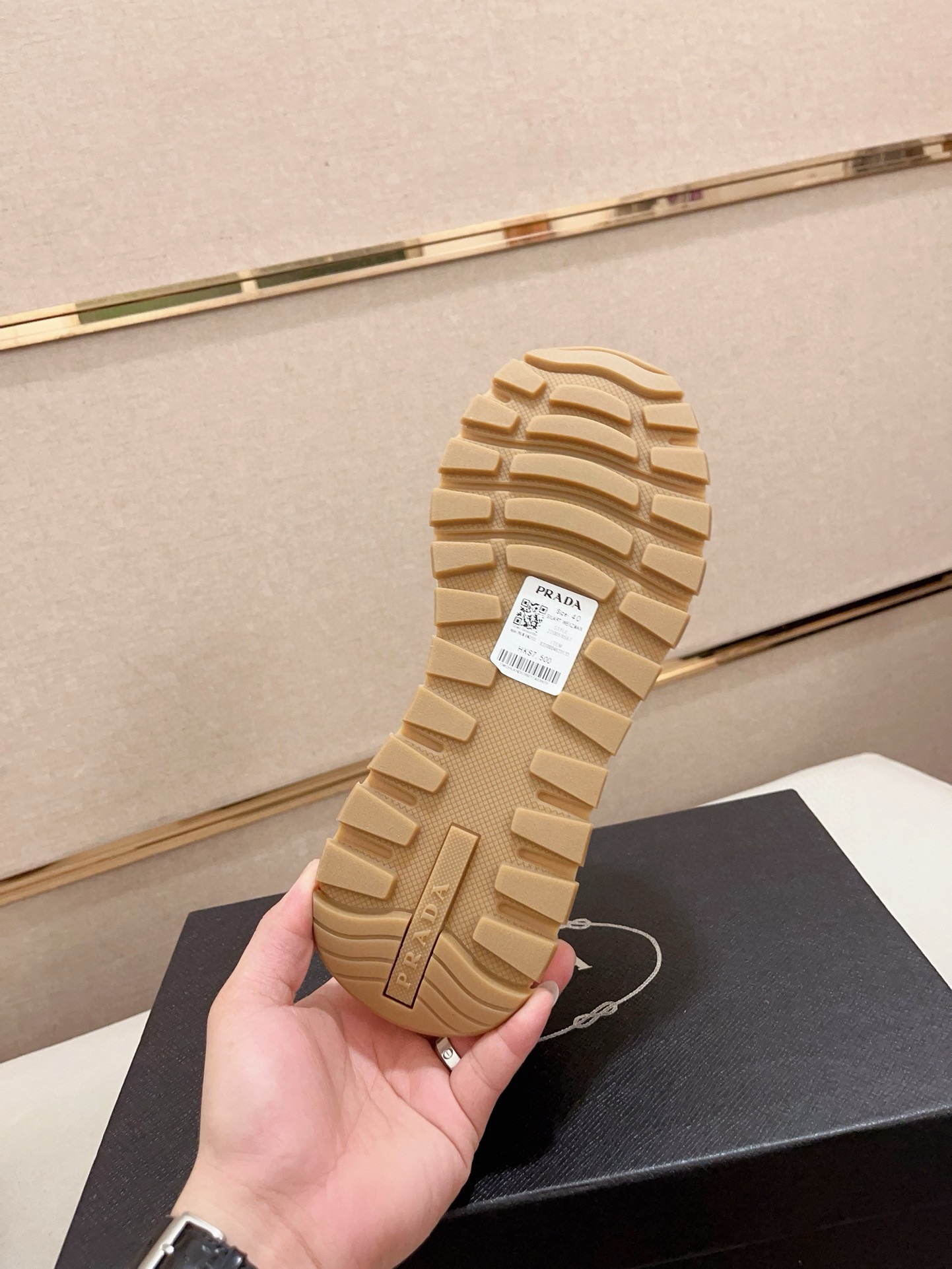 这款鞋子是AAAAA 1:1 质量 (非常棒). 使用了和原版一模一样的材料. 商标部分也保持了和普拉达/Prada一样. 图片拍摄是实物鞋子拍摄, 您所收到的实物保证和我们图片一模一样.