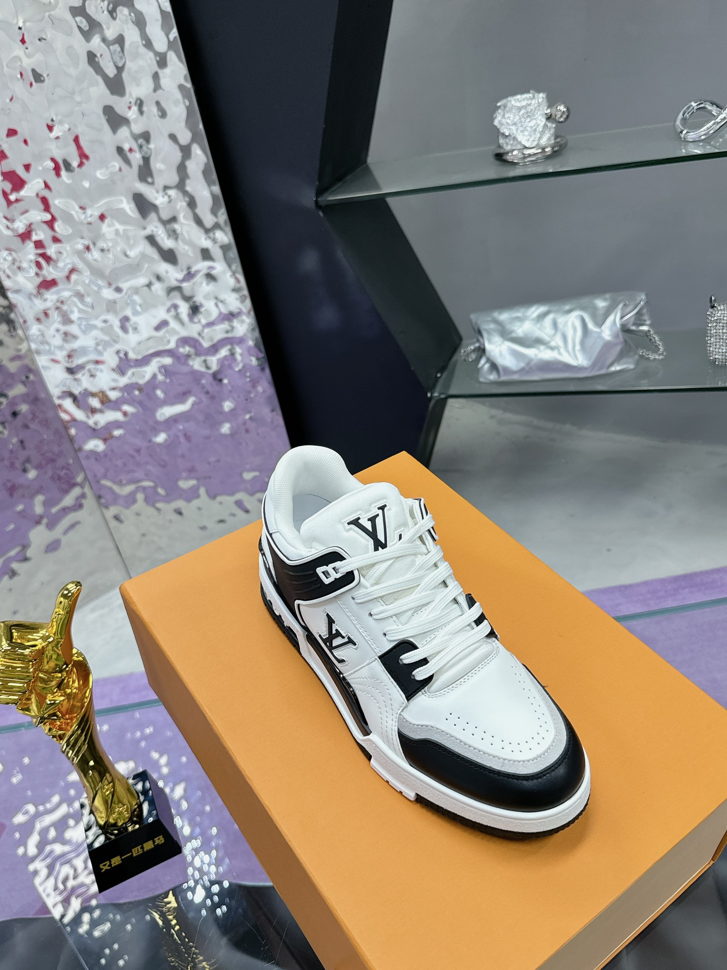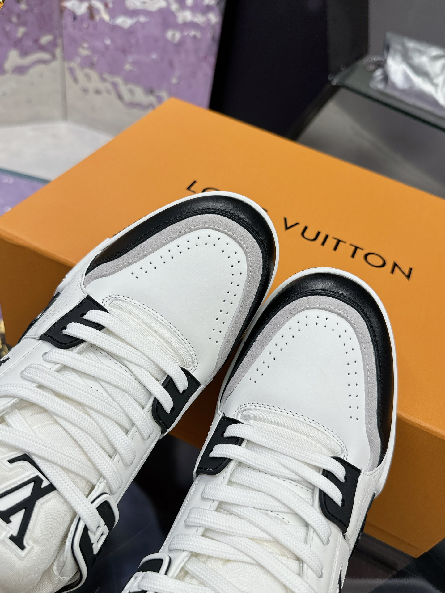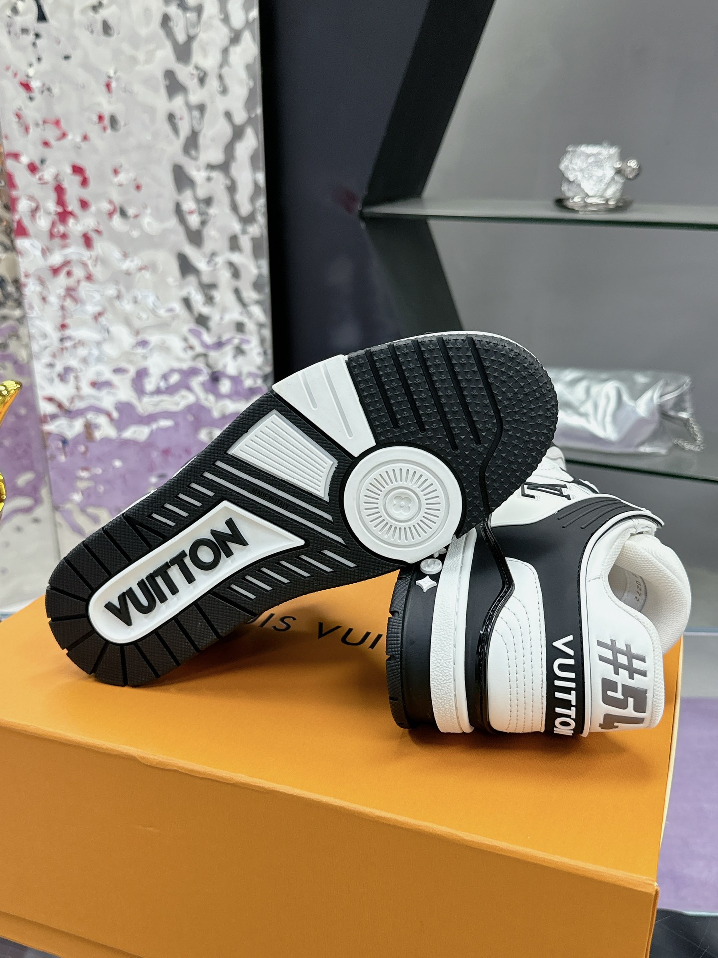 这款鞋子是AAAAA 1:1 质量 (非常棒). 使用了和原版一模一样的材料. 商标部分也保持了和路易威登/Louis Vuitton一样. 图片拍摄是实物鞋子拍摄, 您所收到的实物保证和我们图片一模一样.