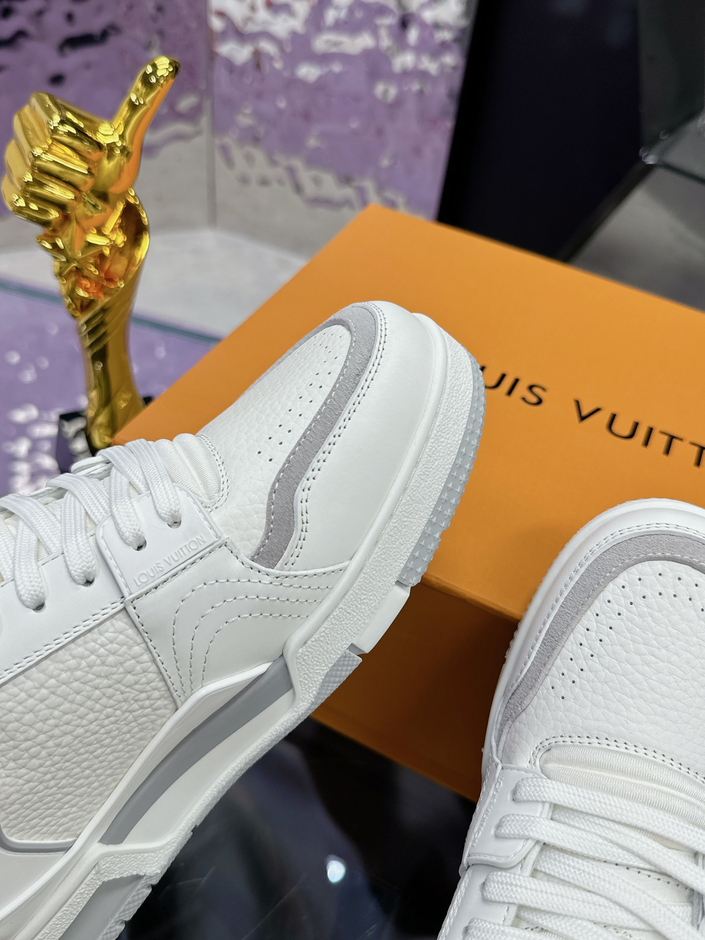 这款鞋子是AAAAA 1:1 质量 (非常棒). 使用了和原版一模一样的材料. 商标部分也保持了和路易威登/Louis Vuitton一样. 图片拍摄是实物鞋子拍摄, 您所收到的实物保证和我们图片一模一样.