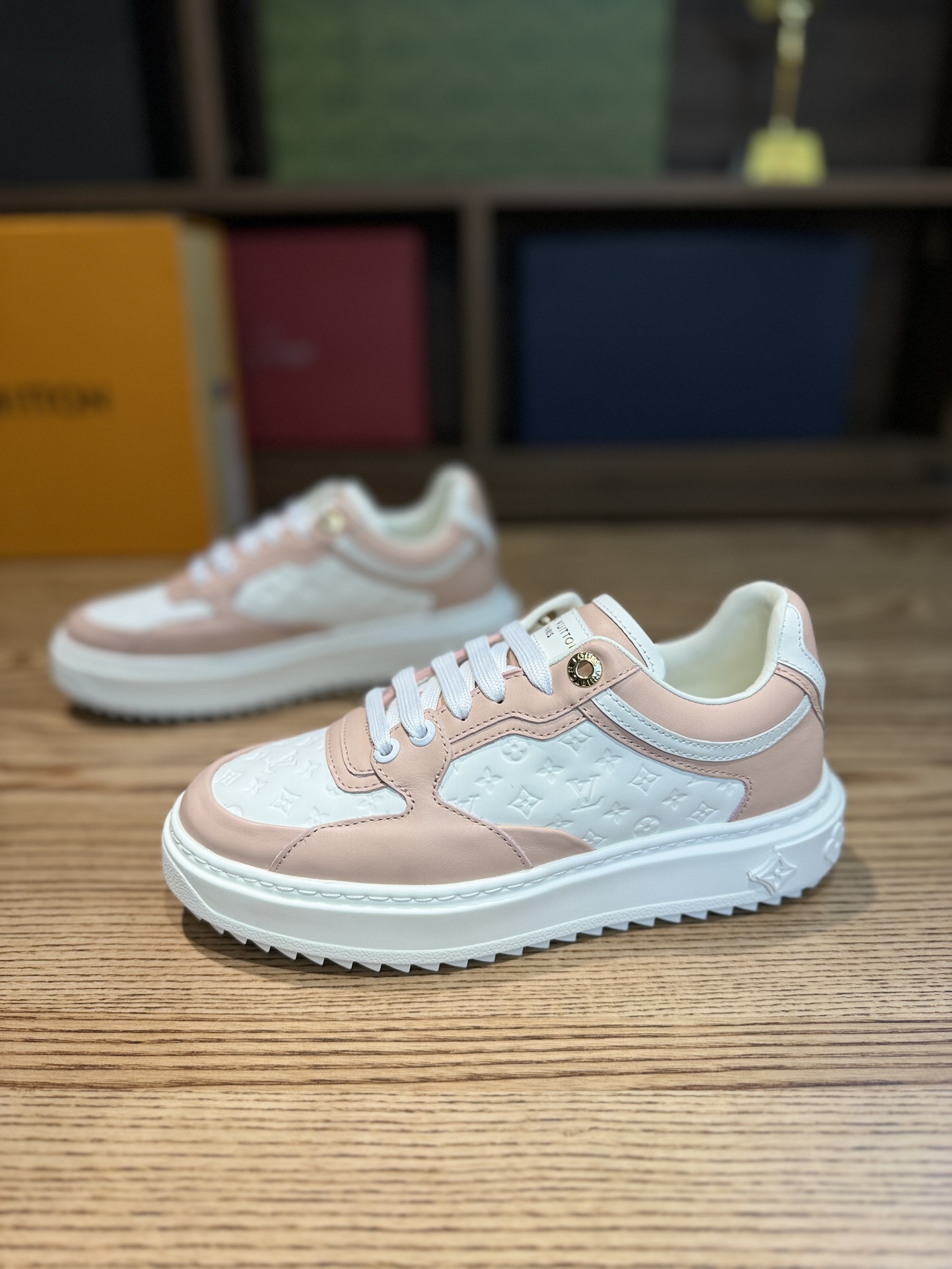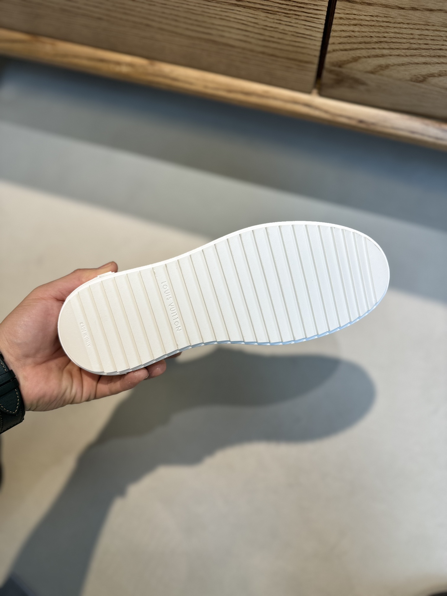 这款鞋子是AAAAA 1:1 质量 (非常棒). 使用了和原版一模一样的材料. 商标部分也保持了和路易威登/Louis Vuitton一样. 图片拍摄是实物鞋子拍摄, 您所收到的实物保证和我们图片一模一样.