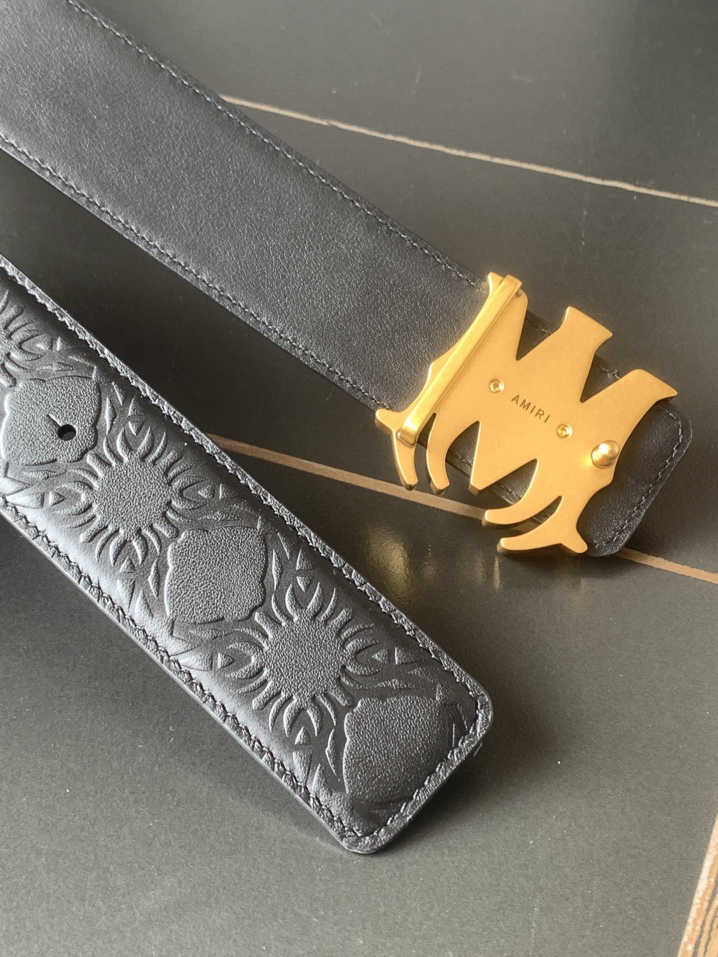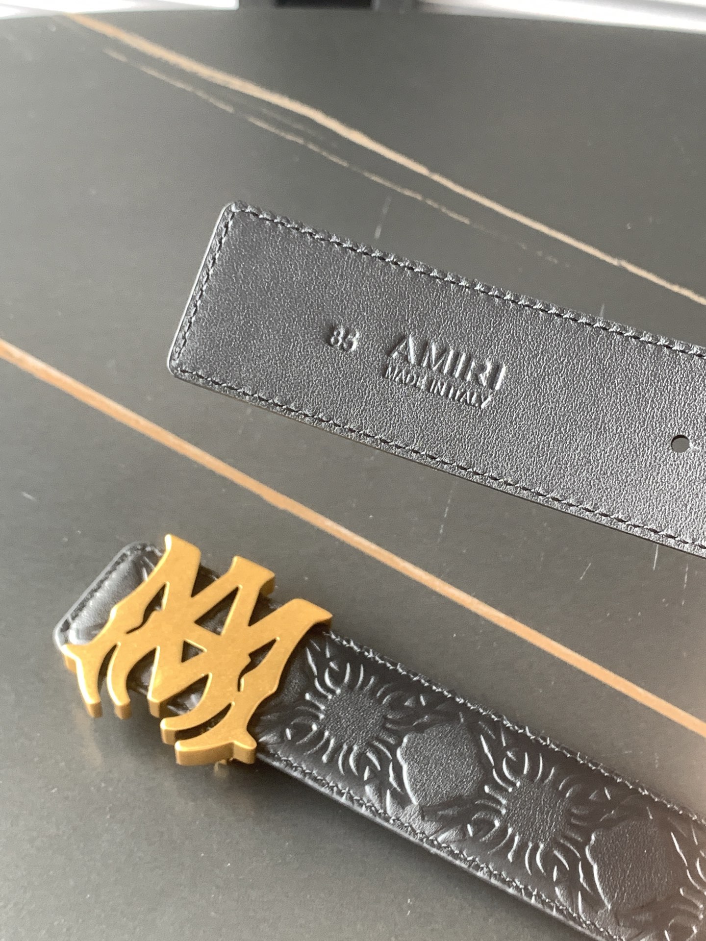 这款皮带是AAAAA 1:1 质量 (非常棒). 使用了和原版一模一样的材料. 商标部分也保持了和AMIRI一样. 图片拍摄是实物皮带拍摄, 您所收到的实物保证和我们图片一模一样.