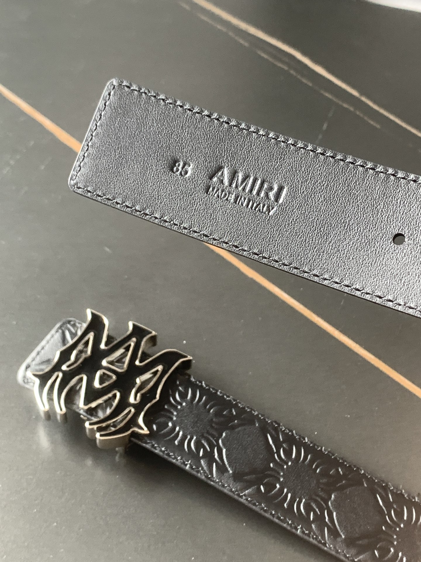 这款皮带是AAAAA 1:1 质量 (非常棒). 使用了和原版一模一样的材料. 商标部分也保持了和AMIRI一样. 图片拍摄是实物皮带拍摄, 您所收到的实物保证和我们图片一模一样.