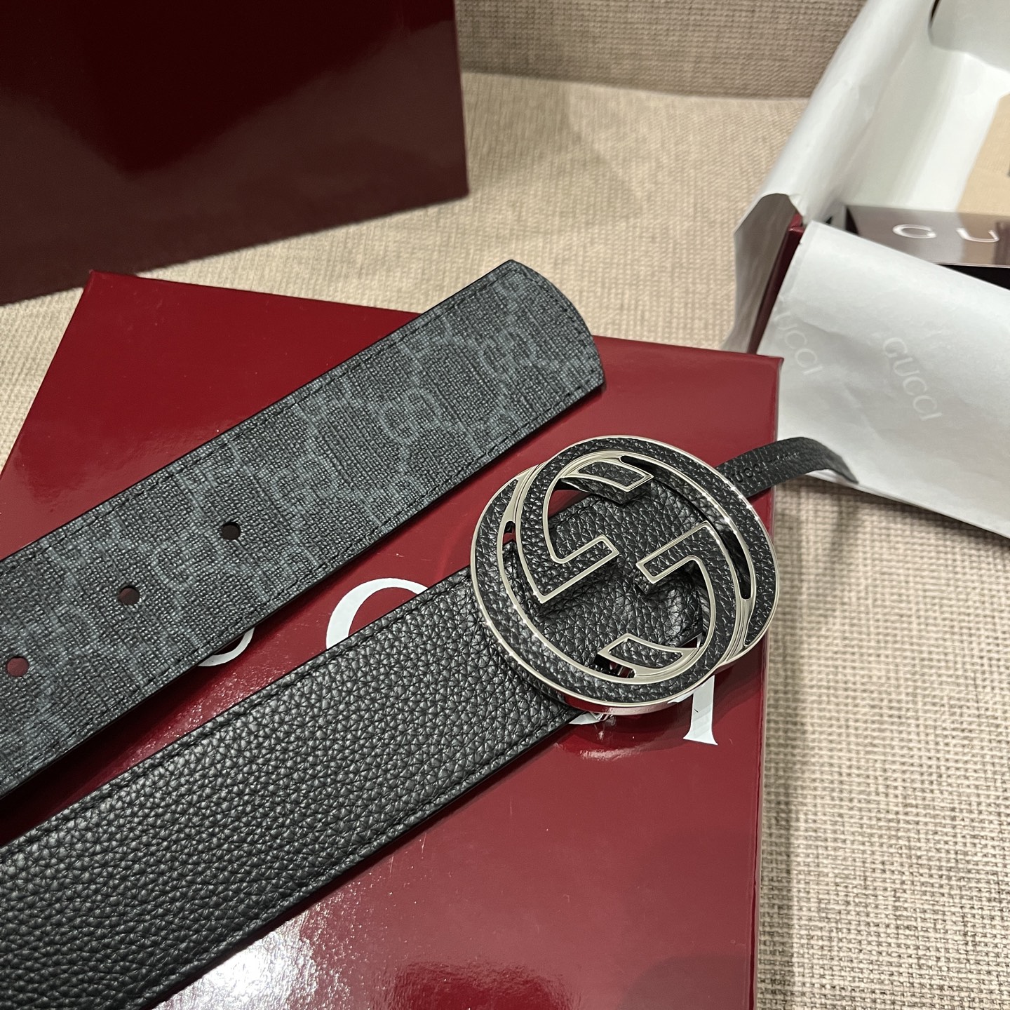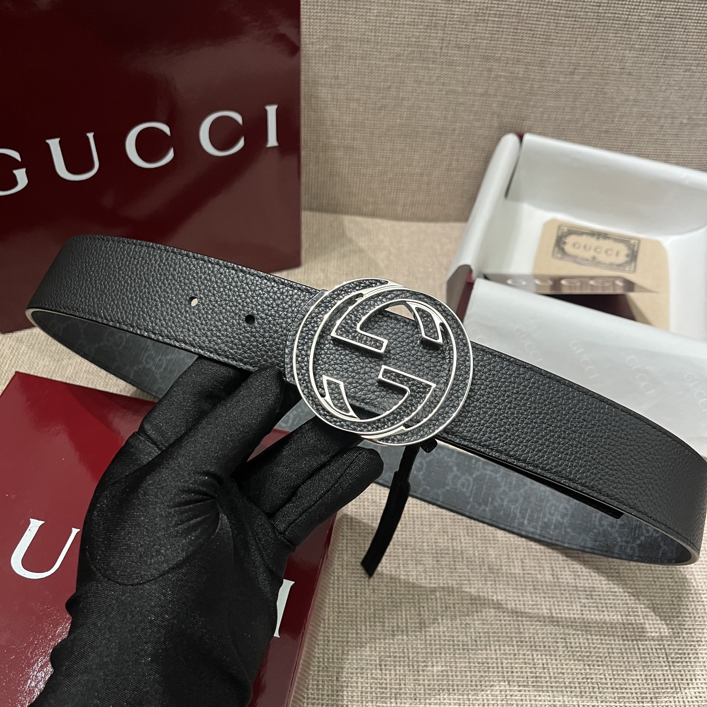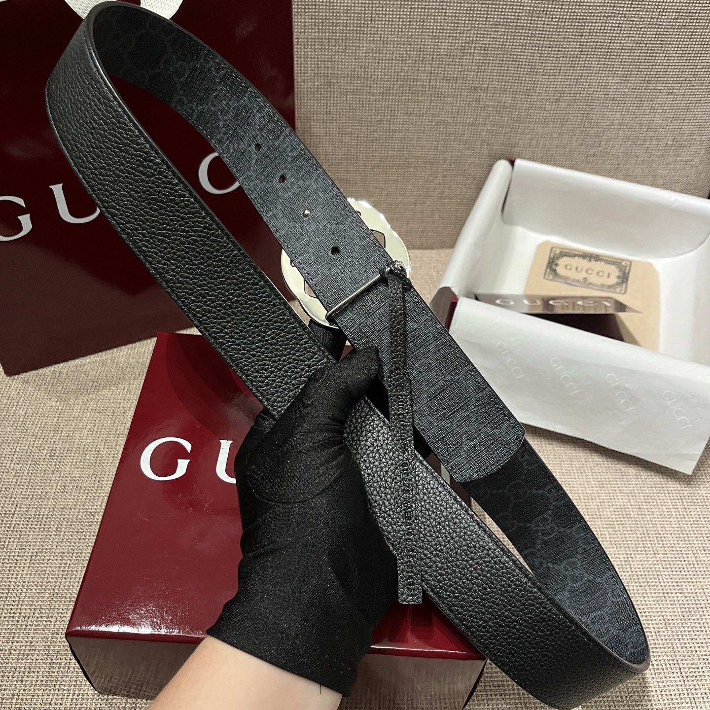 这款皮带是AAAAA 1:1 质量 (非常棒). 使用了和原版一模一样的材料. 商标部分也保持了和古奇/Gucci一样. 图片拍摄是实物皮带拍摄, 您所收到的实物保证和我们图片一模一样.