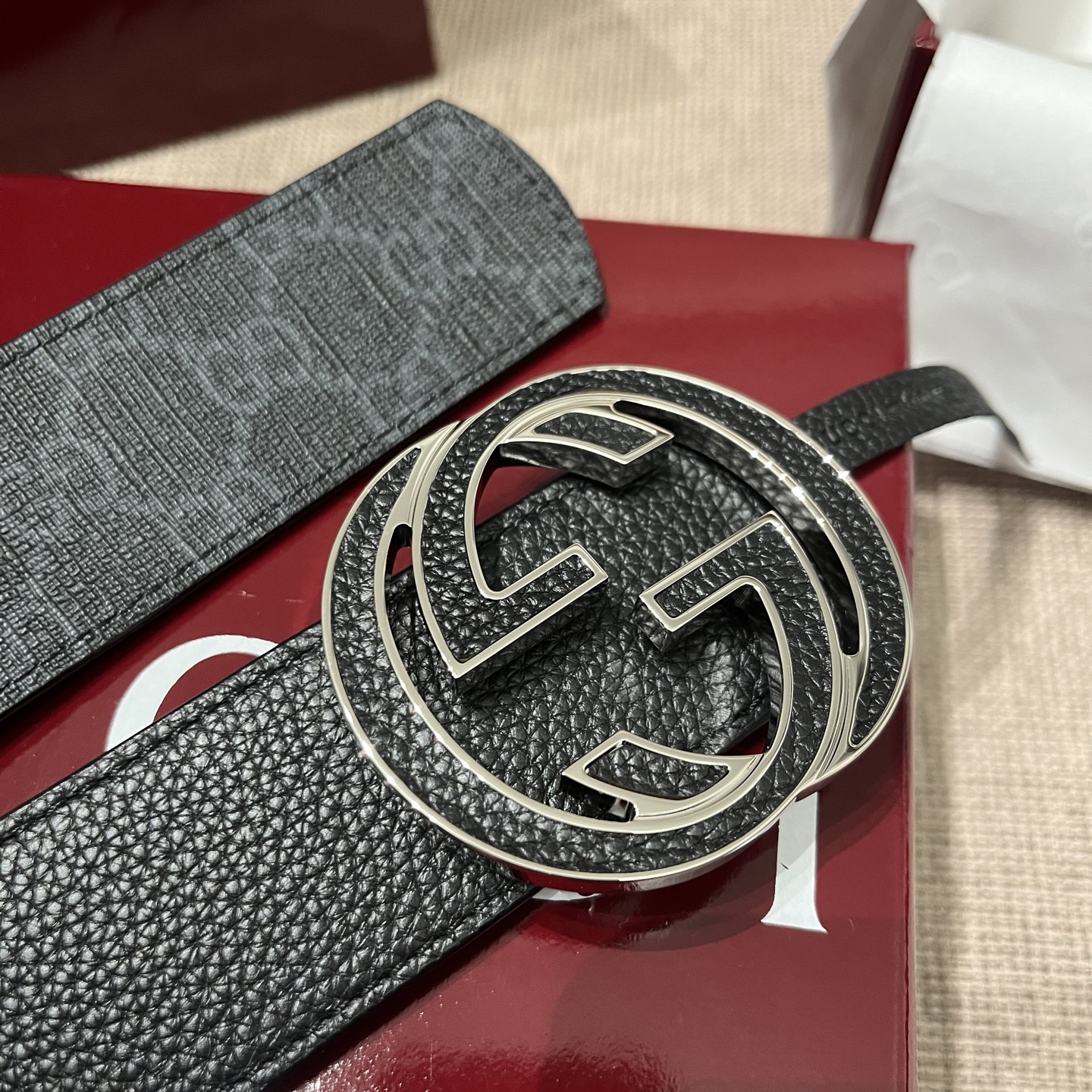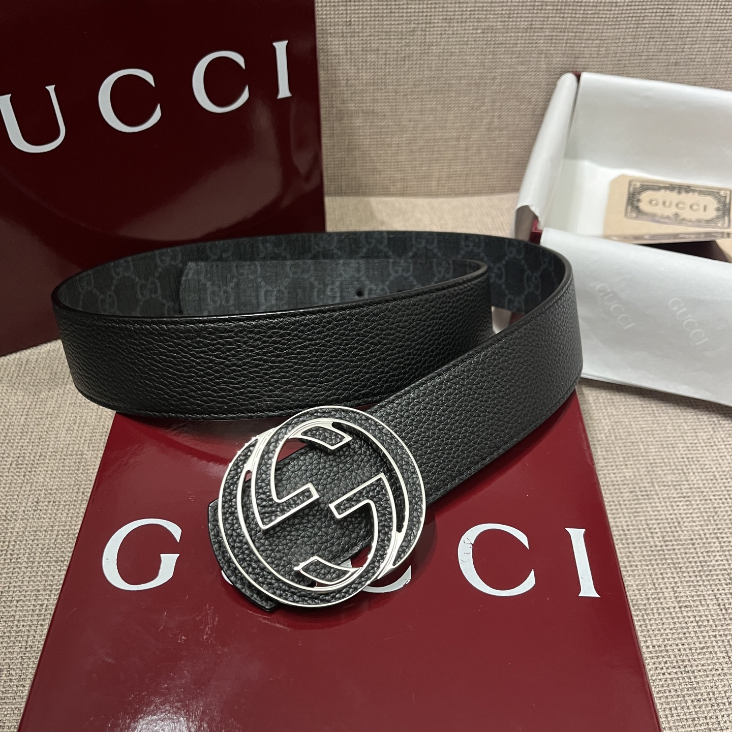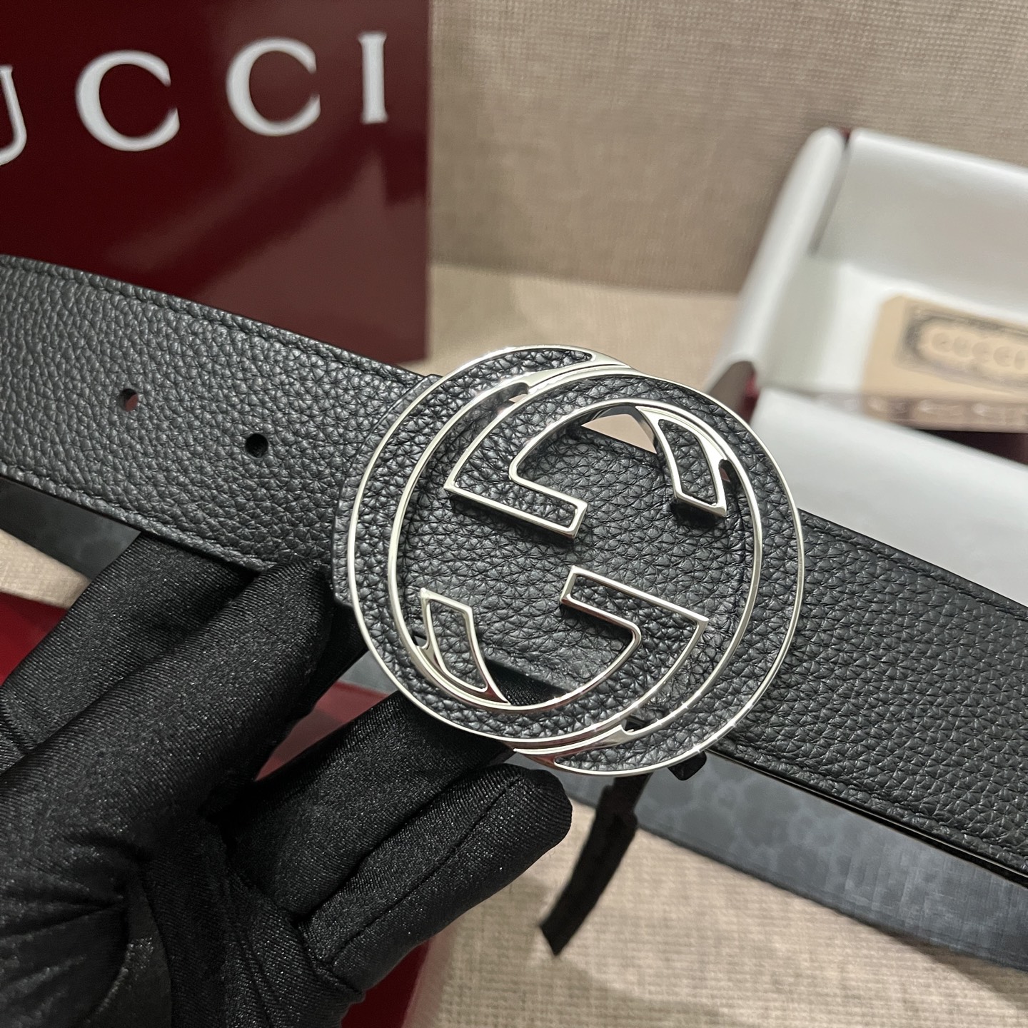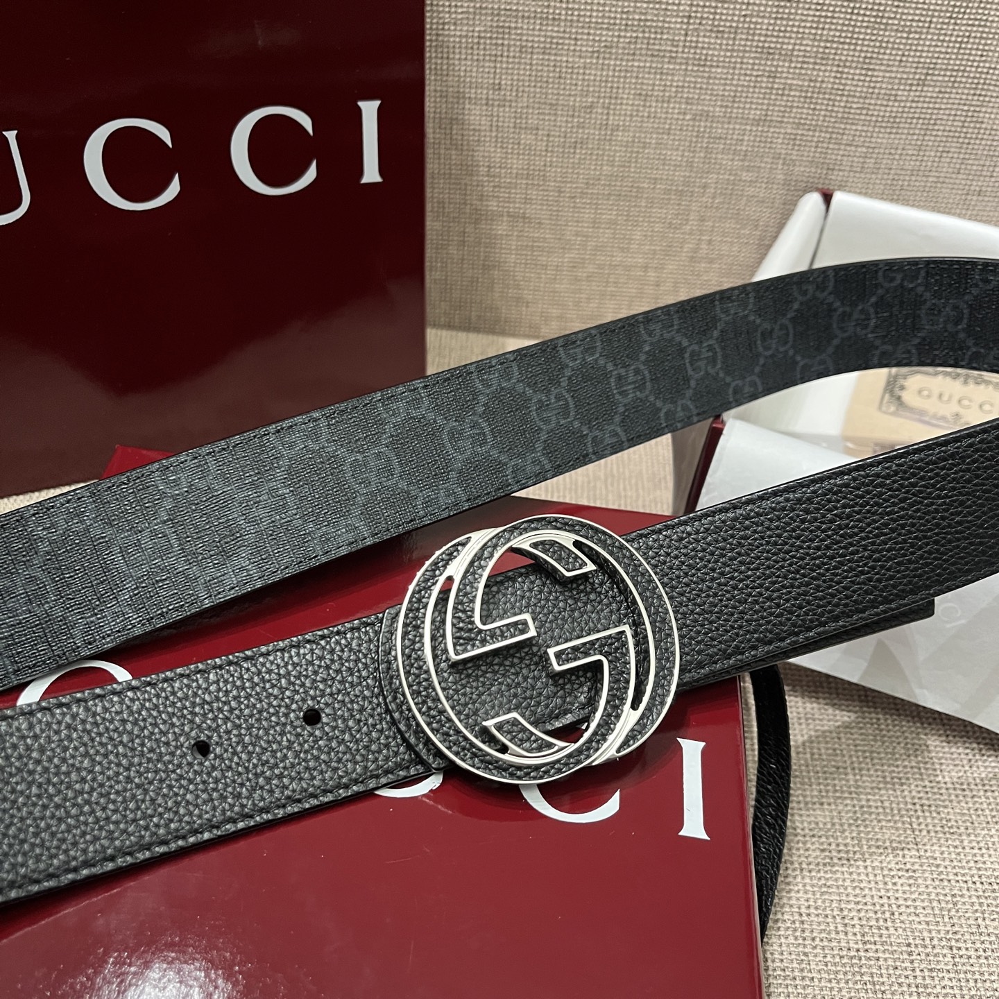 这款皮带是AAAAA 1:1 质量 (非常棒). 使用了和原版一模一样的材料. 商标部分也保持了和古奇/Gucci一样. 图片拍摄是实物皮带拍摄, 您所收到的实物保证和我们图片一模一样.